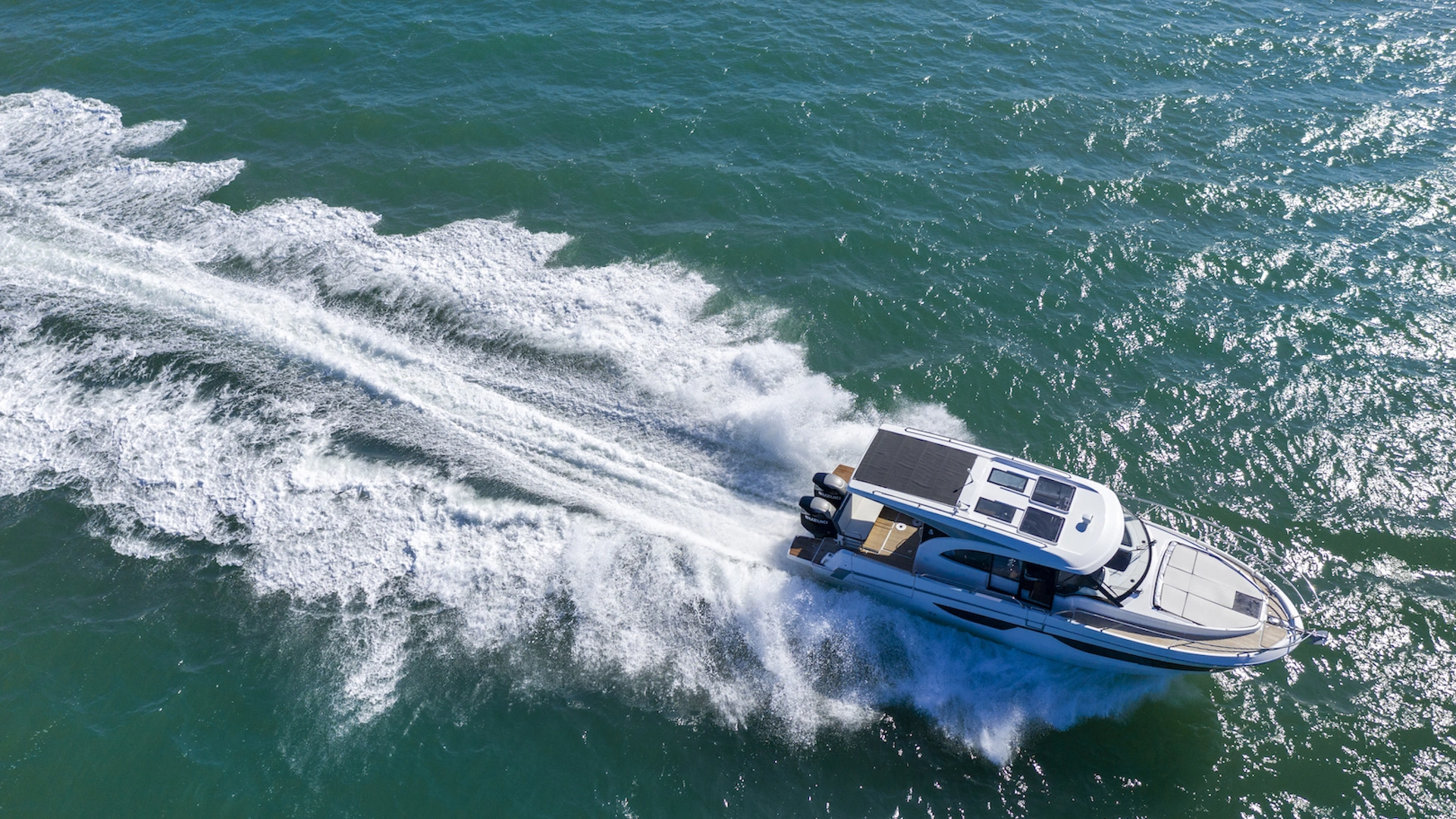 Safe, ideal for cruising, and seaworthy, the contemporary design of this powerboat focuses on comfort and space, as well as safety and innovation.