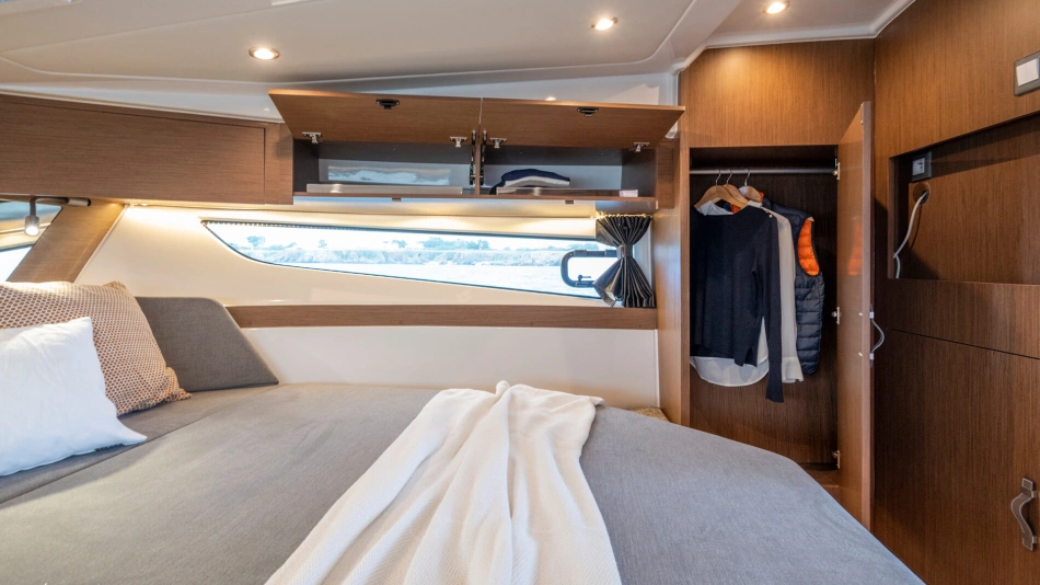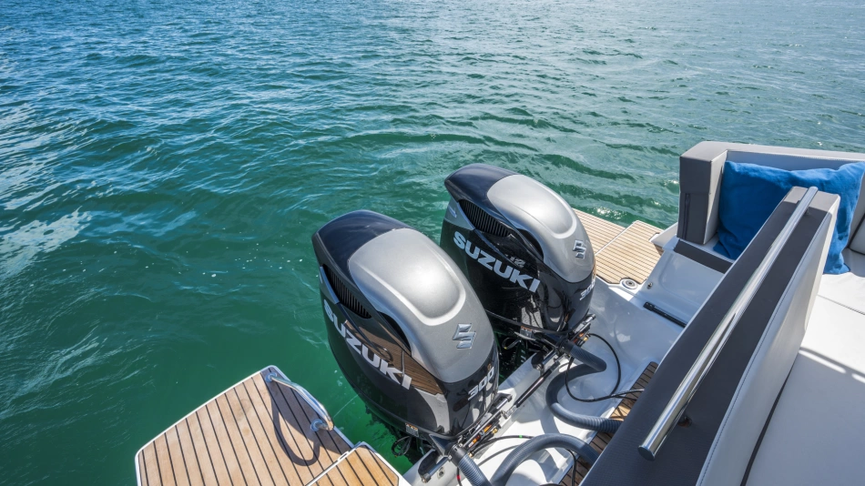 Stylish and contemporary, the powerboat focuses on space, comfort and safety.
