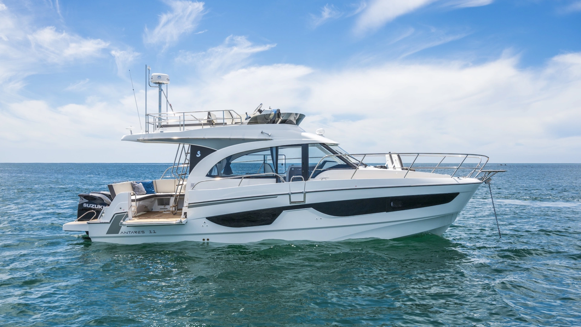 With a length overall of 11 metres, the flagship of the Antares line is the perfect illustration of a family cruiser.