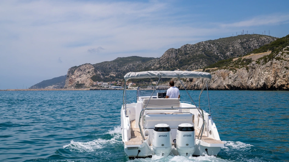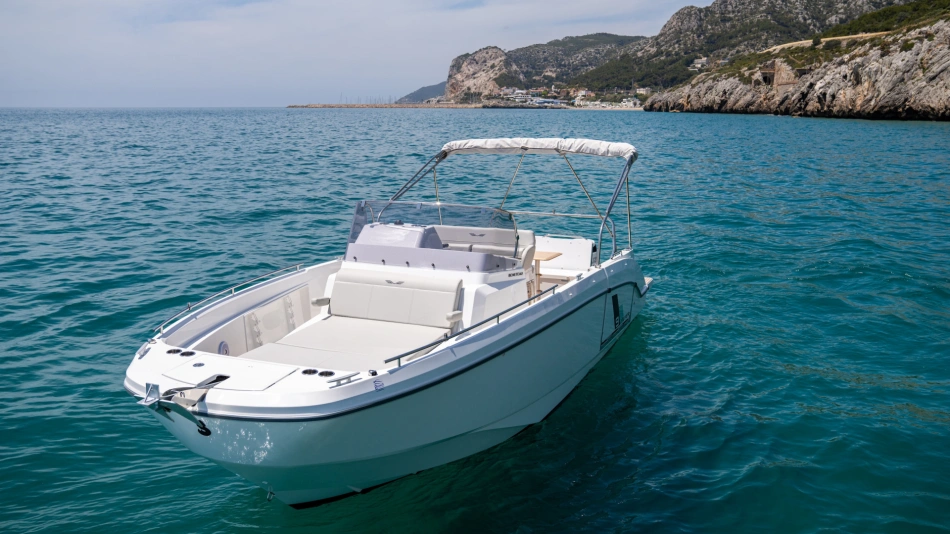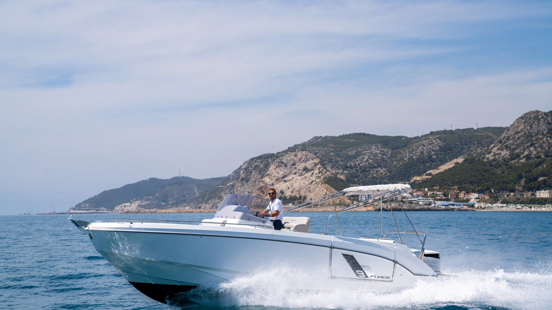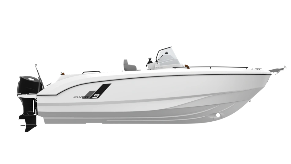 With a large unobstructed area on the deck, high gunnels, the opening side platform to enlarge the cockpit and the sporty design, the Flyer 9 SPACEdeck is perfect for all nauticals activities.