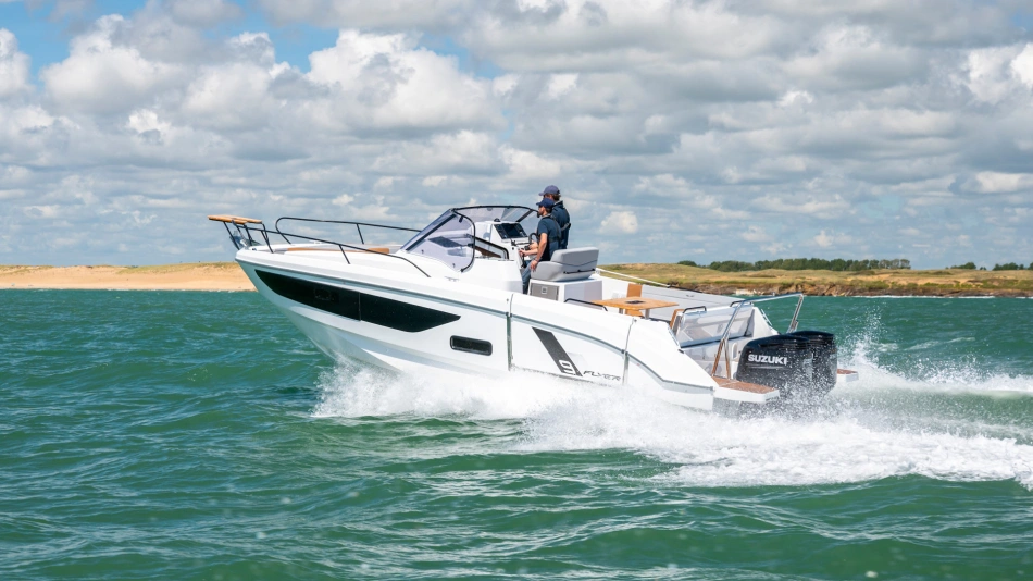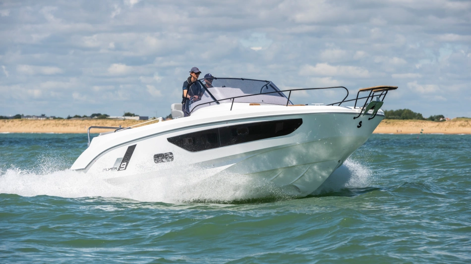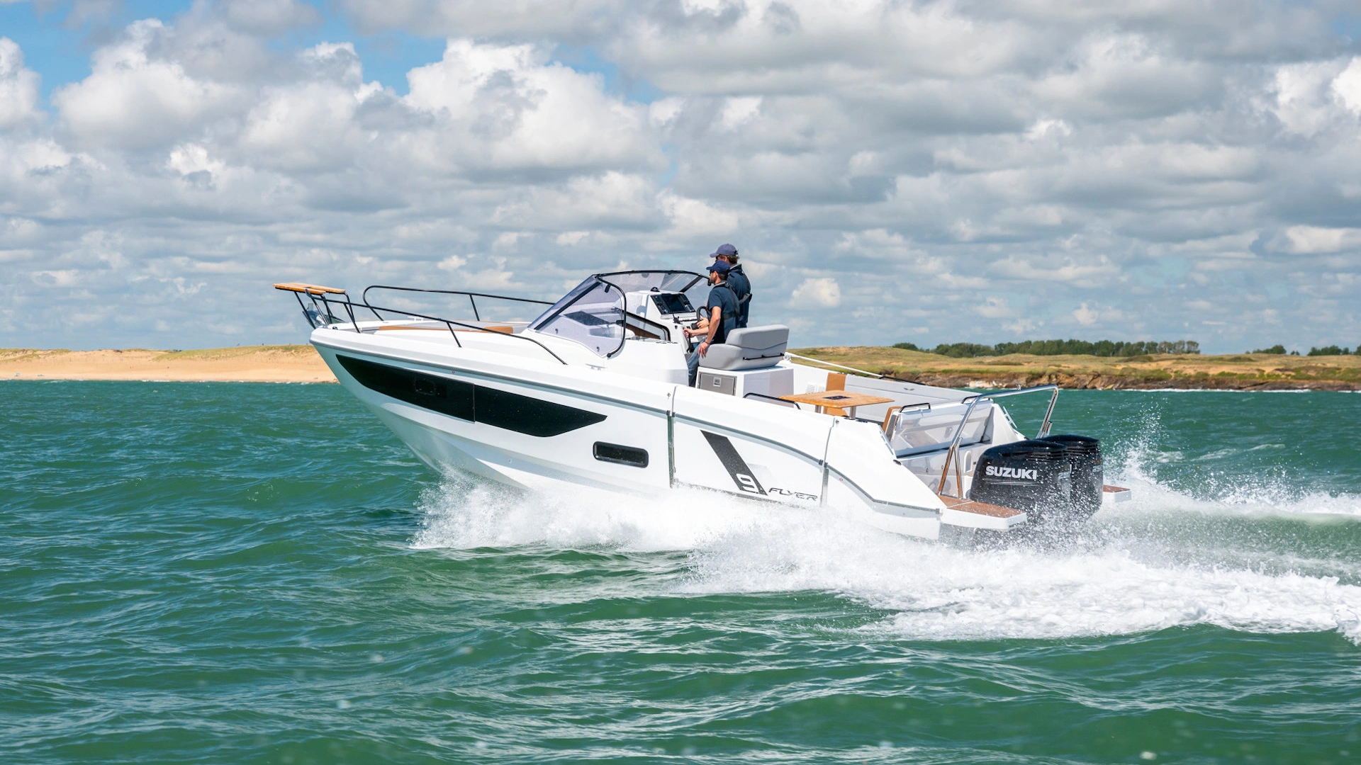 Space on board the Flyer 9 SUNdeck is cleverly optimized and the previous generation's level of comfort improved. Boasting cutting-edge instruments and extra comfort, the pleasure of driving this boat is all about having a good time together in good company.