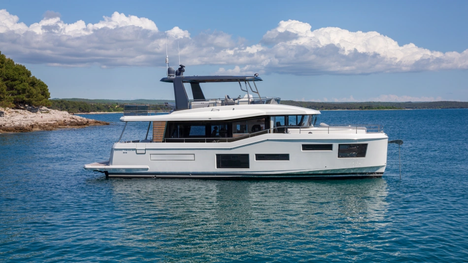The BENETEAU Grand Trawler 63 is not just an evolution—it's the new vision in long-distance luxury cruising. Designed for those who seek serenity, precision, and performance, this yacht sets a new standard in elegant passage-making. Born from the legacy of the acclaimed Grand Trawler 62, the Grand Trawler 63 goes further—literally and figuratively—reimagining every detail for a more intuitive, quieter, and luxurious cruising experience.