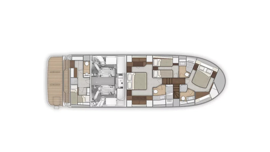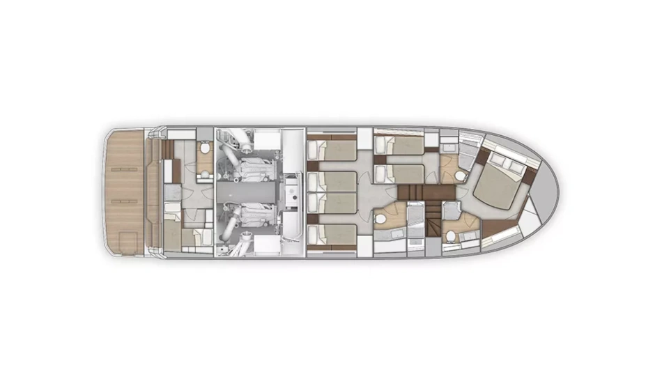 Step aboard and discover interiors designed to enhance life at sea. Available in three or four cabin layouts, each stateroom offers heightened comfort with refined bathrooms, upgraded fixtures, and elegant mirrored finishes. Smart details such as slatted wardrobe latches, enhanced storage, and a convertible coffee table with removable cushion create a space as versatile as it is luxurious. Everything has been designed to feel like home—only better.