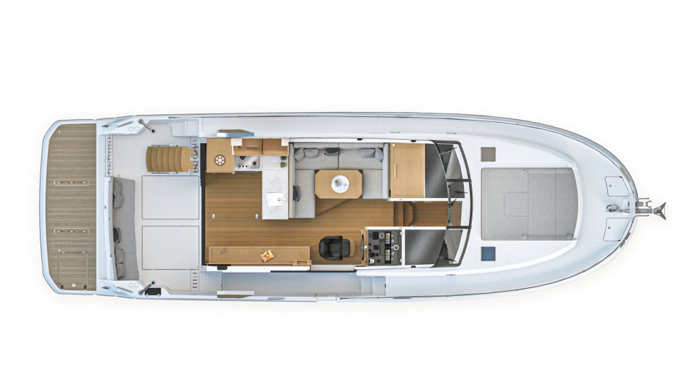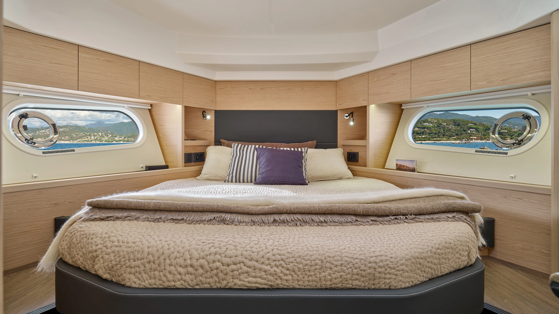 This mid-range boat has a strikingly stylish profile which features the new stainless framed teak slat fashion plates - aligned with those seen on the Grand Trawler 62