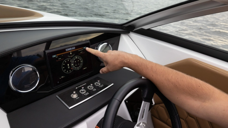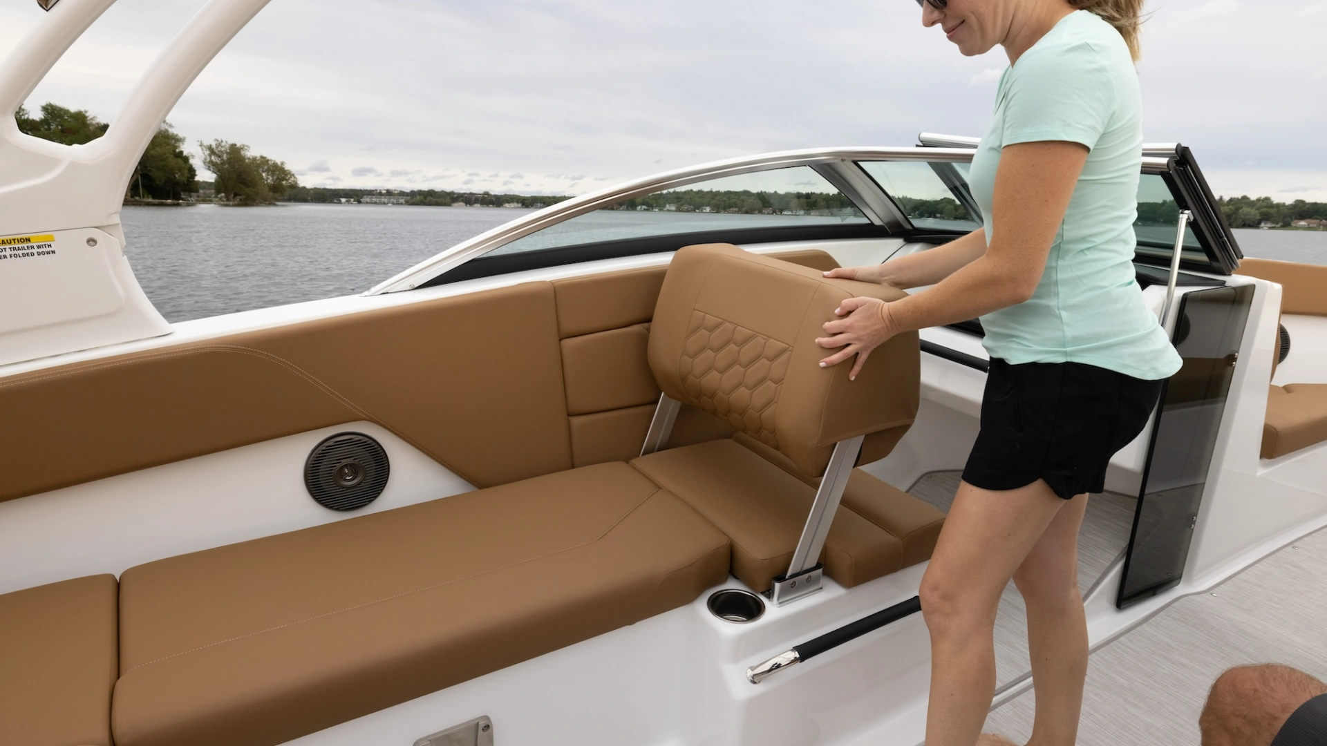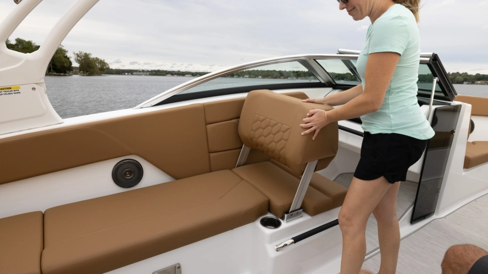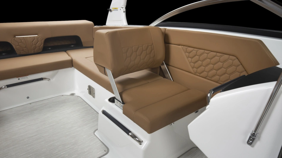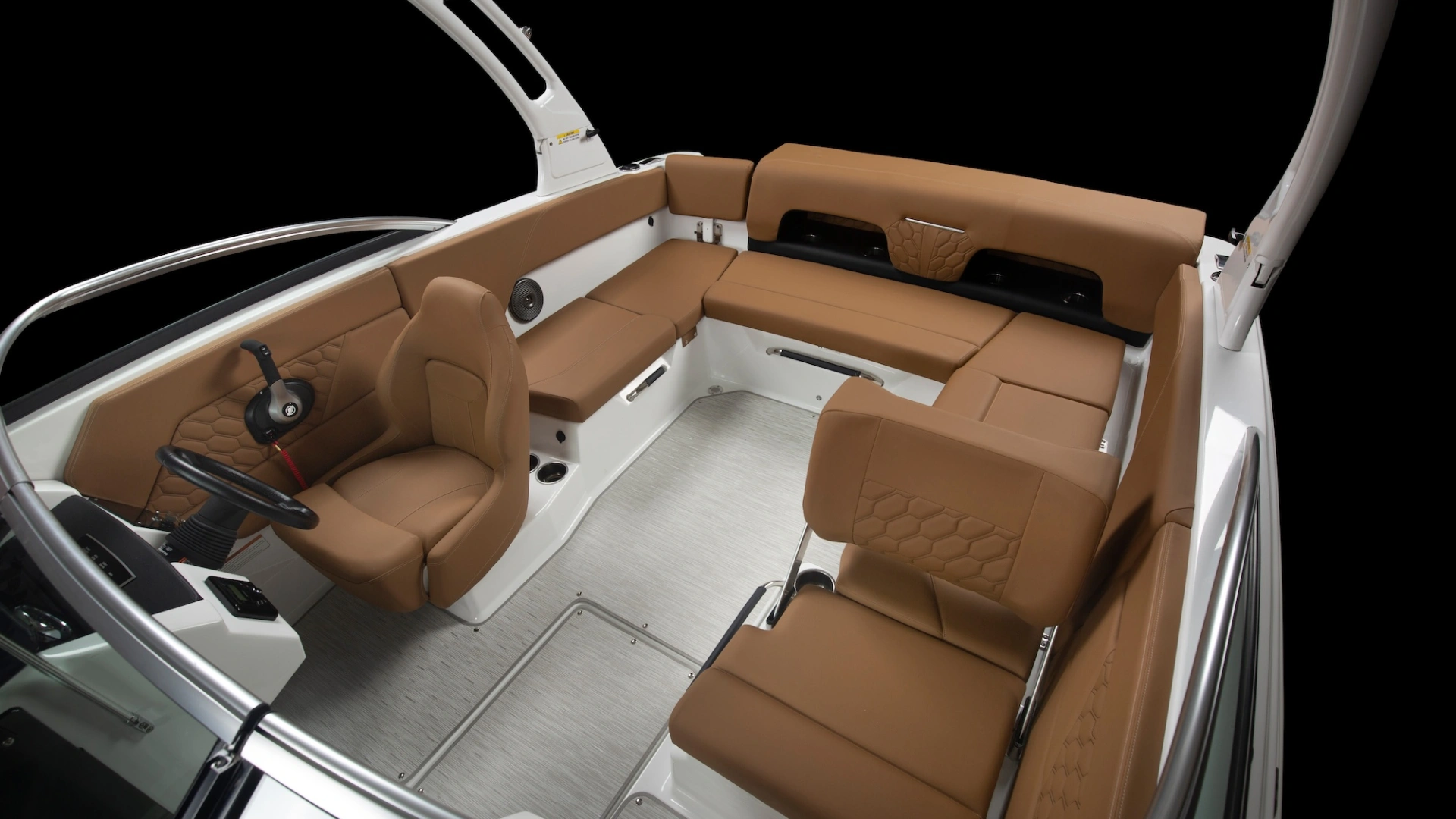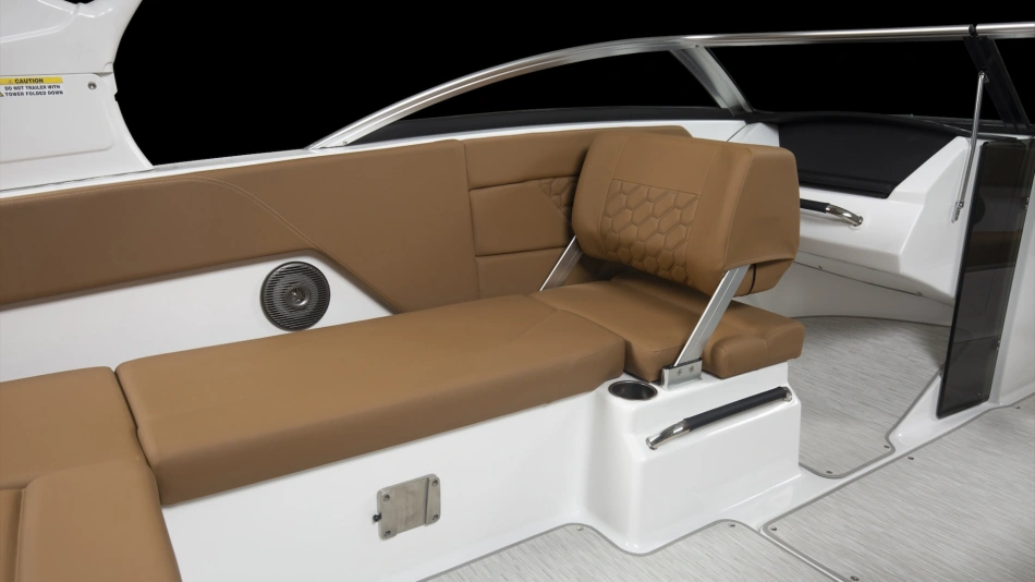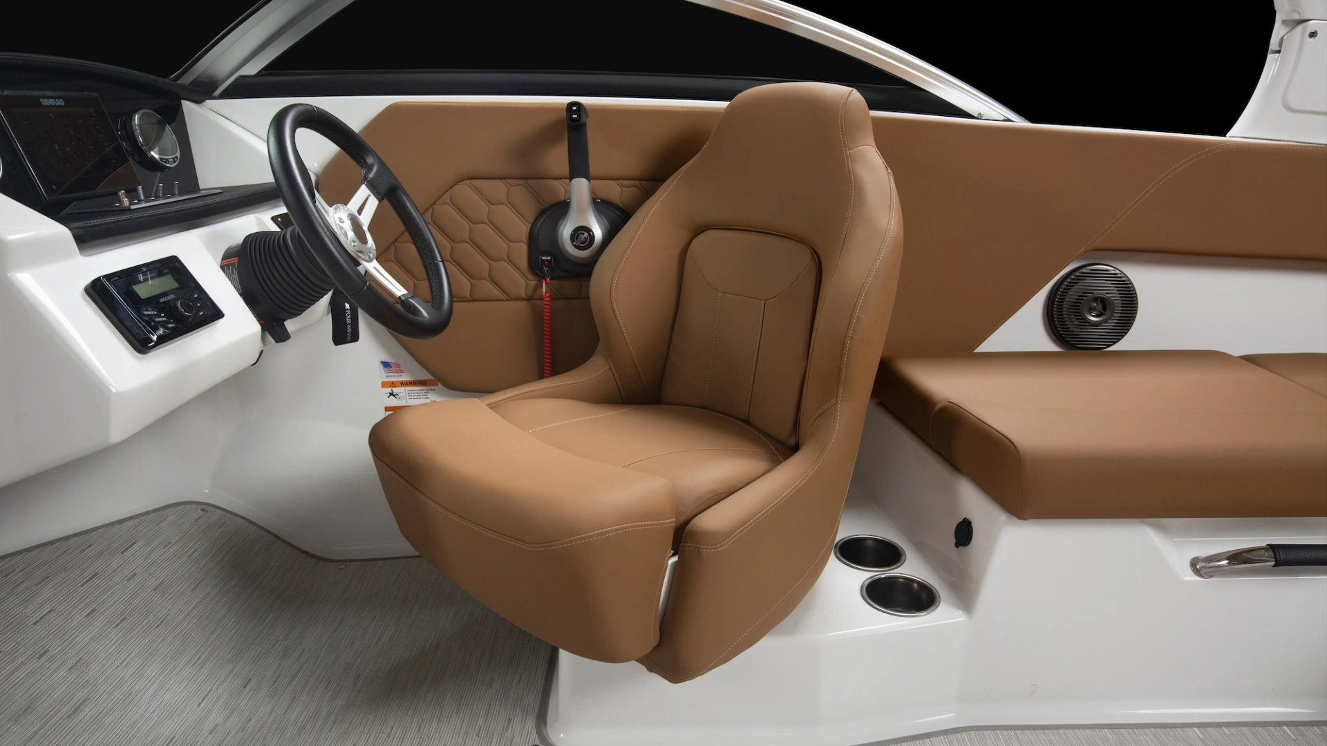 The H1-OB is poised to set the new standard in the 20-foot bowrider segment. Fine appointments, leather-wrapped grab handles, stainless cupholders, quilted stitching, all the details that raise the bar AND meet our expectations.