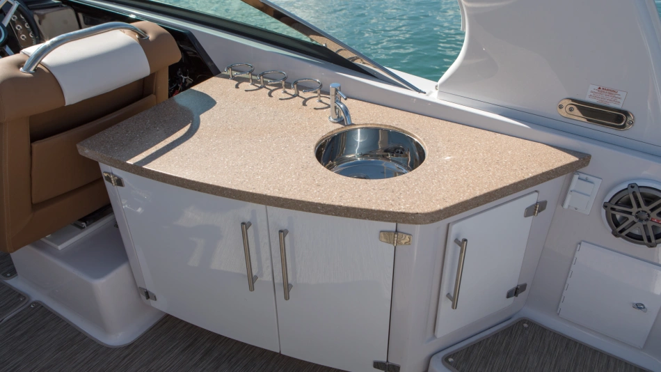 Step aboard pure luxury wrapped in a sport boat package. From exclusive chaise lounge-style seating and unlimited storage, a full head compartment and berth, and a two-tiered swim platform, this classic wide-body boat promises comfort and grand adventure.