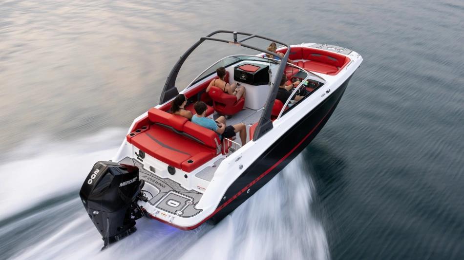he HD3 OB is the only Deck boat available that raises the bar on everything. The interior is furnished with gorgeous upholstery and plush bucket seats that are designed with so much padding you could take an endless ride. She also comes with a standard custom trailer and fully enclosed head compartment. What could be better?