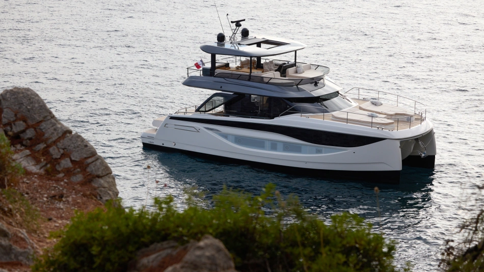 At sea or at anchor, the M7 offers a yet unimagined quality of life on board for her category. Her multihull configuration offers space and an exceptional level of fit and finish, all in perfect harmony with nature.