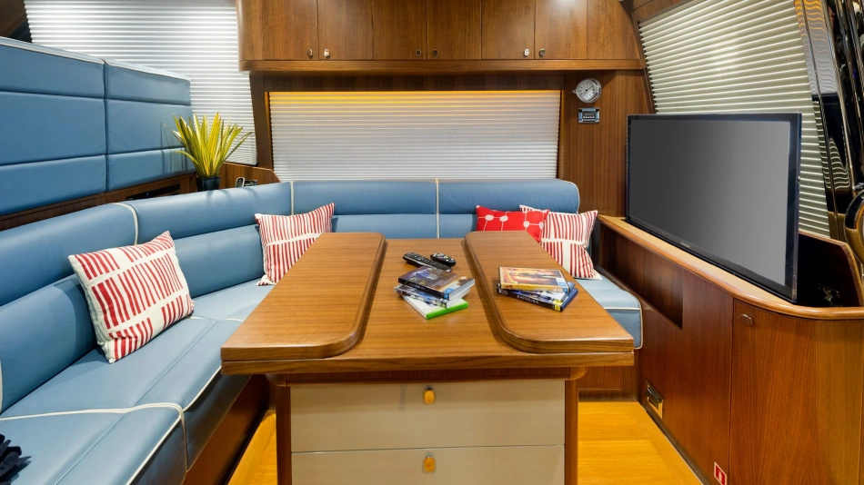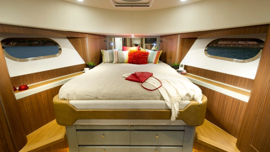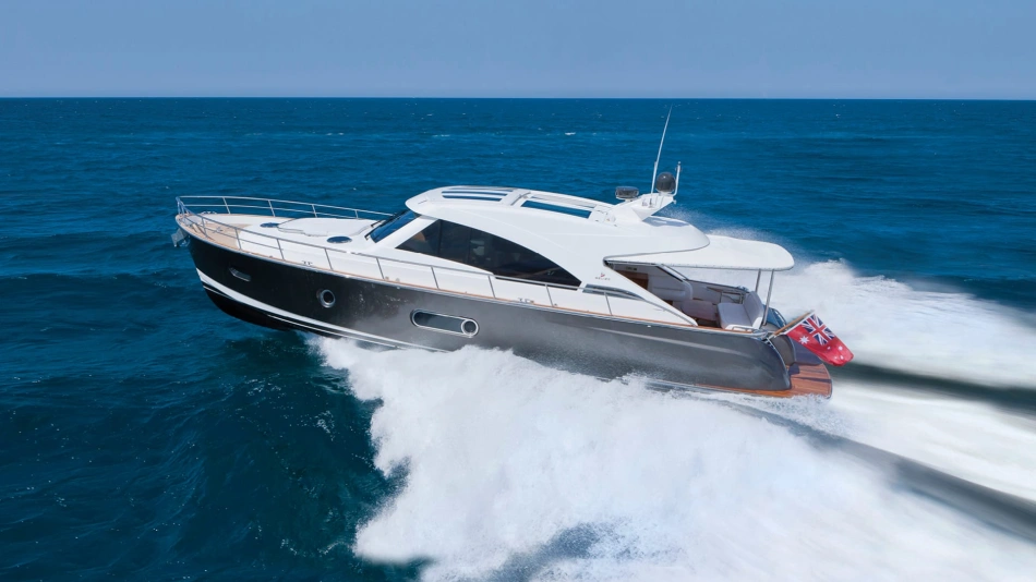 The technical credentials of the Belize 54 Sedan will certainly impress. Resin-infused composite construction, double vinyl-ester outer skin, watertight, stepped collision bulkhead and independent foam-filled hull compartments. CZone digital switching system, Glass Cockpit navigation and Volvo Penta Inboard Performance