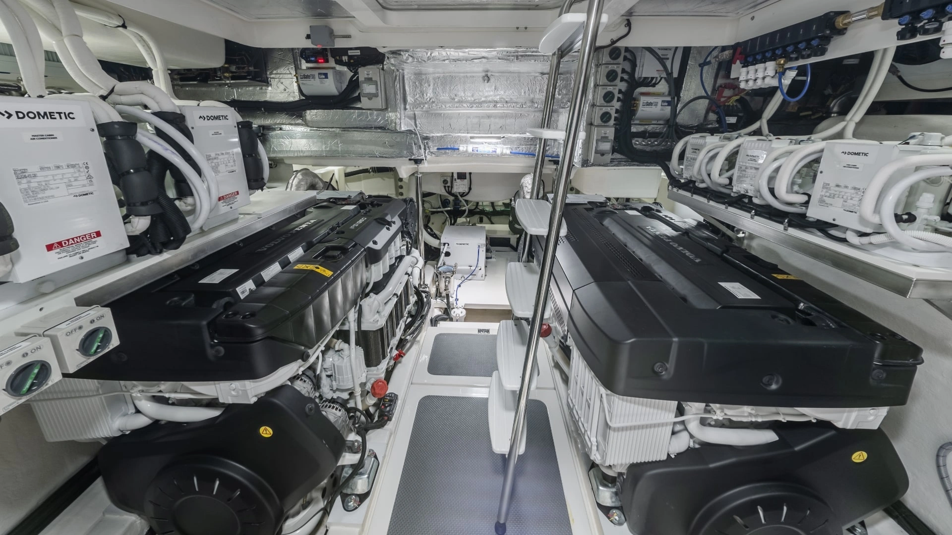 The new 58 offers all the SMY essentials including a wide and uncluttered all water sports cockpit, walk around side decks, foredeck lounge and entertaining zone, all weather alfresco deck entertaining and spacious, luxurious saloon with internal staircase to a fully-enclosed air-conditioned flybridge and state-of-the-art helm. The three stateroom, three bathroom accommodation deck features a luxurious full-beam master suite, and versatile utility room or crew cabin. Engineering excellence matches her sports performance with a very smooth, and efficient ride.