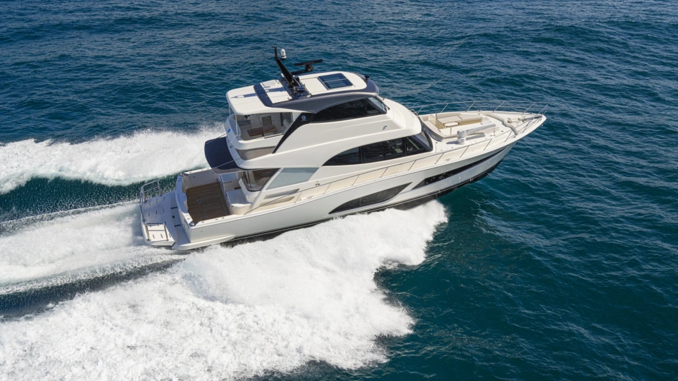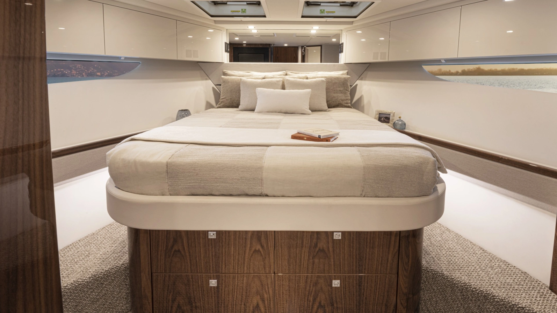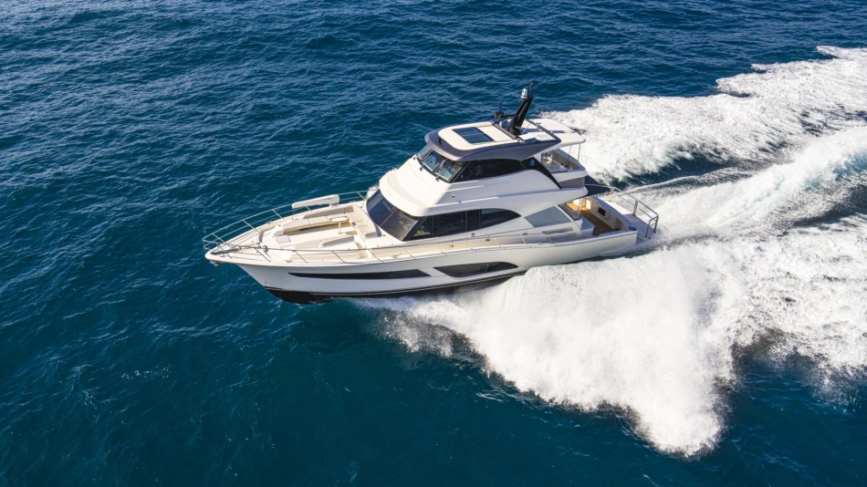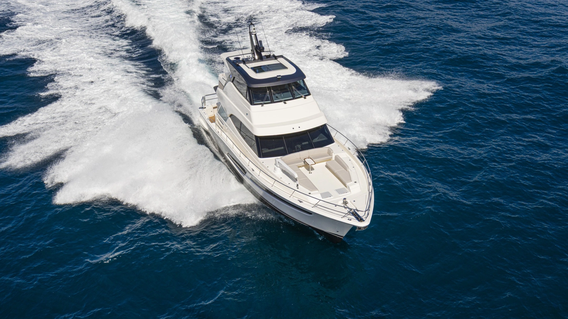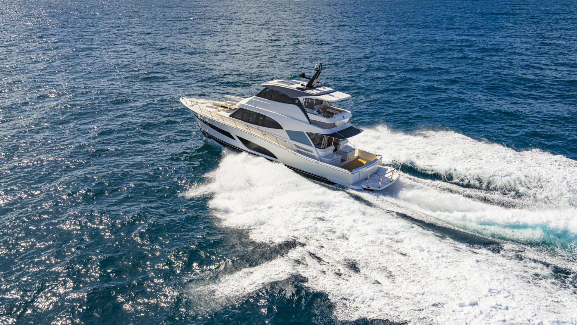 First launched in 2020, Riviera’s 64 Sports Motor Yacht set the benchmark for a 64-foot blue-water yacht that has it all; walk-around side decks, foredeck lounge and entertaining, all-weather alfresco deck, luxurious saloon with internal staircase to a fully enclosed air-conditioned flybridge and state-of-the-art helm. Magnificent accommodation included a choice of three or four staterooms, three bathrooms, an opulent full-beam master suite and versatile utility room or crew cabin. Engineering excellence matched her sports performance to ensure a smooth, quiet and efficient ride across varying speeds and a range of offshore conditions. And of course, a wide, open cockpit to allow enjoyment of all manner of water sports.
