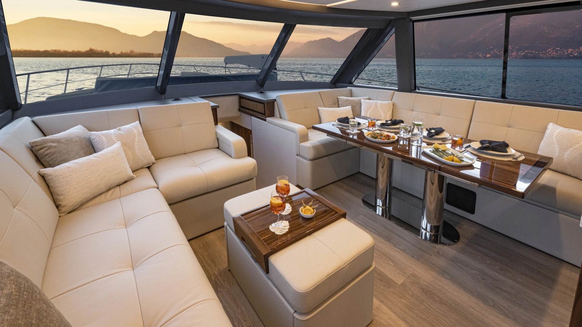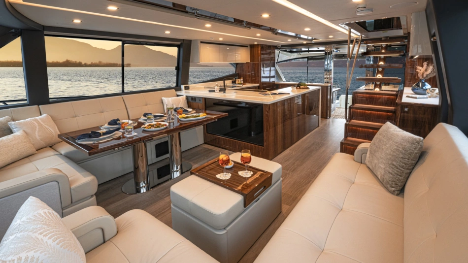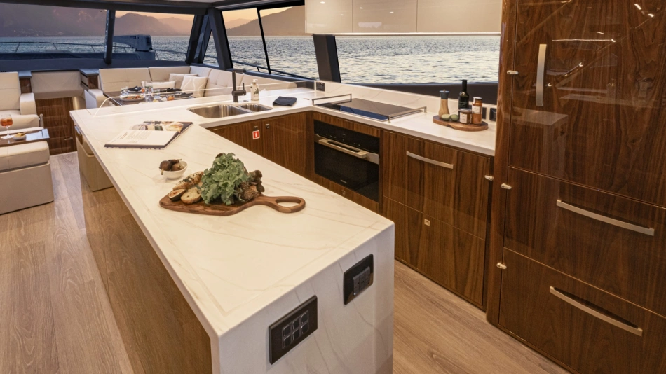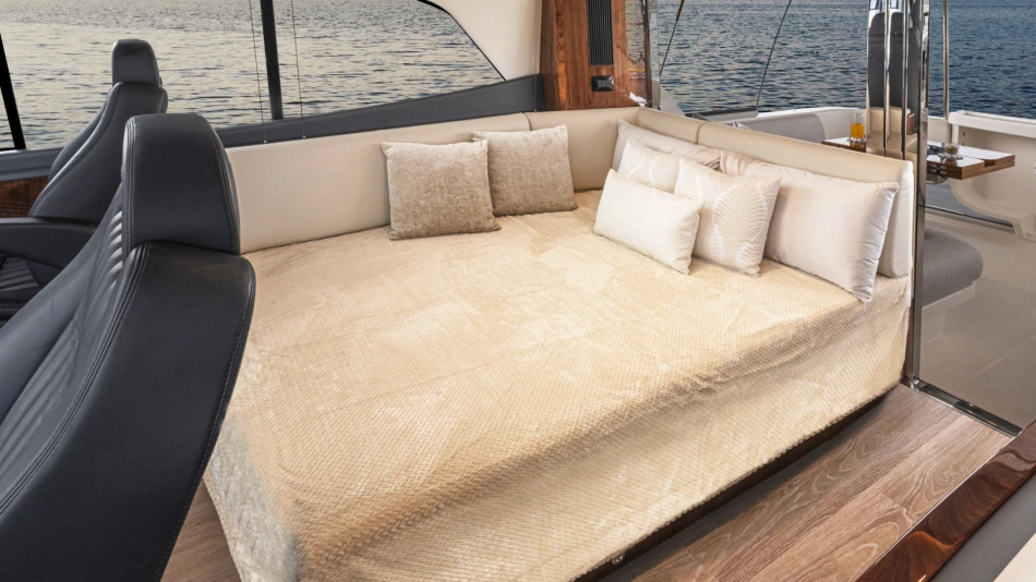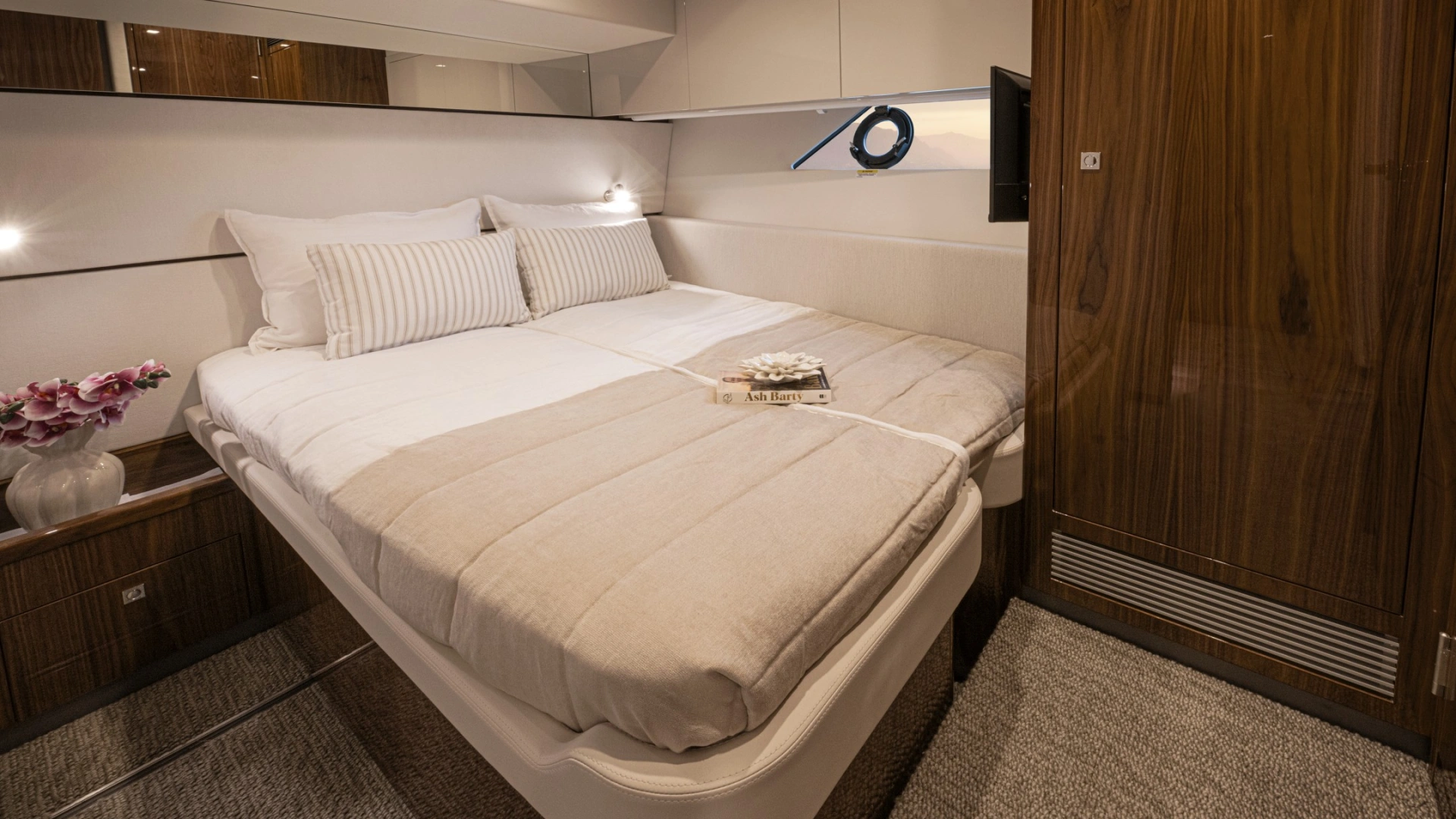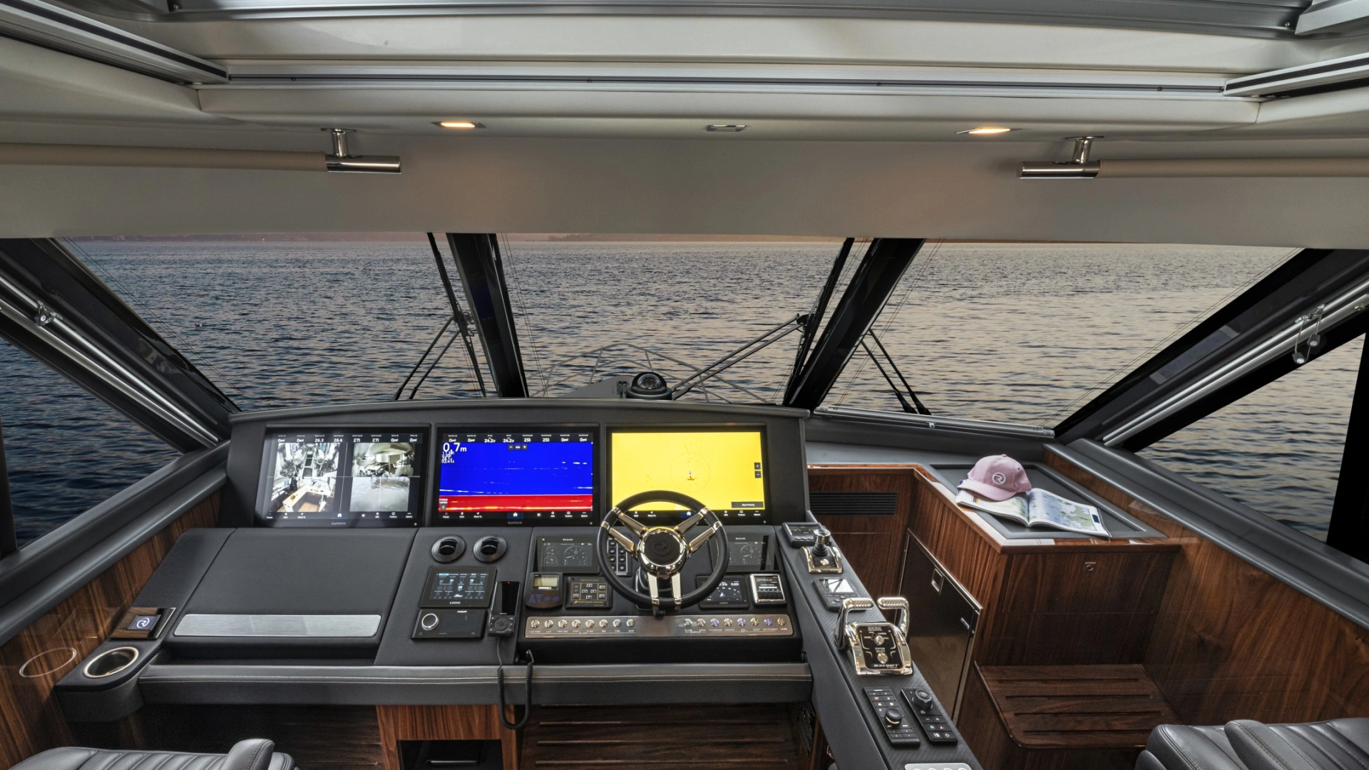 First launched in 2020, Riviera’s 64 Sports Motor Yacht set the benchmark for a 64-foot blue-water yacht that has it all; walk-around side decks, foredeck lounge and entertaining, all-weather alfresco deck, luxurious saloon with internal staircase to a fully enclosed air-conditioned flybridge and state-of-the-art helm. Magnificent accommodation included a choice of three or four staterooms, three bathrooms, an opulent full-beam master suite and versatile utility room or crew cabin. Engineering excellence matched her sports performance to ensure a smooth, quiet and efficient ride across varying speeds and a range of offshore conditions. And of course, a wide, open cockpit to allow enjoyment of all manner of water sports.