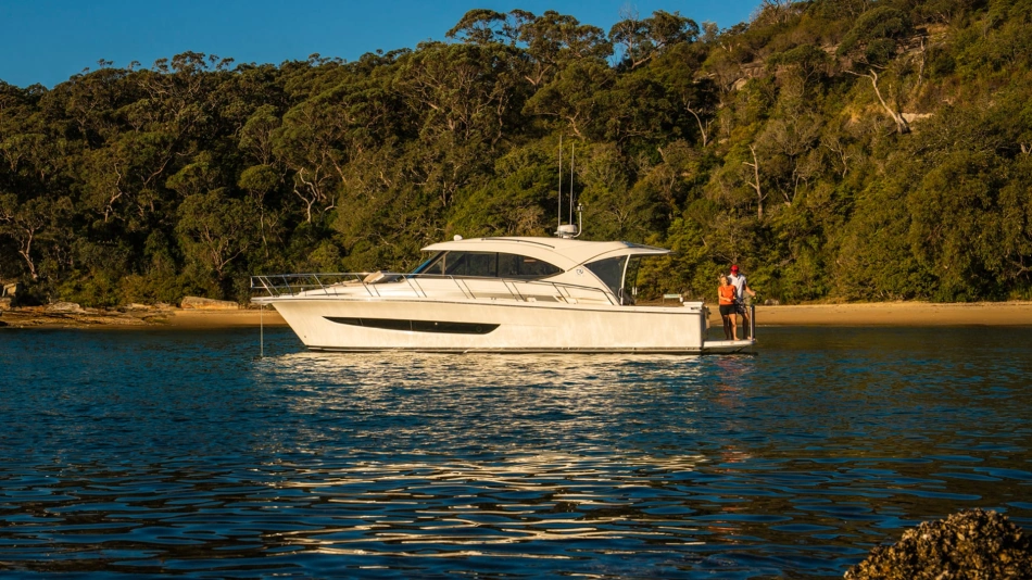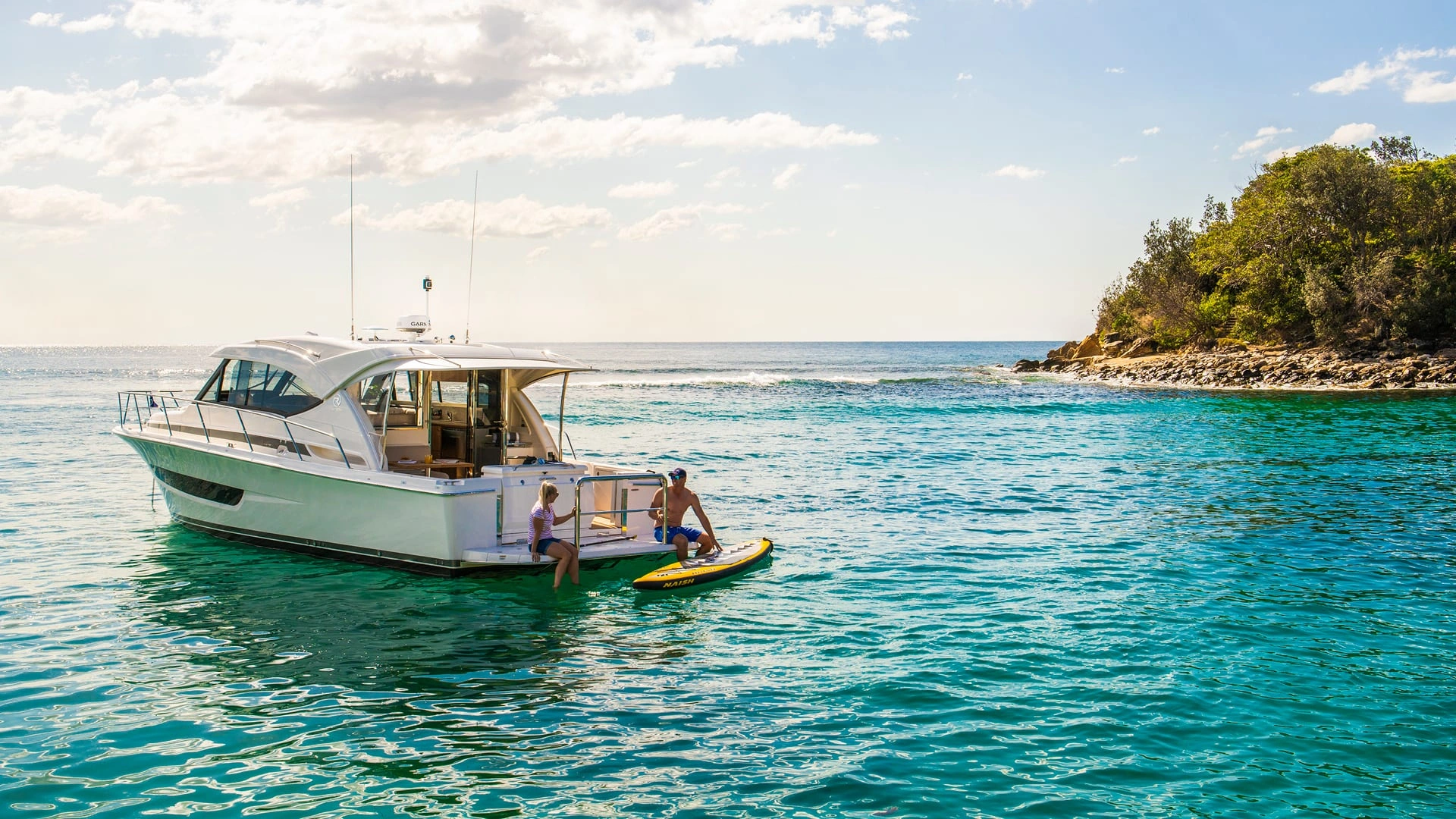 Riviera, pioneers of luxury SUV motor yachting, are proud to introduce our first under 40-foot SUV model. The exciting Riviera 395 SUV: with flowing one-level living, open cockpit, spirited Volvo Penta Inboard Performance System (IPS) performance and pinpoint handling. Sensational.
