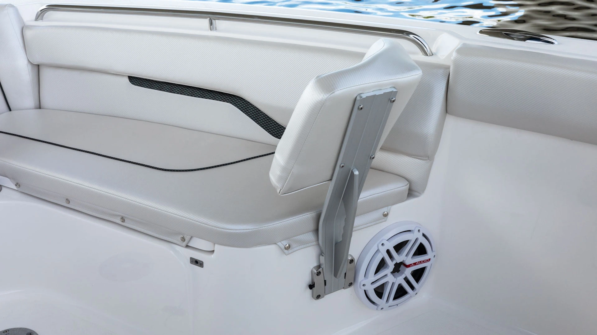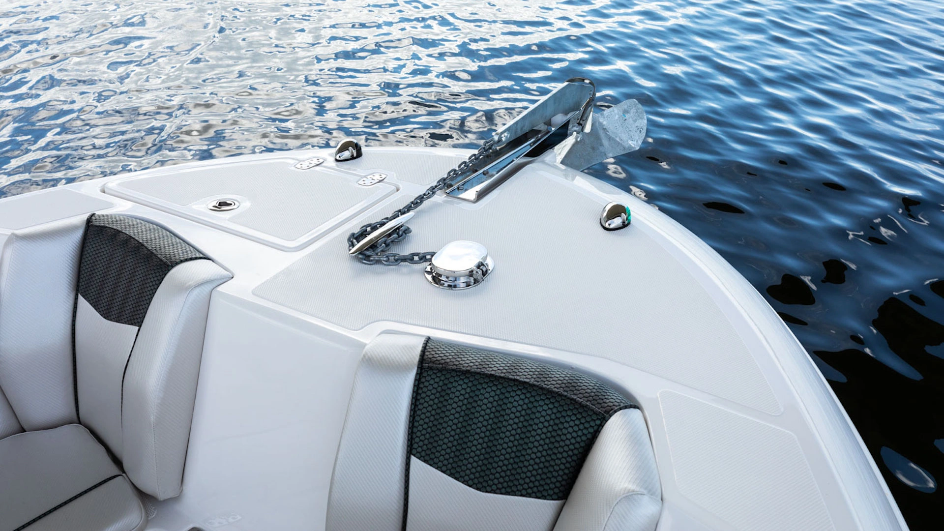 Whatever your passion: luxury fishing, family boating, or offshore cruising, the 242F embraces it all. Powered by single or dual applications, this 24'4" vessel delivers the length and muscle fishermen need when heading offshore—a textbook ride only possible through a high freeboard, deep hull, and an articulated bow flare.
