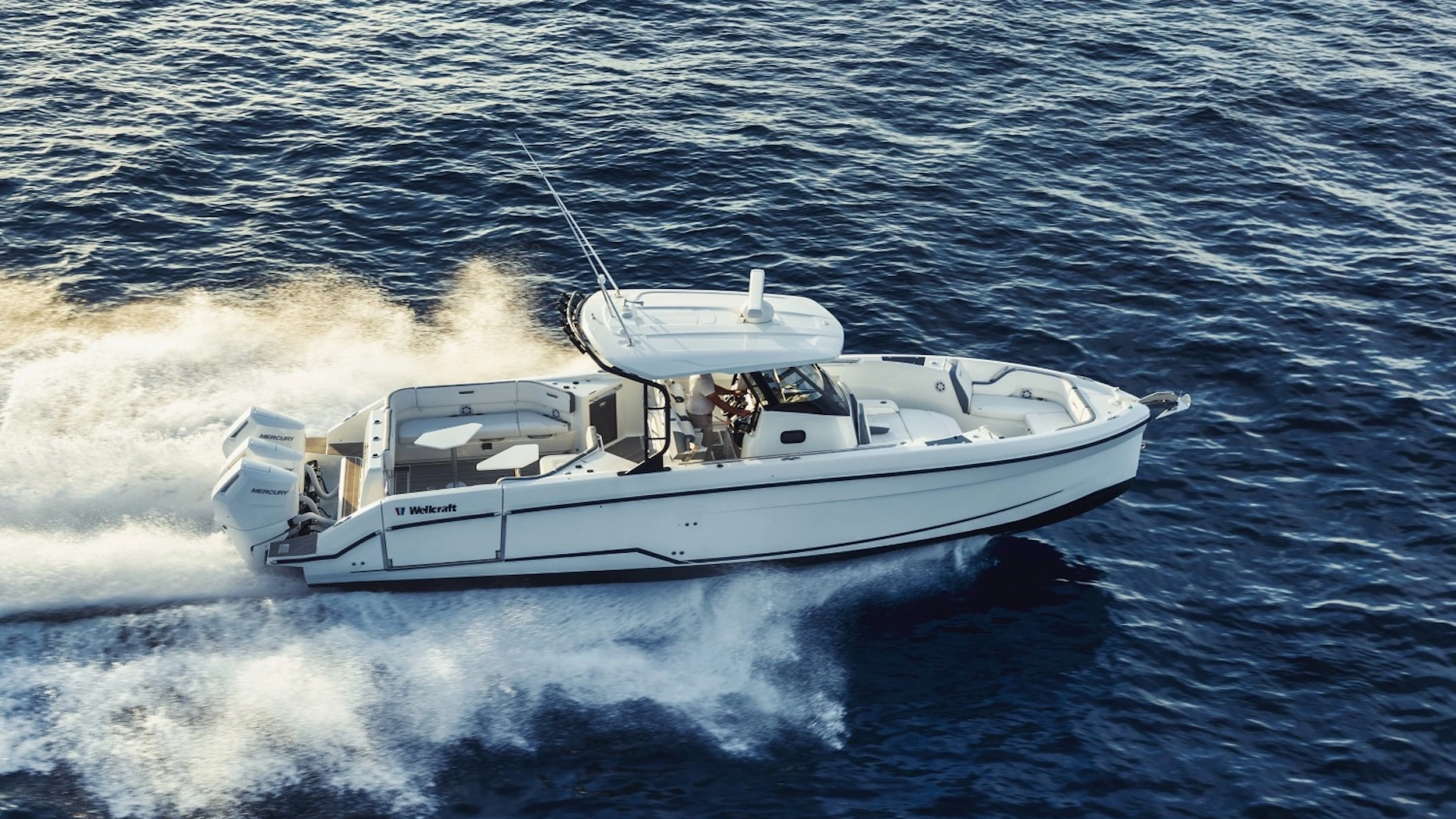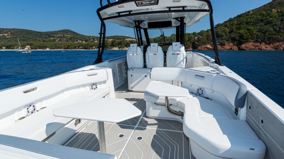 Combining spacious social areas, unrivalled performance, the boat is also packed with entertainment features for thrill-seekers. At 38’4” (11.69m), the Wellcraft 38 T-Top boasts unparalleled seating capacity while the innovative swim platform offers unmatched water-access.