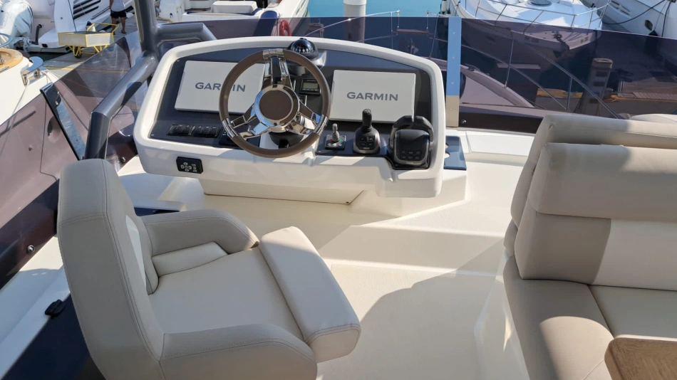 A flybridge powerboat, she has inherited the superb genetic makeup of a highly successful range: a very distinctive contemporary design with an elegant profile, wonderfully designed spaces and special attention to detail. The Monte Carlo 52 takes these great strengths one step further. Her line is more contemporary and her profile more slender, and she is extremely spacious.