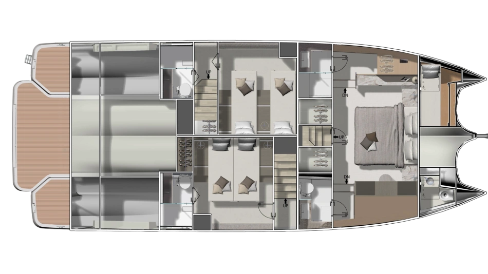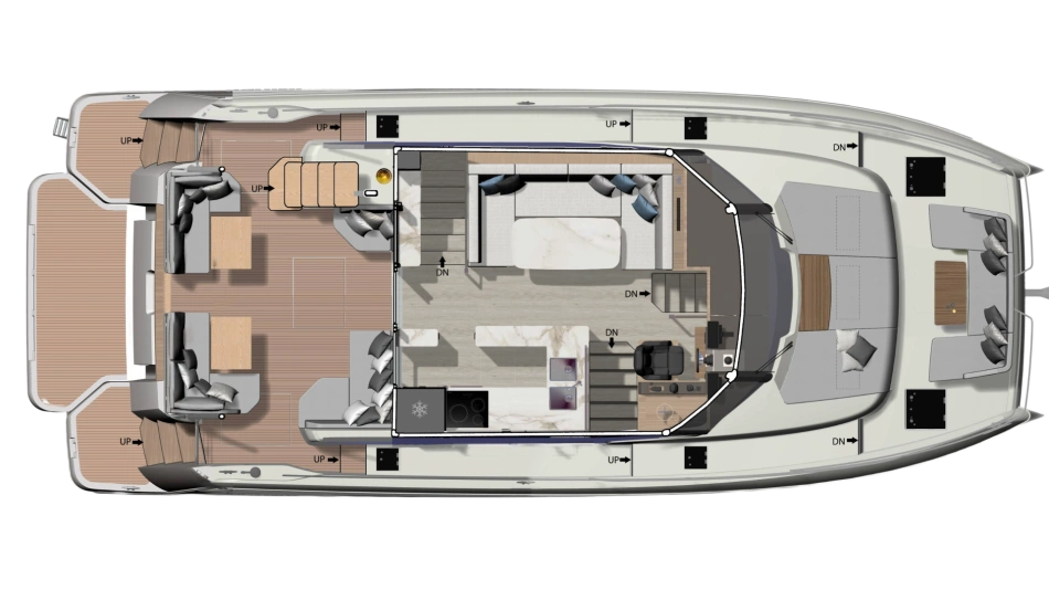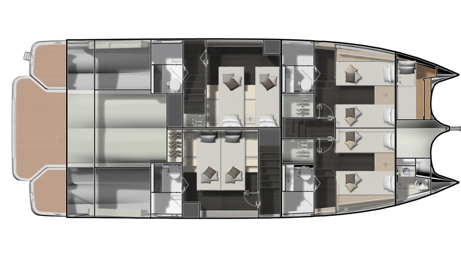 This multihull yacht reveals generous, brightly lit and refined living spaces, affording the ultimate in comfort. It promises life in