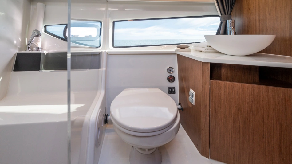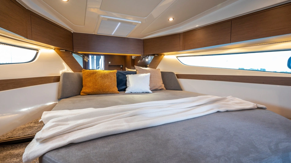 The aft cabin is full beam and has three berths. The Antares 11 has a convertible saloon and can accommodate up to 7 people in excellent conditions.