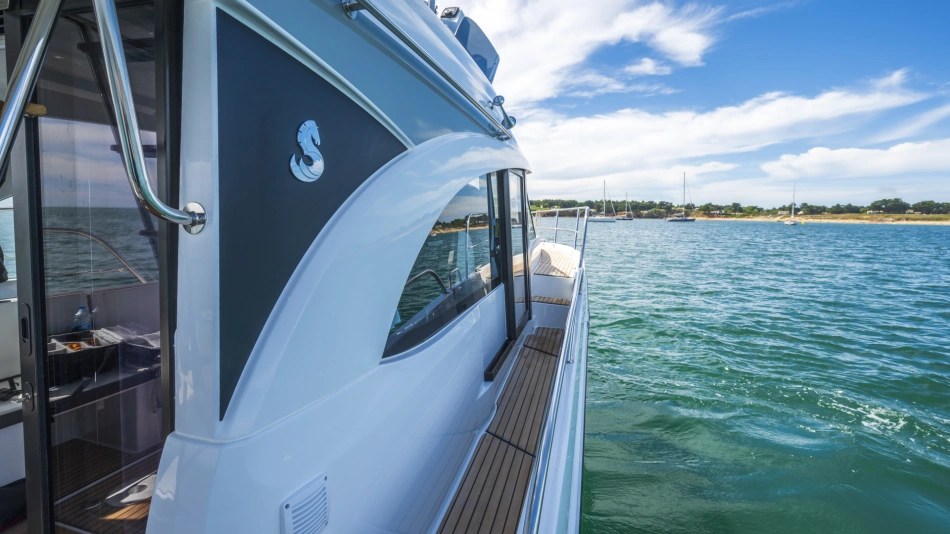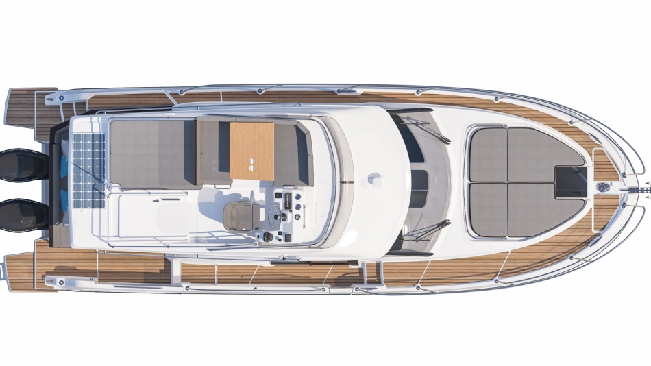 Stylish and contemporary, the powerboat focuses on space, comfort and safety.