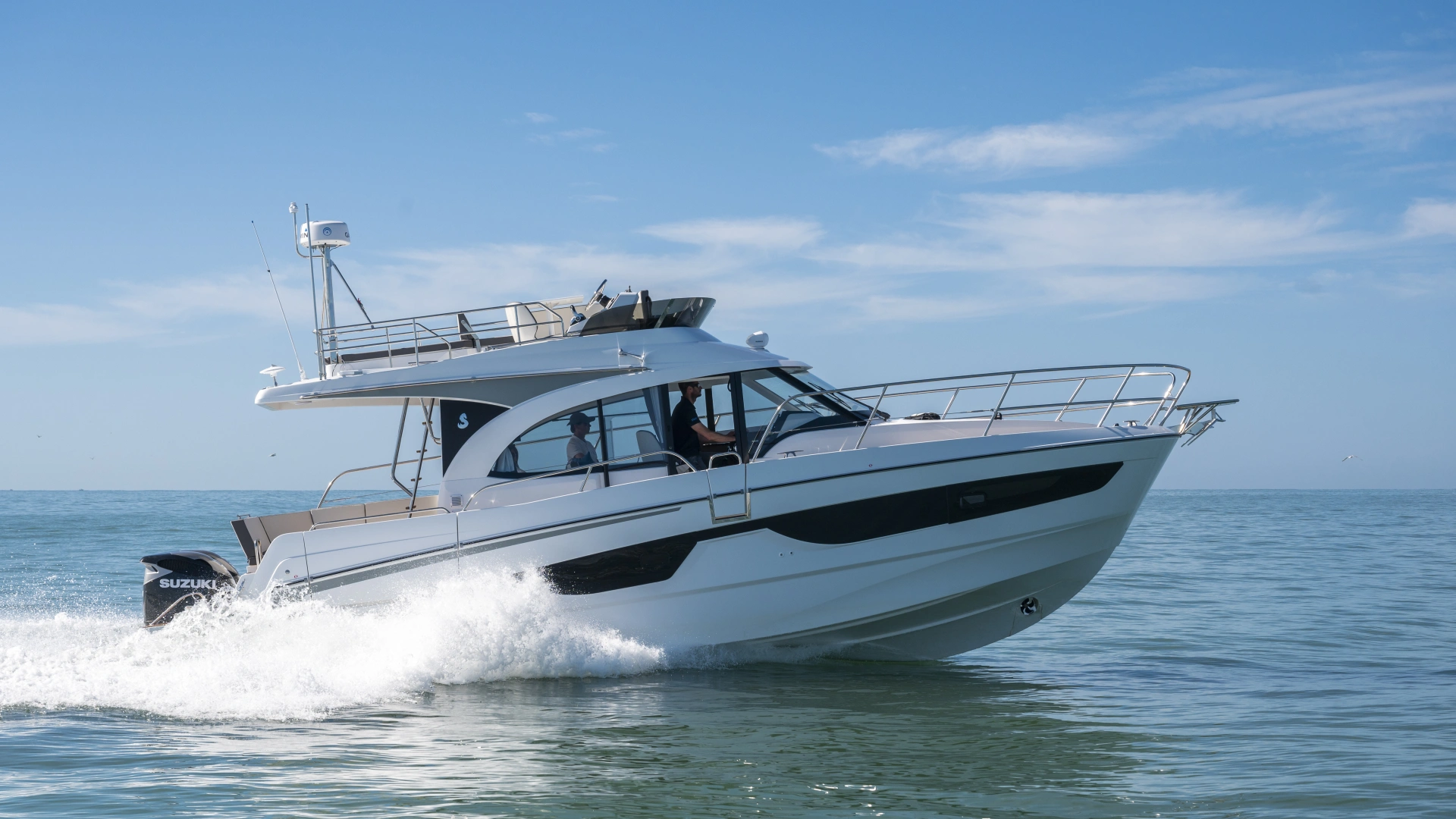 The flybridge of the Antares 11 FLY blends seamlessly into the powerboat's profile and is the perfect way to enjoy the thrills of outdoor boating.