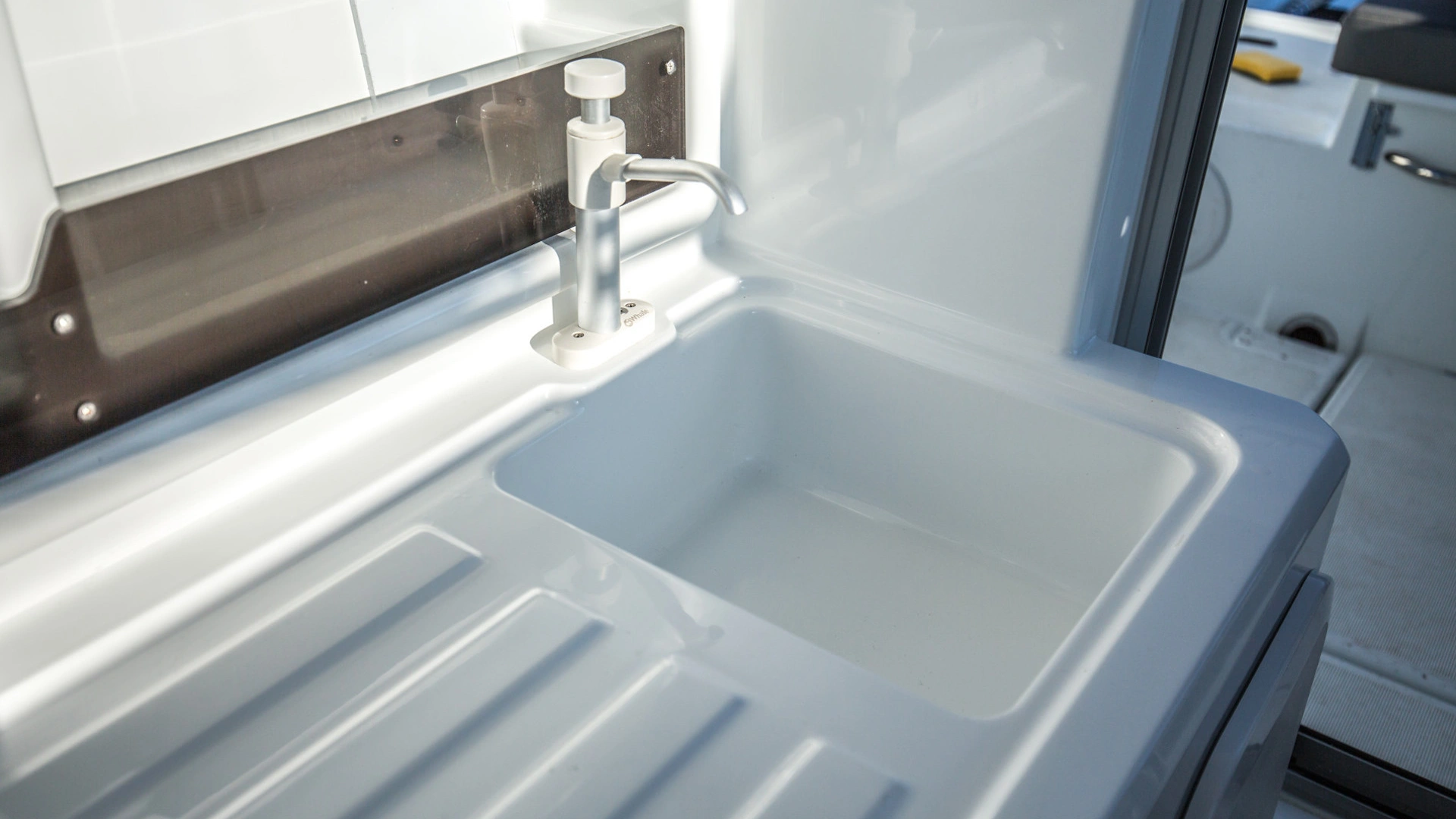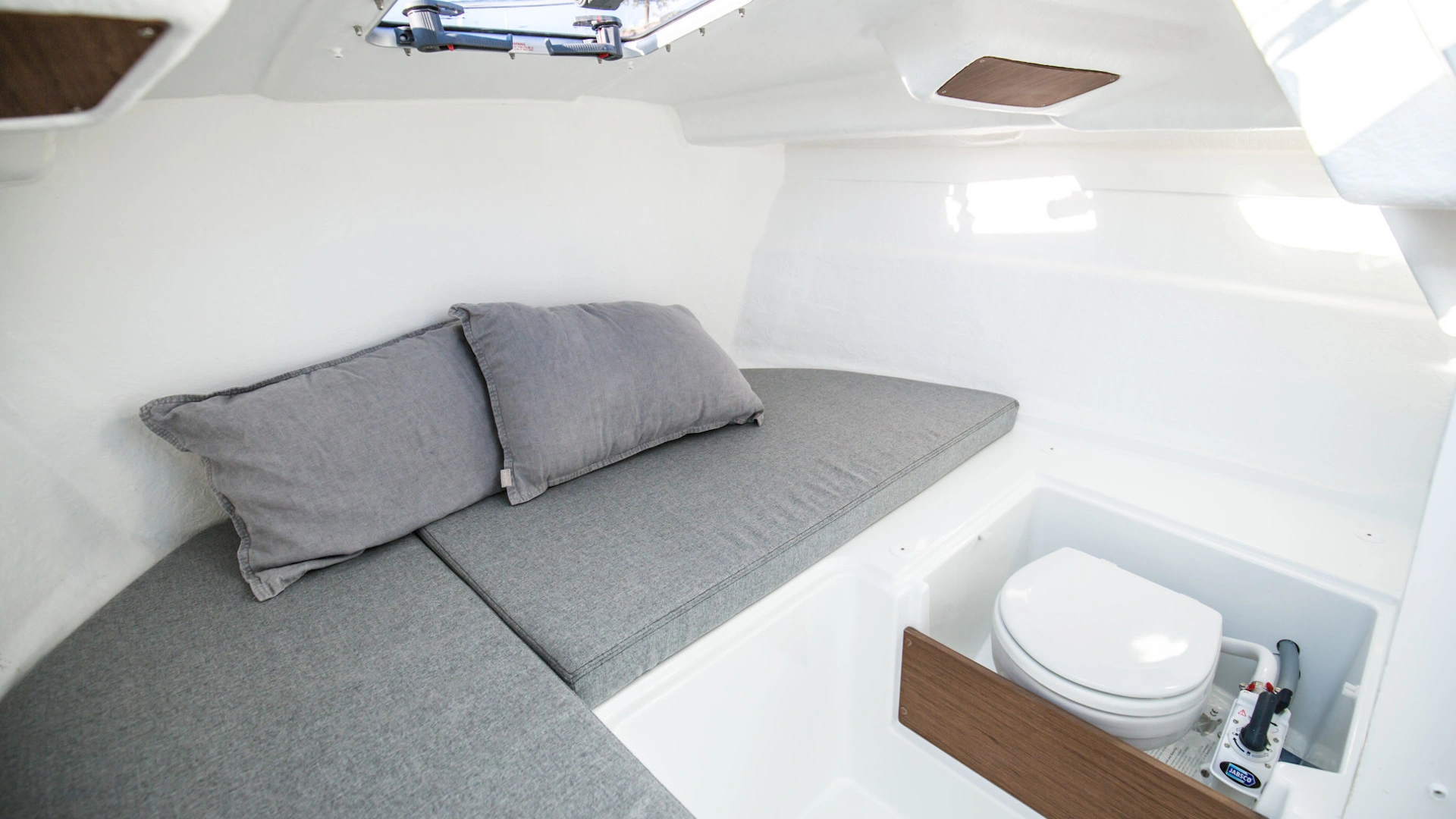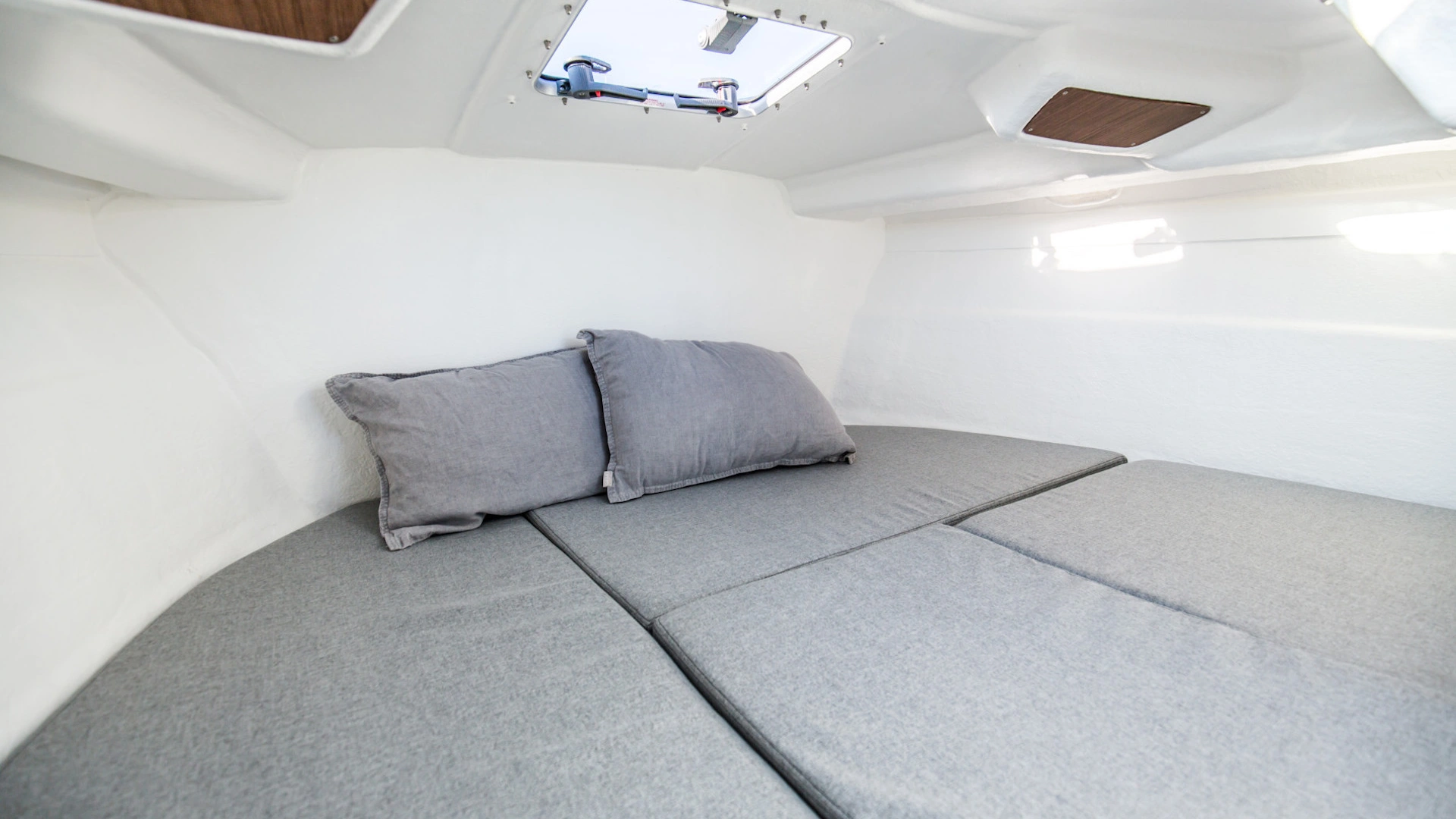 On the Antares 6, space and comfort have been rethought to make trips with up to six people a real joy on a boat that is only 5.70 m. With wraparound windows, the pilothouse is bathed in natural light. lifting driver’s seat, a convertible saloon and a cabin for resting, all enhance the feeling of space and comfort on board.
