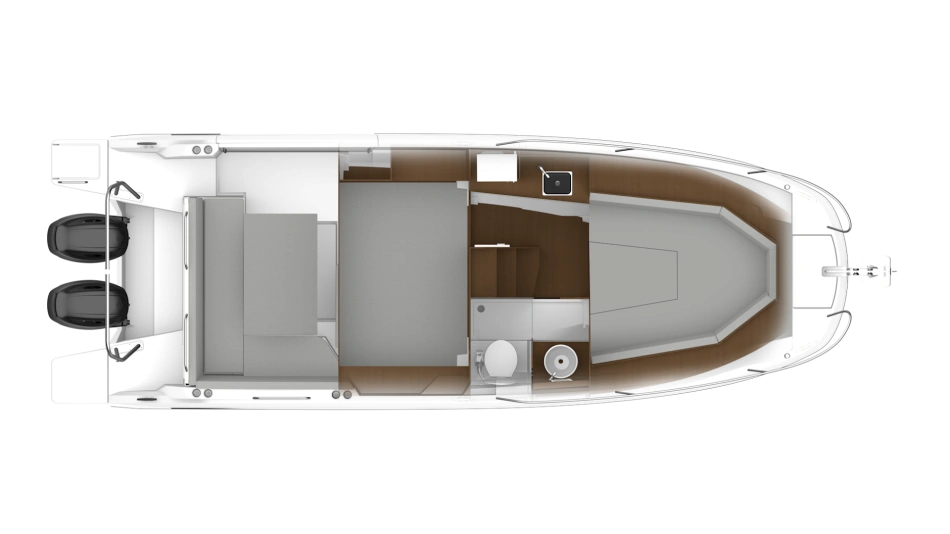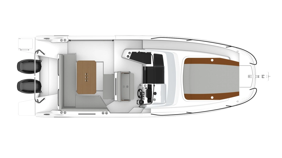 Space on board the Flyer 9 SUNdeck is cleverly optimized and the previous generation's level of comfort improved. Boasting cutting-edge instruments and extra comfort, the pleasure of driving this boat is all about having a good time together in good company.