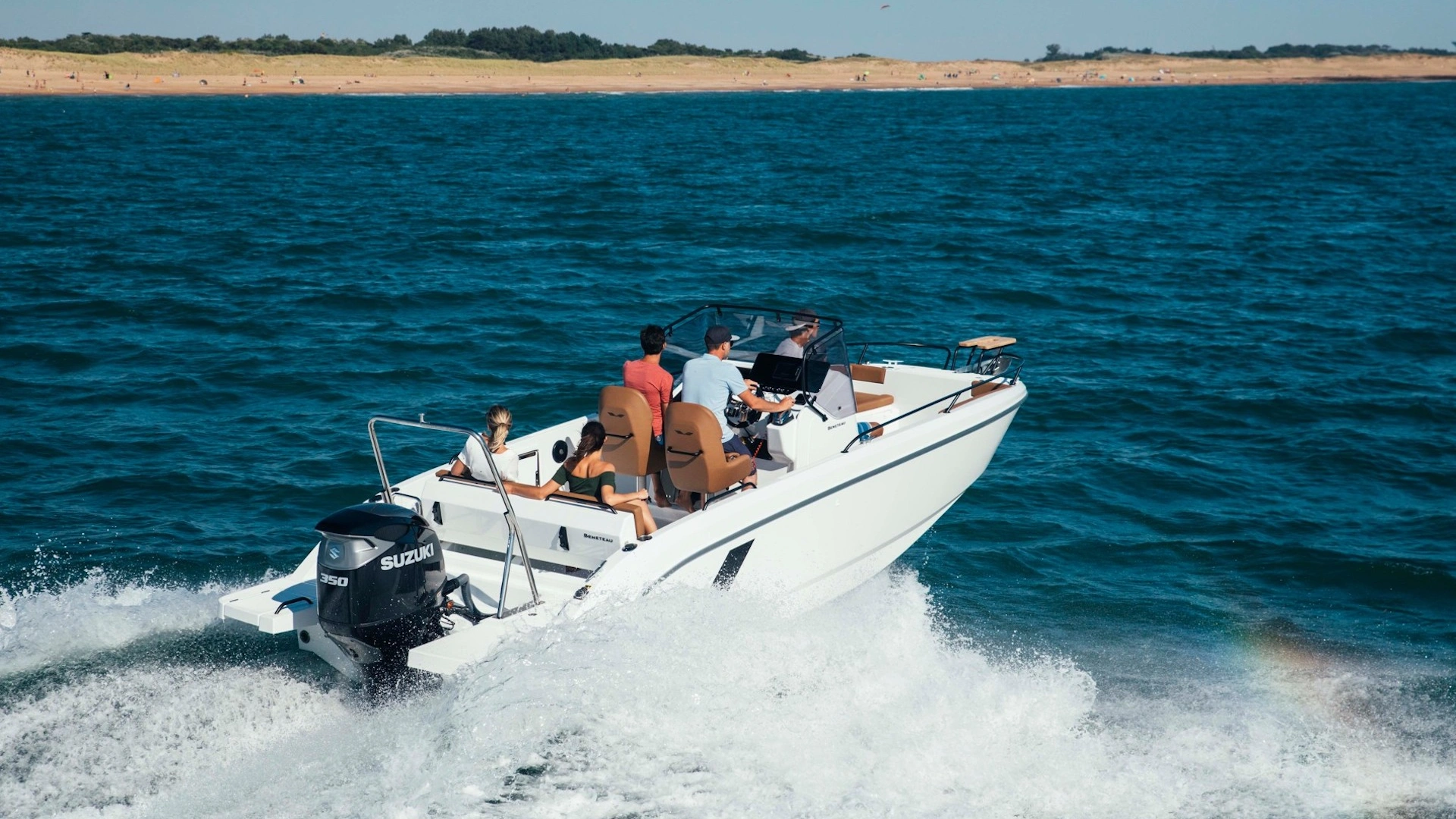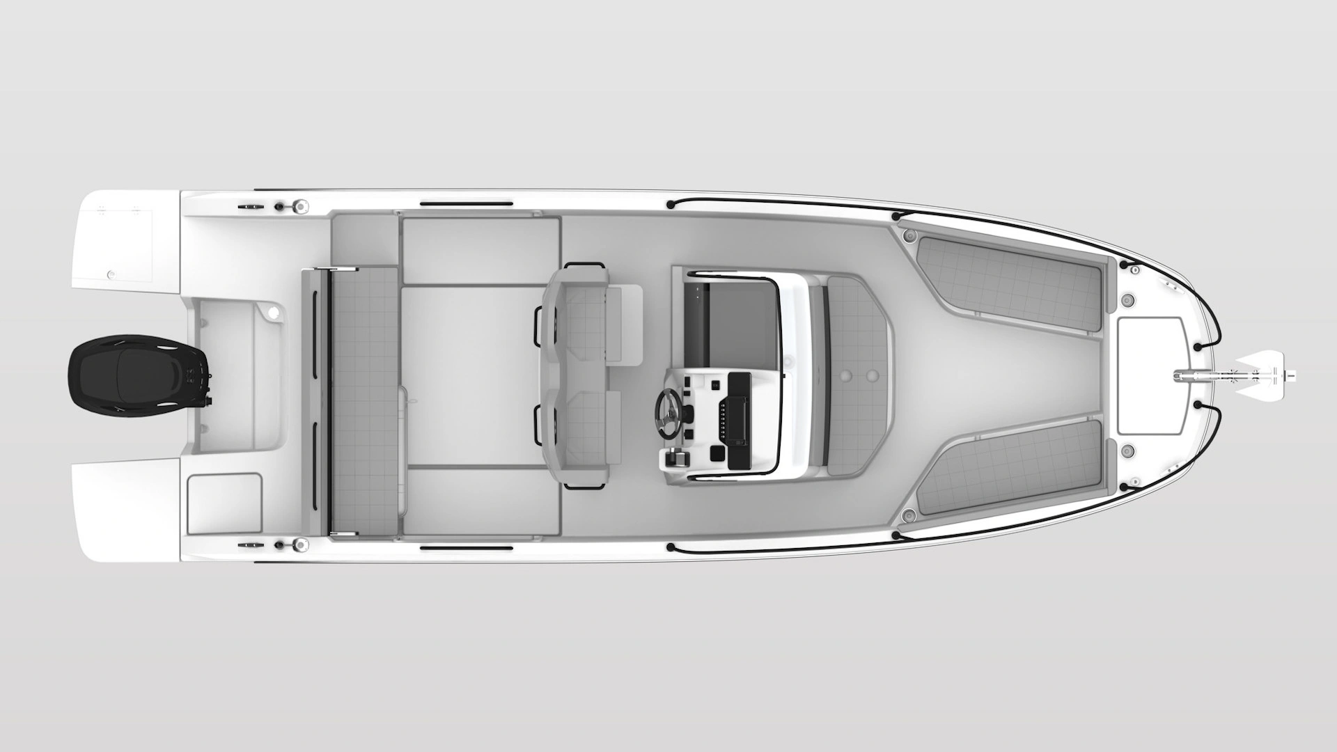 The style of the Flyer 8 SPACEdeck is boldly modern, with energetic lines, black pulpits and an optimized beam. Driving is sheer pleasure, with good sea-keeping performance, thanks to an Air Step 2-equipped hull. This Flyer boasts excellent modularity with a central console, modular cockpit and an aft bench that folds back to convert to a sun lounger. The woodwork and upholstery come in a choice of two colours and are of high-quality, as is the overall finish, showing true attention to detail.