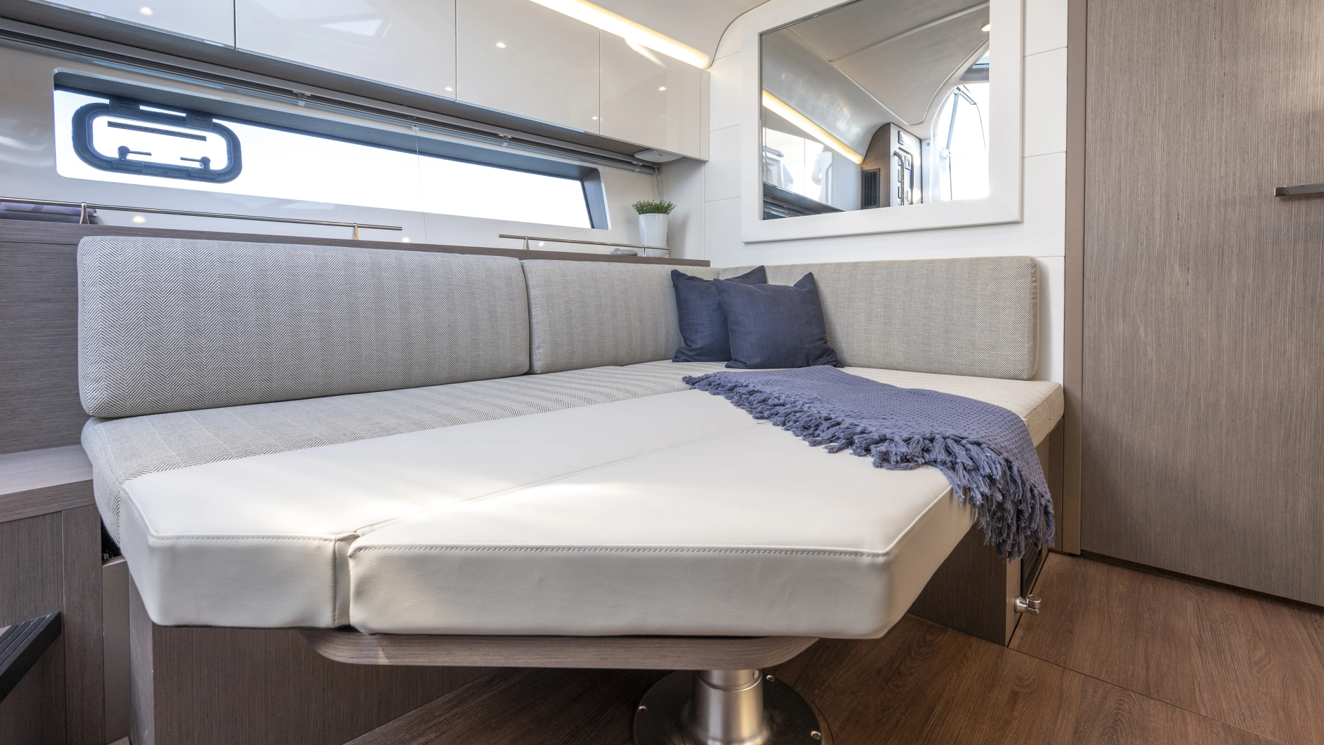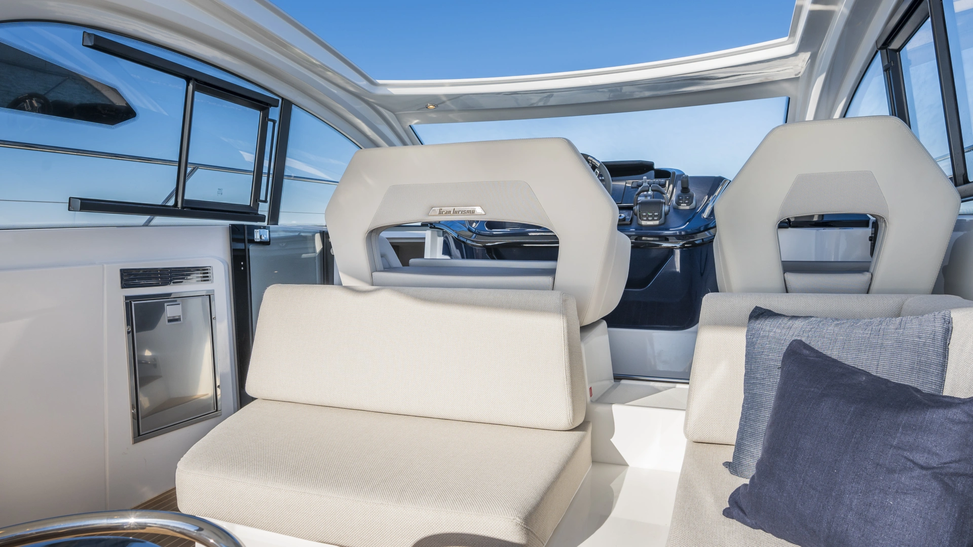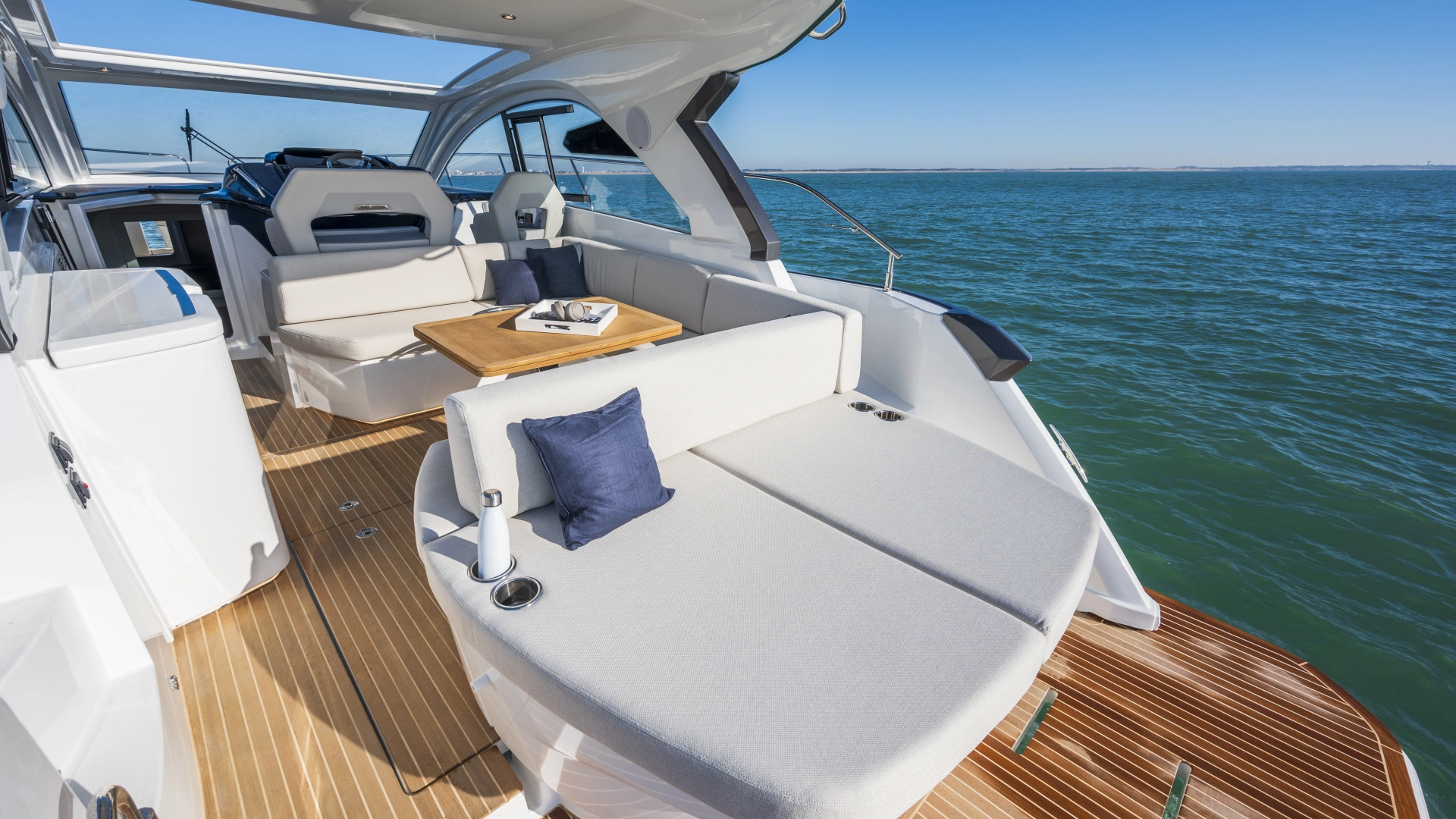 With her sporty hull and slender lines, the Gran Turismo 41 immediately conjures up speed and elegance. The Gran Turismo 41 is designed to win you over, but she is also created with guests in mind. Everything on board is devised to make life easier and more enjoyable: safe movement around the boat, a highly social U-shape saloon, a functional outdoor galley, and comfortable relaxation space.