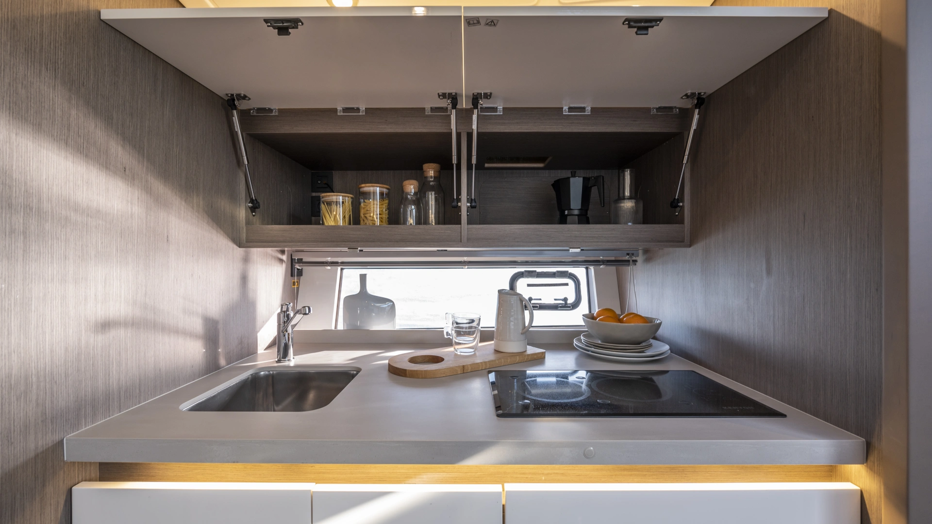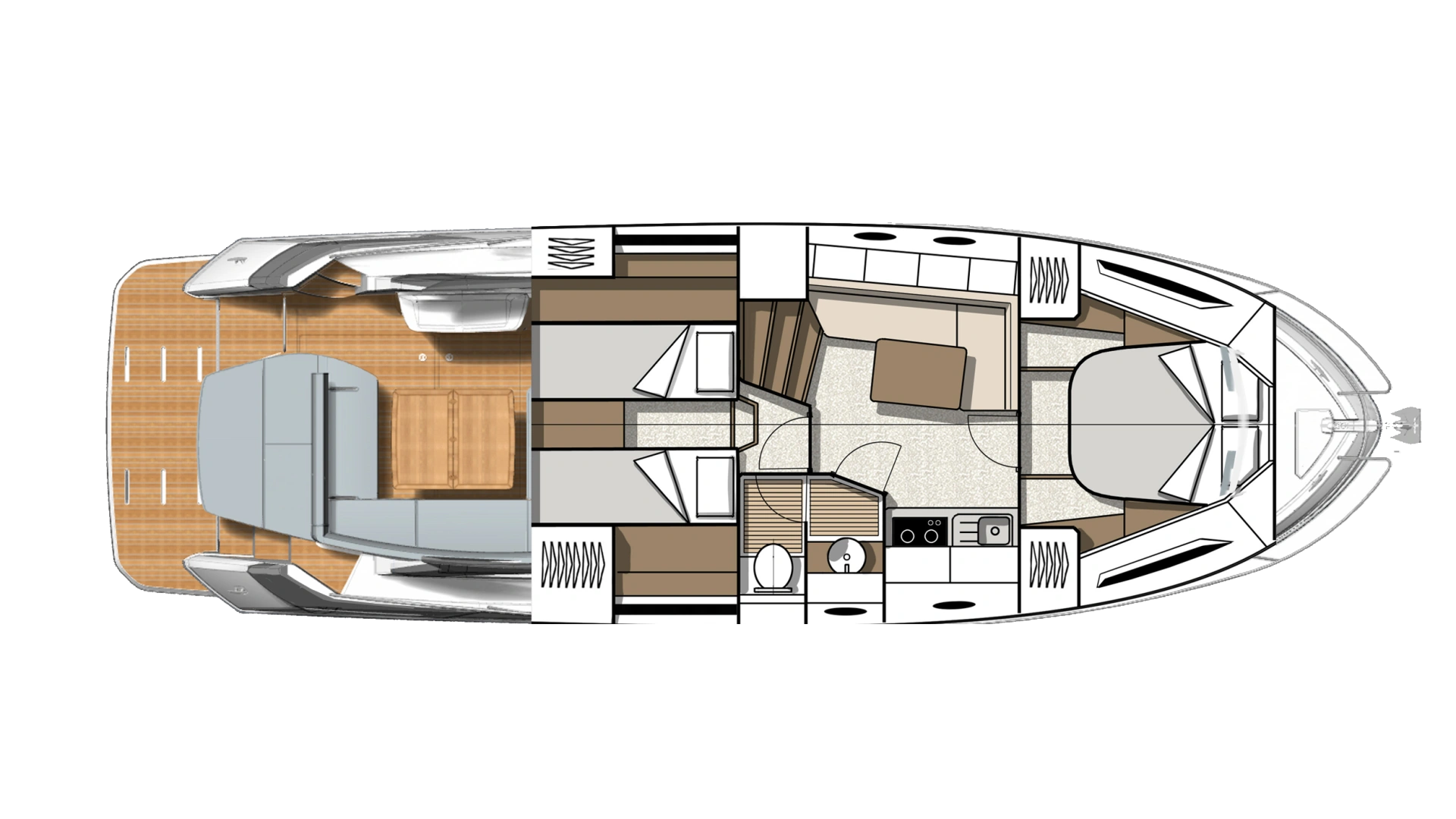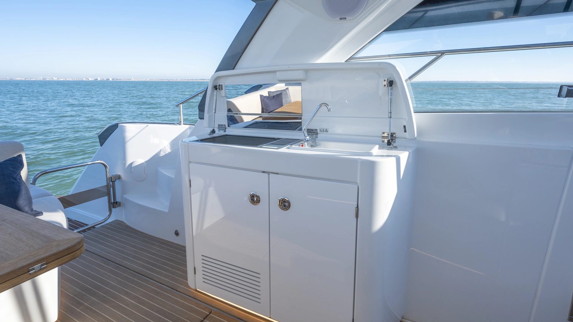 With her sporty hull and slender lines, the Gran Turismo 41 immediately conjures up speed and elegance. The Gran Turismo 41 is designed to win you over, but she is also created with guests in mind. Everything on board is devised to make life easier and more enjoyable: safe movement around the boat, a highly social U-shape saloon, a functional outdoor galley, and comfortable relaxation space.