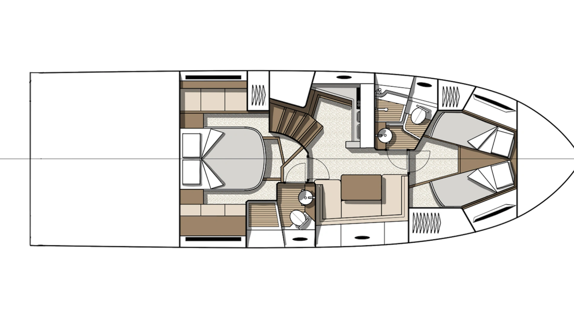 The saloon can be replaced by a 3rd cabin with bunk beds.