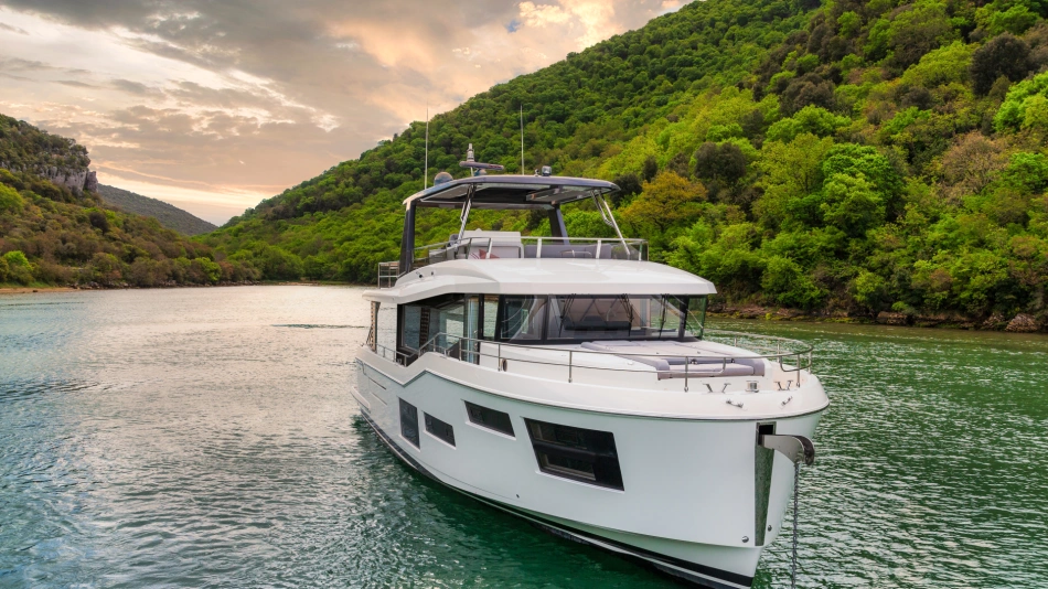 The BENETEAU Grand Trawler 63 is not just an evolution—it's the new vision in long-distance luxury cruising. Designed for those who seek serenity, precision, and performance, this yacht sets a new standard in elegant passage-making. Born from the legacy of the acclaimed Grand Trawler 62, the Grand Trawler 63 goes further—literally and figuratively—reimagining every detail for a more intuitive, quieter, and luxurious cruising experience.