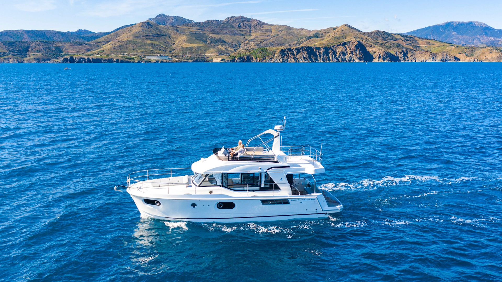 A generous passagemaker, the Swift Trawler 41 successfully renews the spirit and style of the trawler range. Ample living space, comfortable and practical, this new innovative 40-foot powerboat, available in both Fly and Sedan versions, has an on-board capacity of up to 7 passengers.
