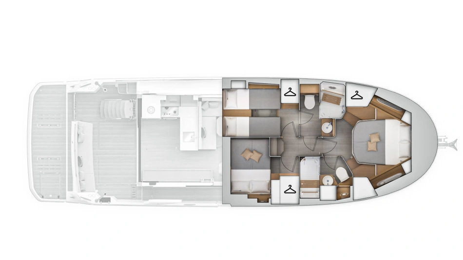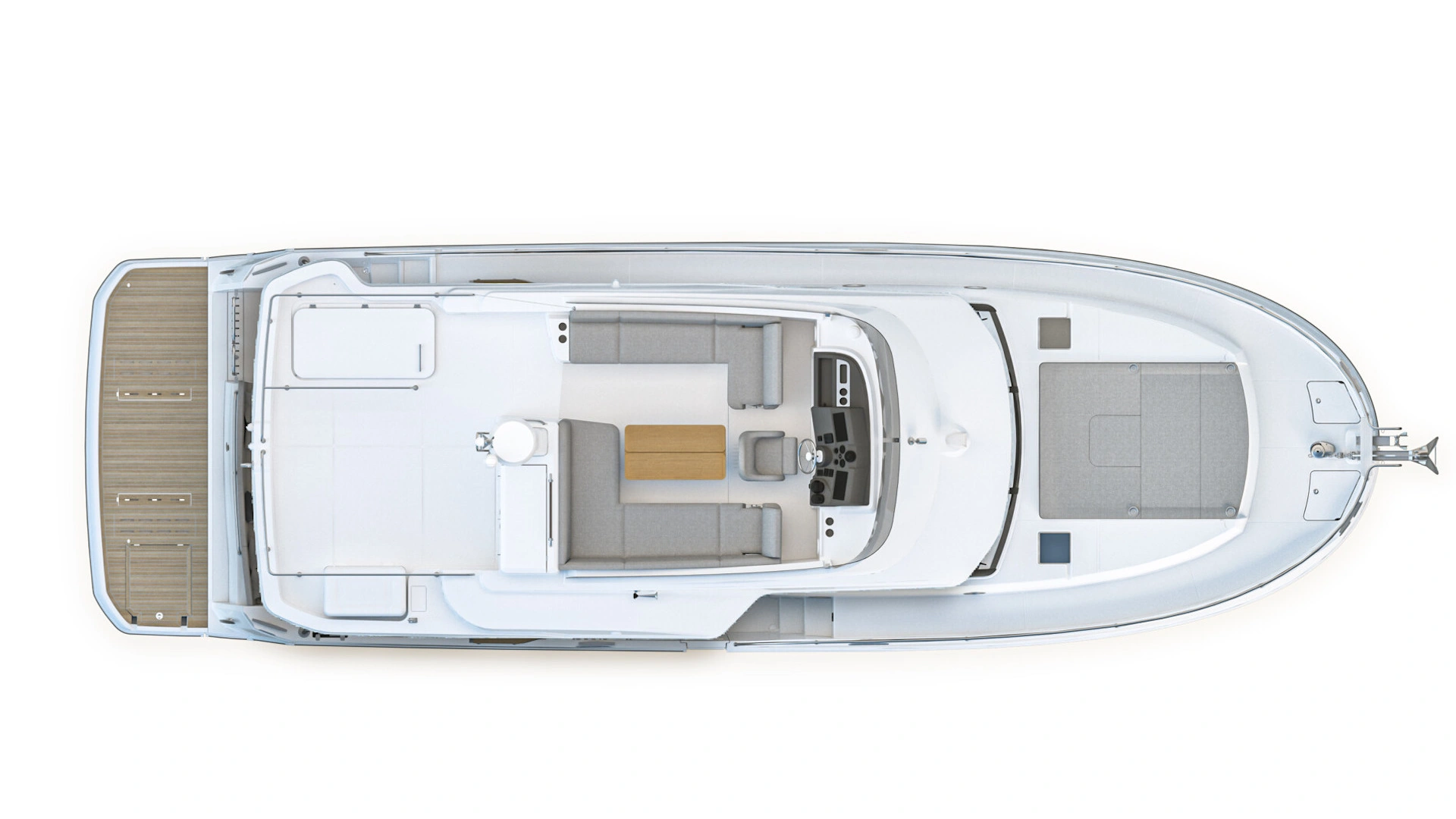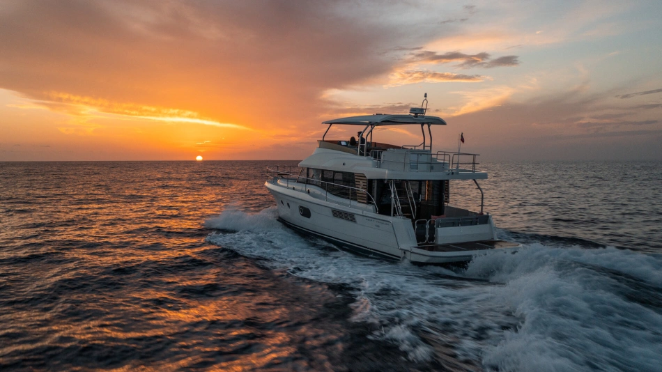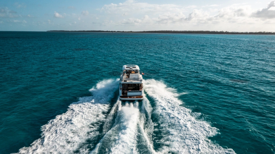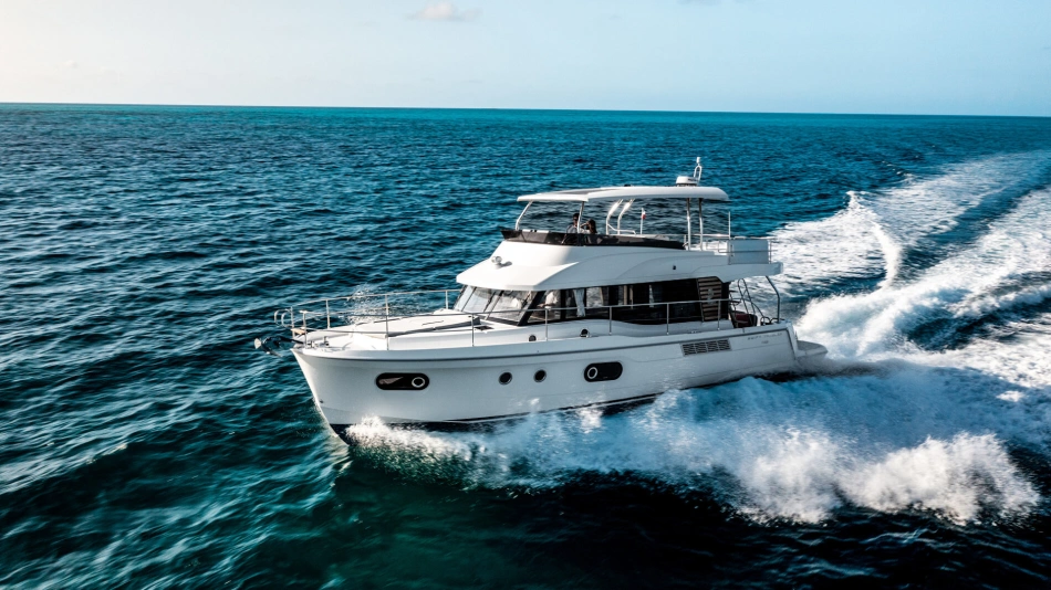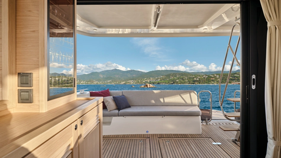 This mid-range boat has a strikingly stylish profile which features the new stainless framed teak slat fashion plates - aligned with those seen on the Grand Trawler 62
