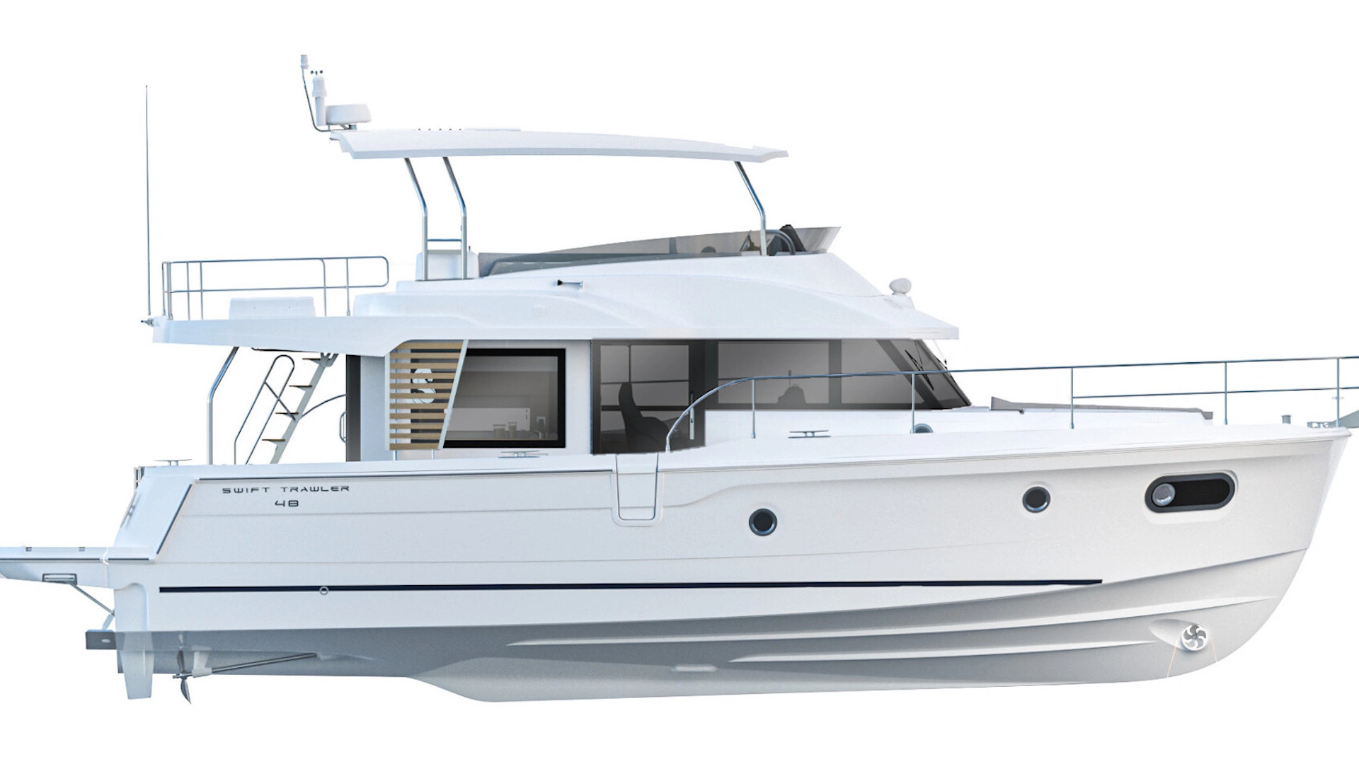 The new Swift Trawler 48 focuses on practical easy living and circulation and is built to seek new horizons.