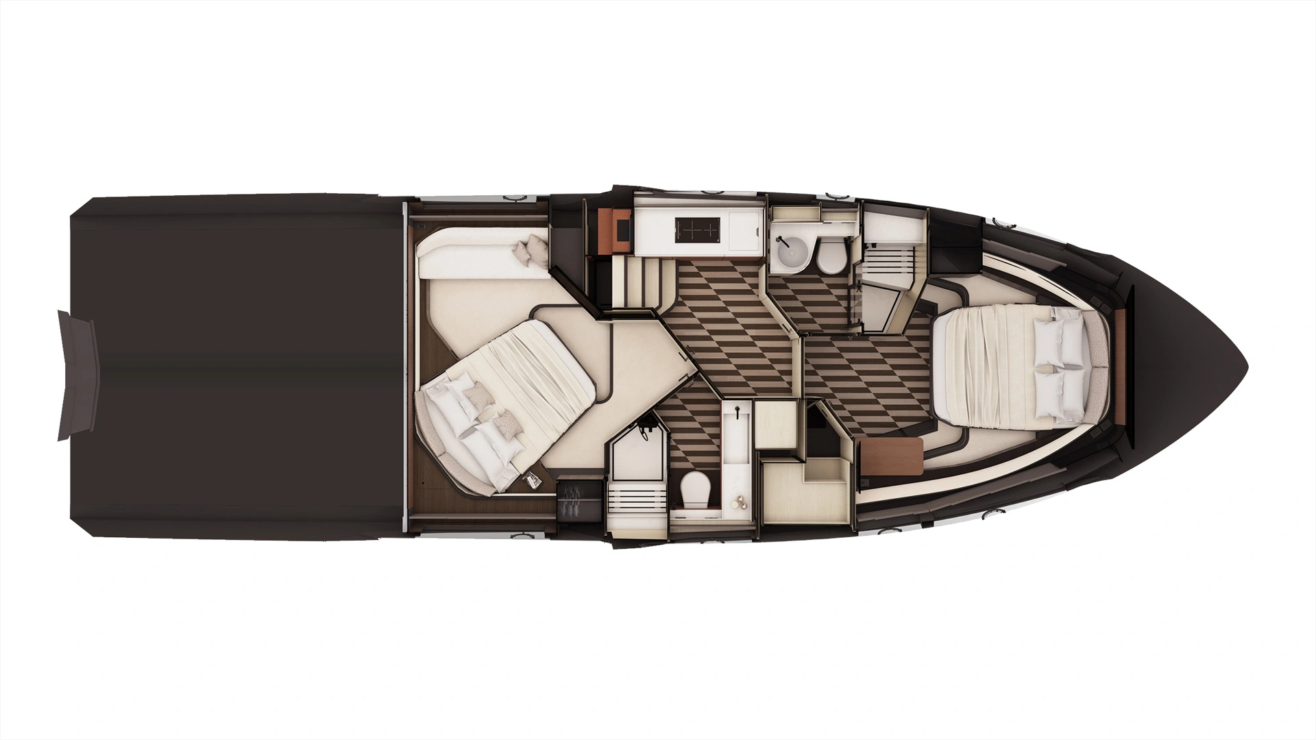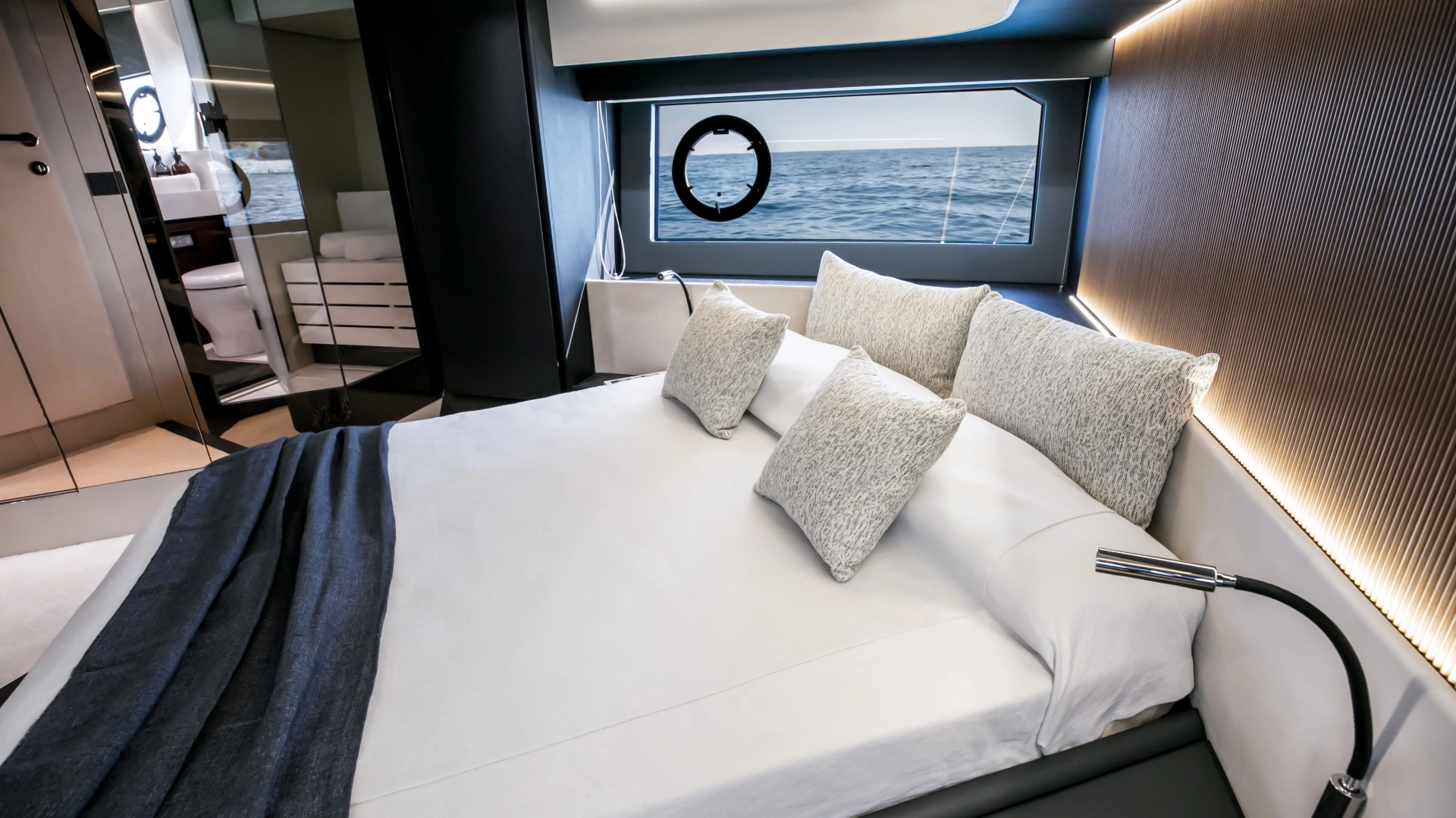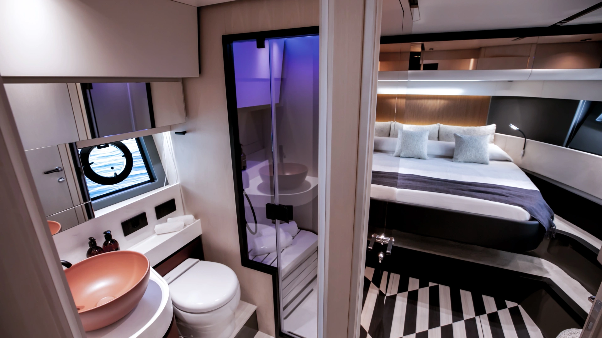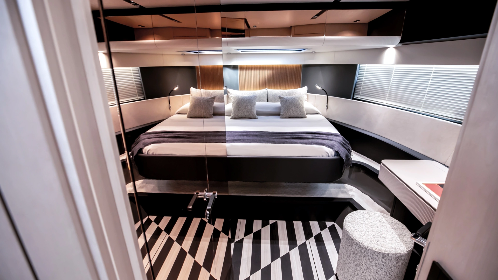 As soon as you step through the first threshold to go below deck, you are immediately immersed in the breathtaking atmosphere of the interior of FIM 500 Regina. Intricately patterned floors, a rich combination of materials and colors that captivate the eye and blend harmoniously, spacious interiors, and abundant natural light filtering in from the side windows and ceiling.