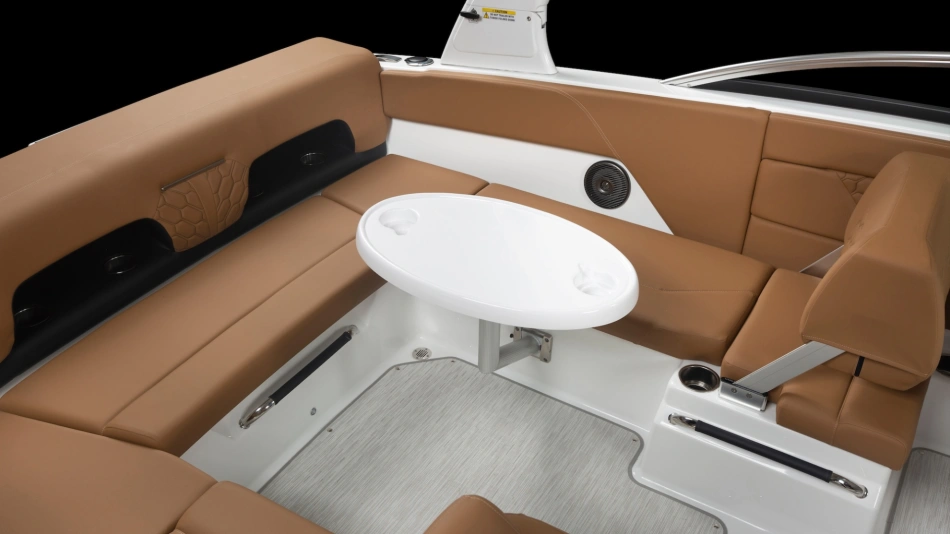 The H1-OB is poised to set the new standard in the 20-foot bowrider segment. Fine appointments, leather-wrapped grab handles, stainless cupholders, quilted stitching, all the details that raise the bar AND meet our expectations.