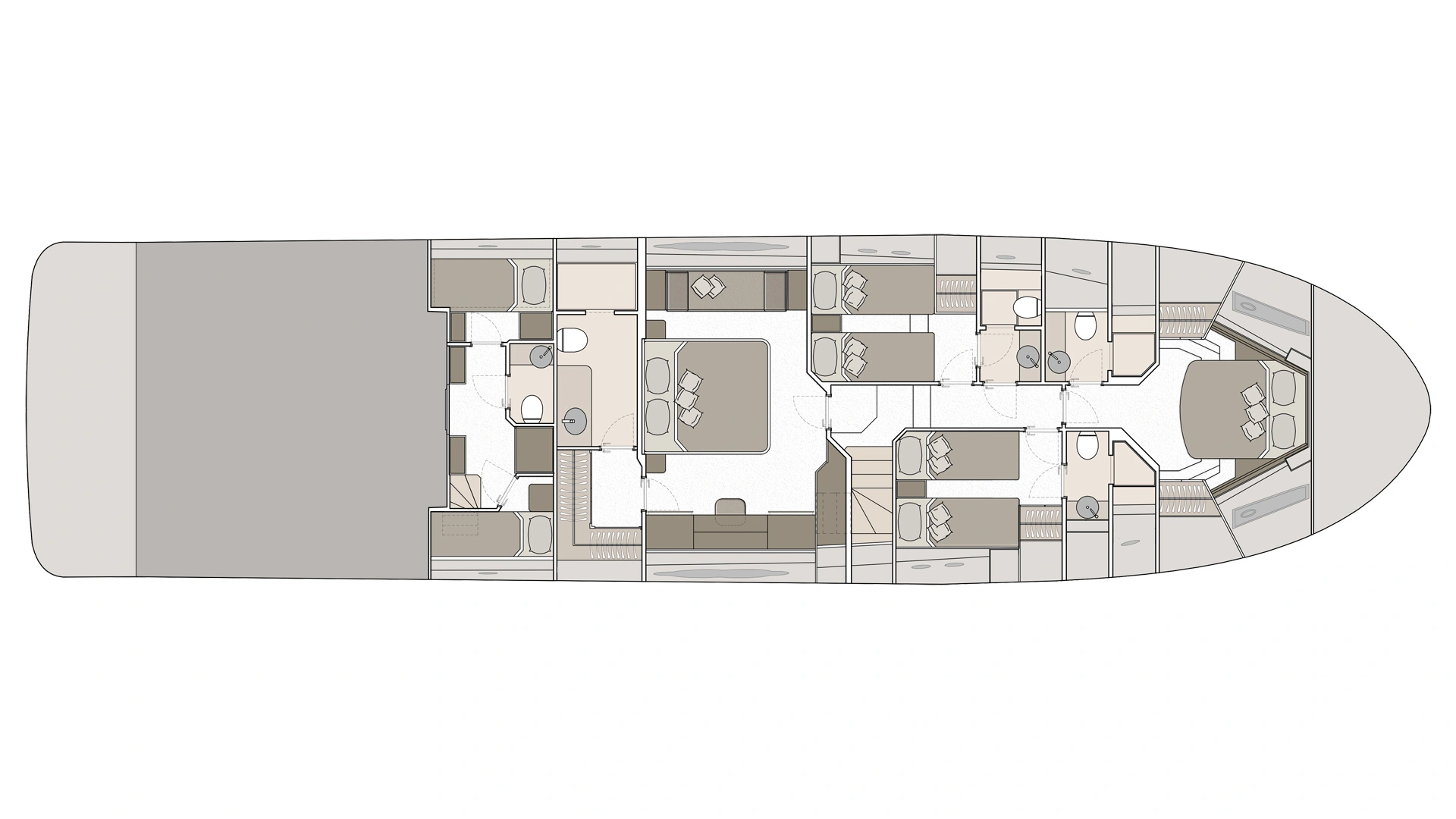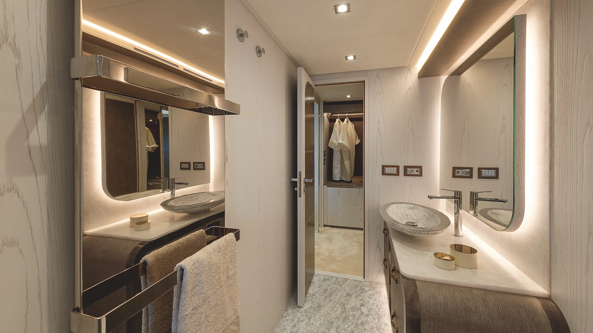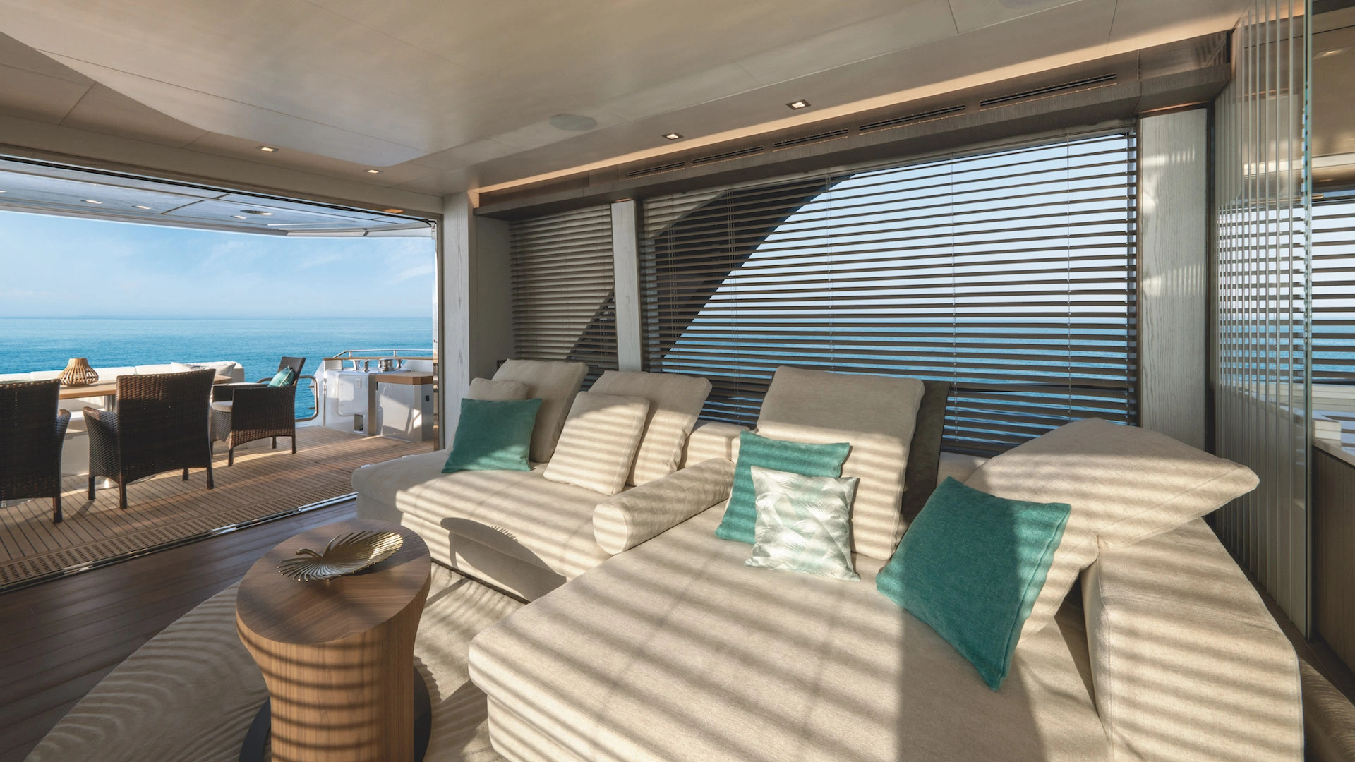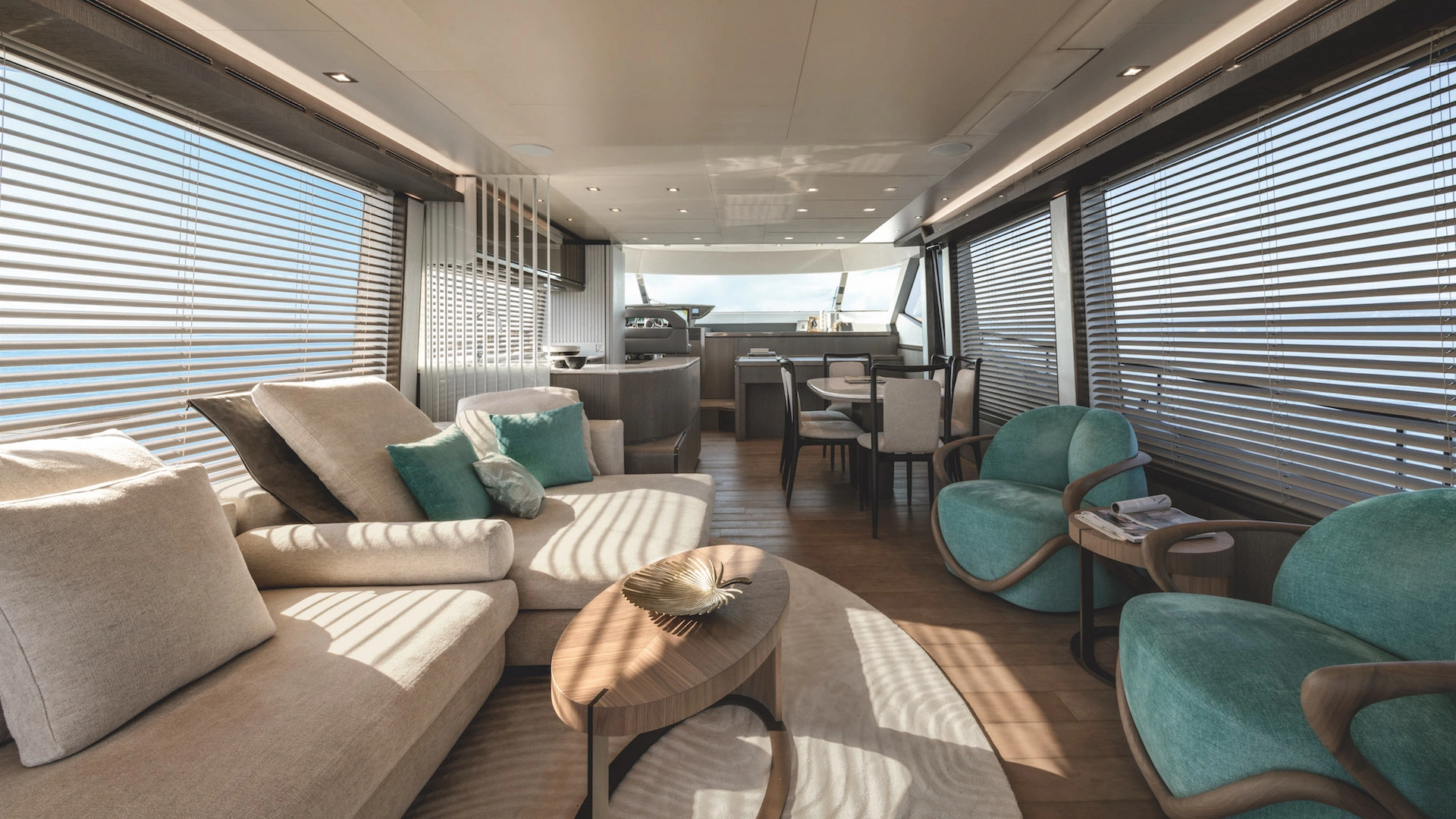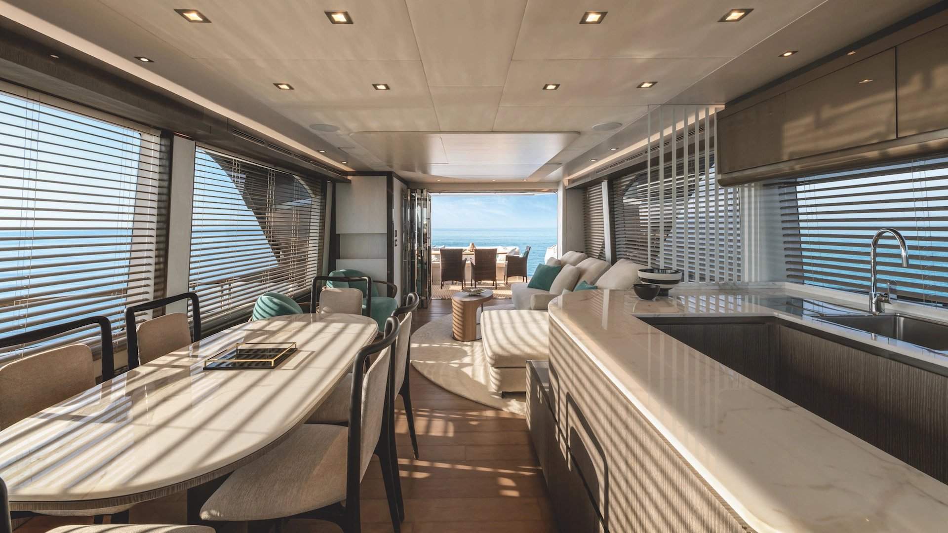 The new MCY 76 features larger than ever life interior spaces, enhanced exposure to natural light, and unprecedented custom layout configurations; for that his key words are increased privacy, extreme comfort, and personalization