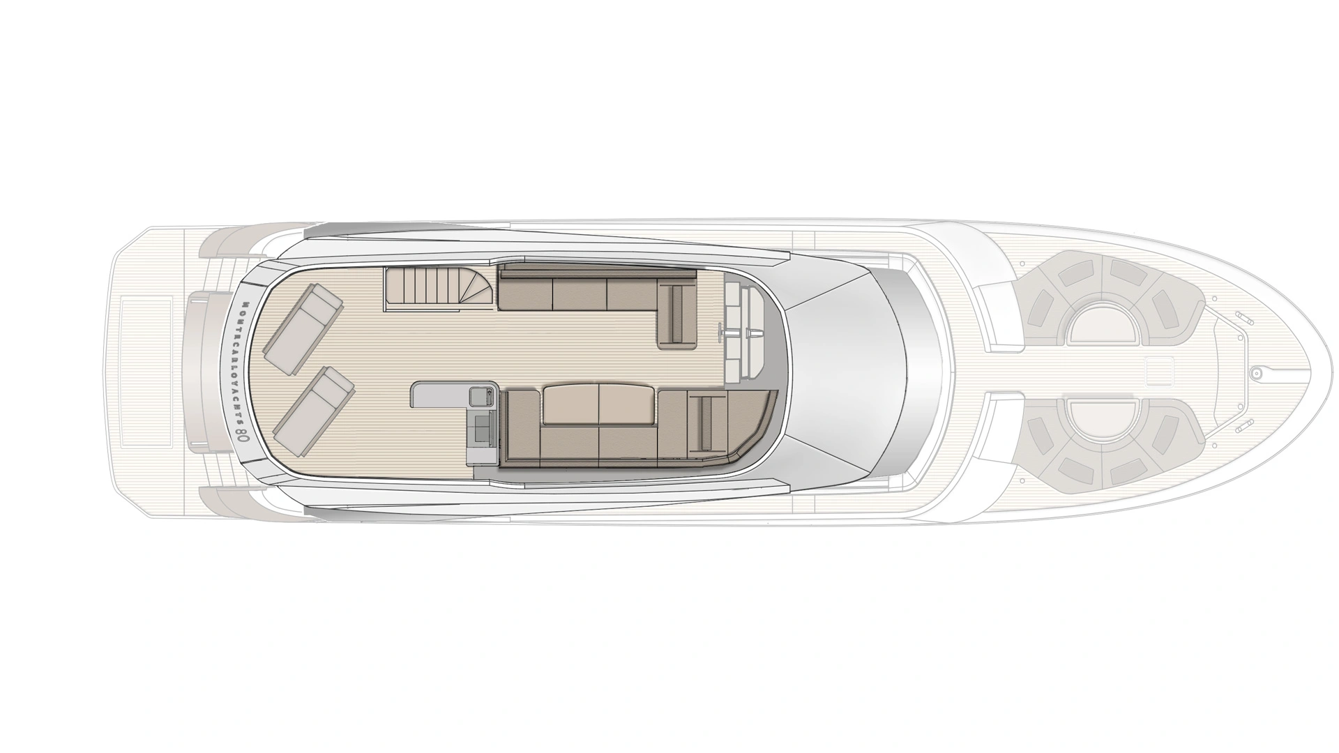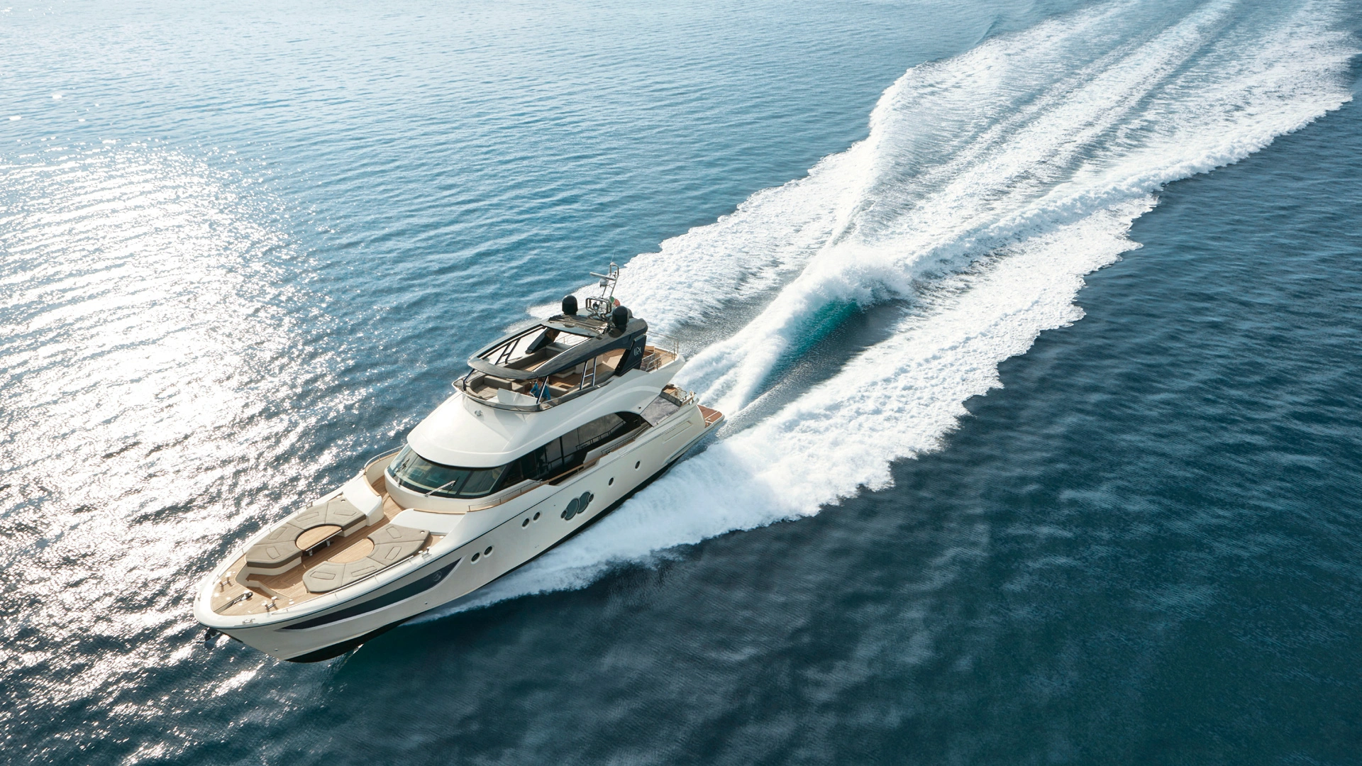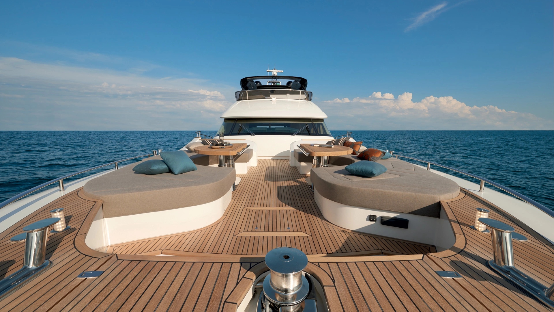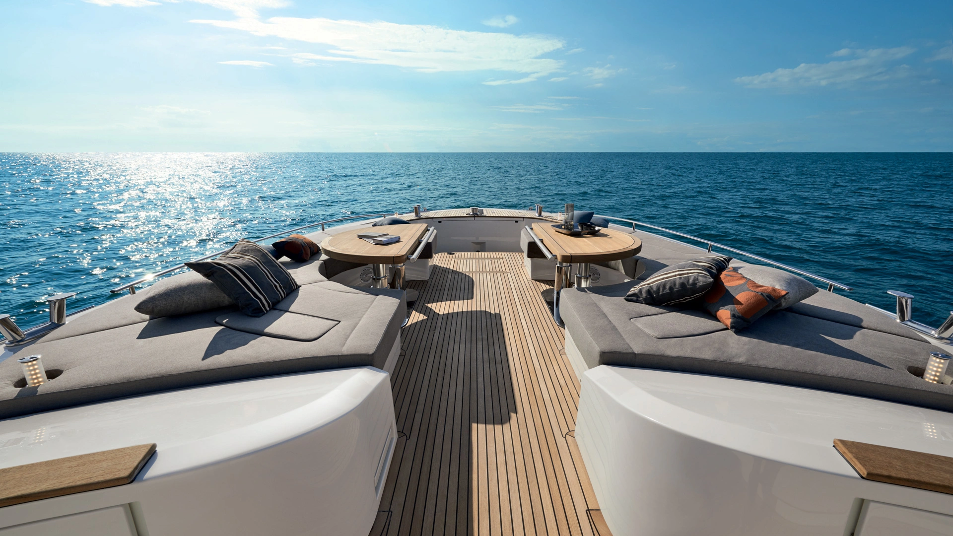 Agile and sleek, the MCY 80 was inspired by ideas of élan and finesse, which were translated into smooth exterior lines and shaped bulwarks that give it a curvy, modern look without being too sharp or minimalistic