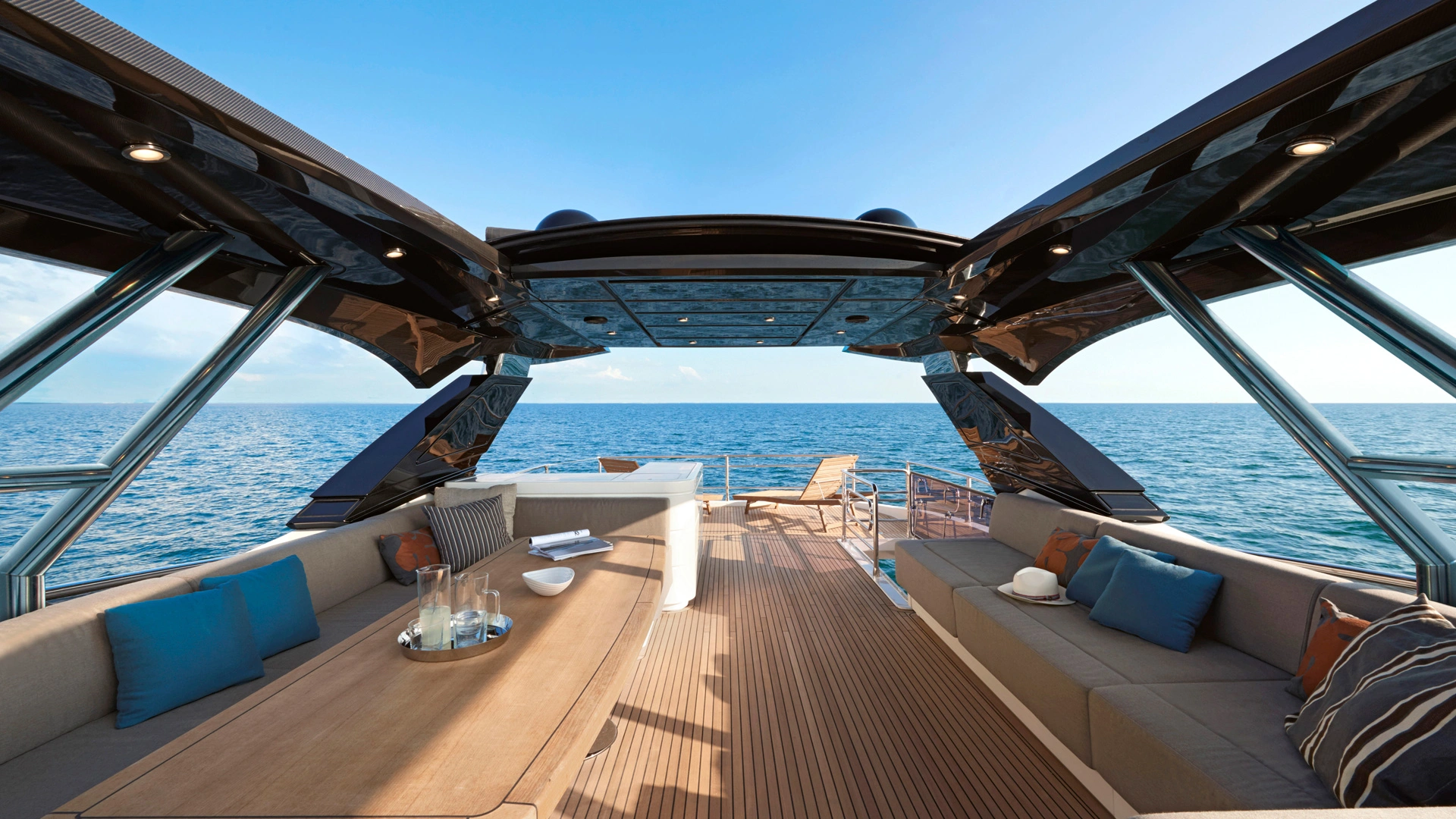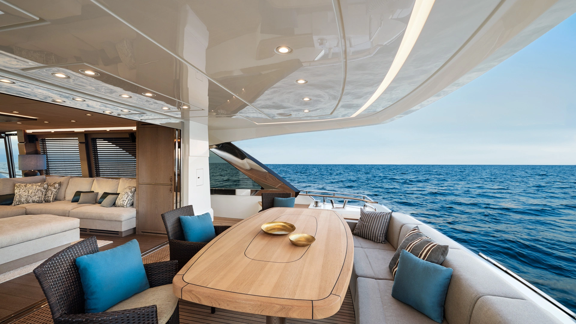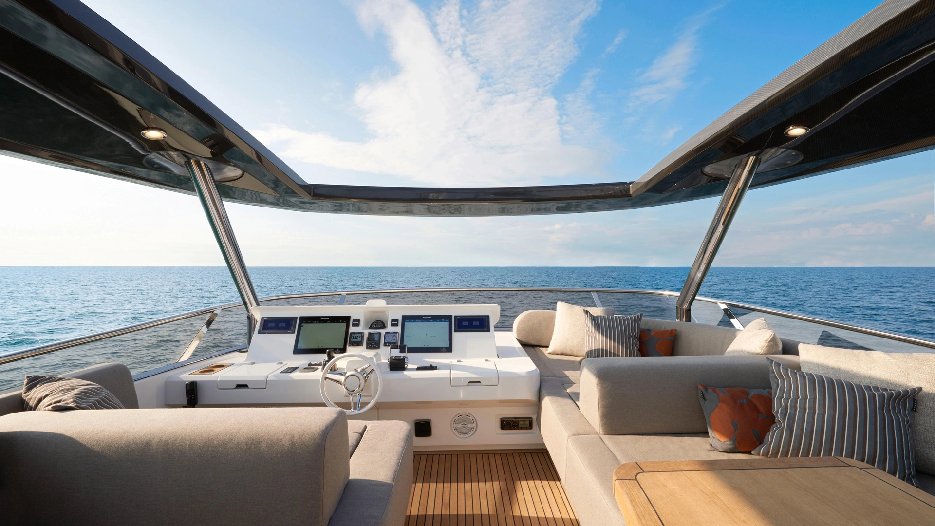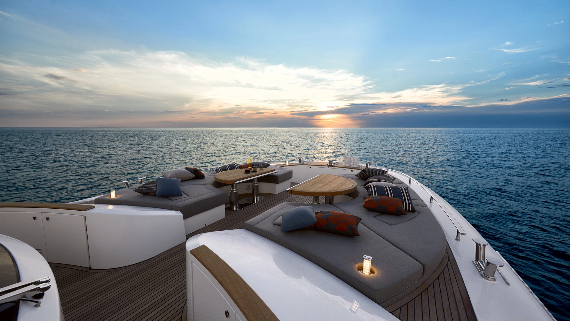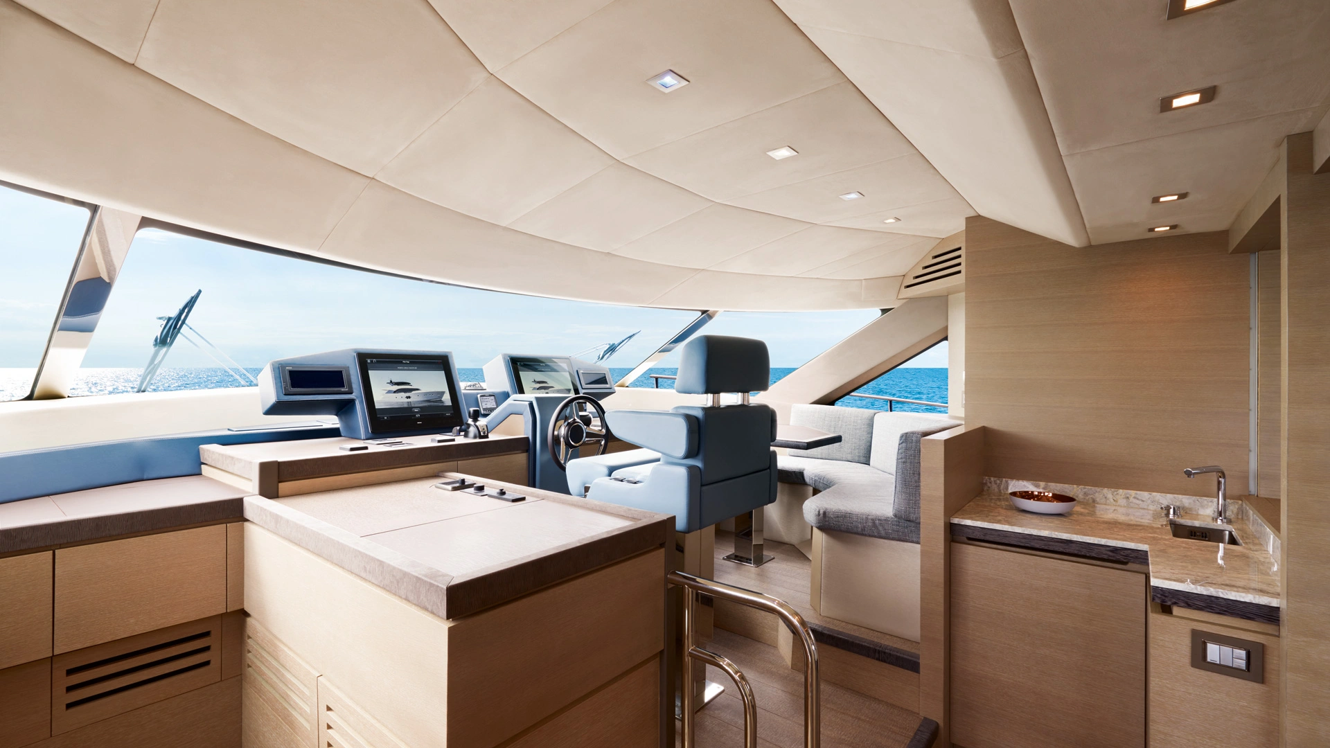 Agile and sleek, the MCY 80 was inspired by ideas of élan and finesse, which were translated into smooth exterior lines and shaped bulwarks that give it a curvy, modern look without being too sharp or minimalistic