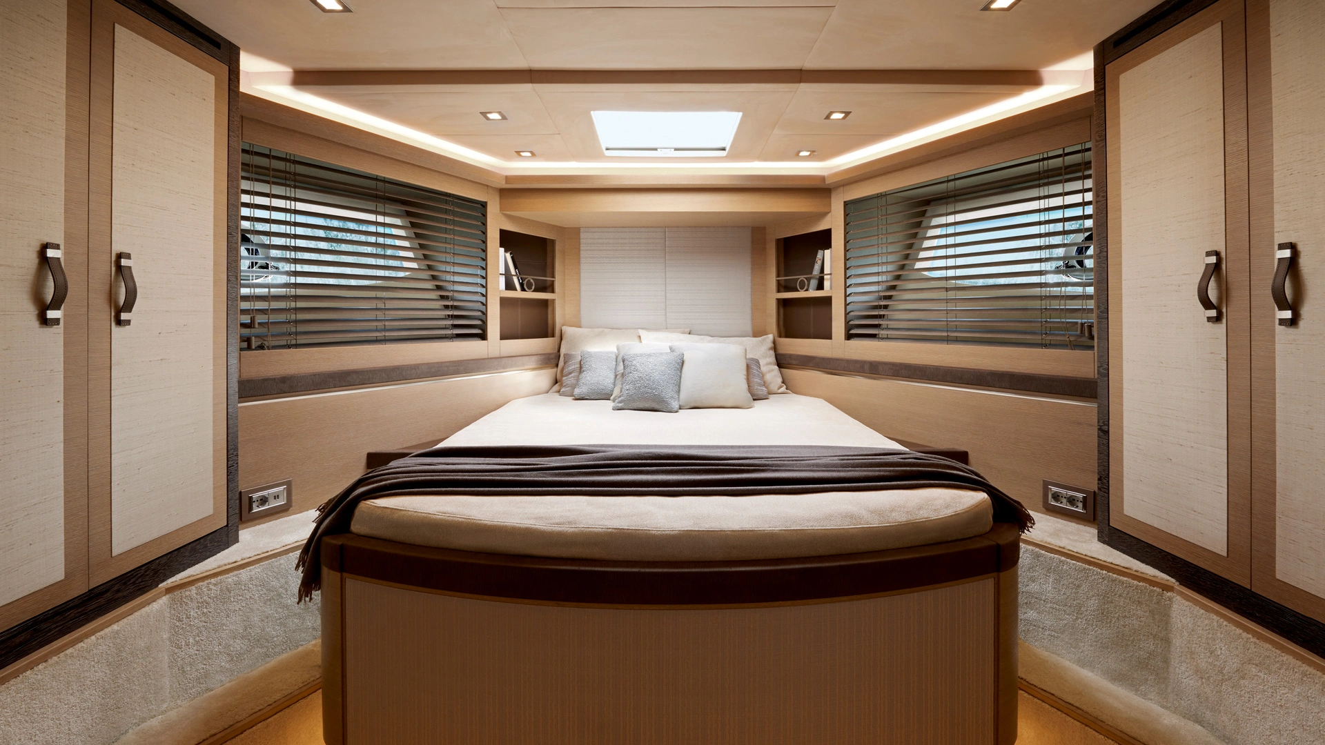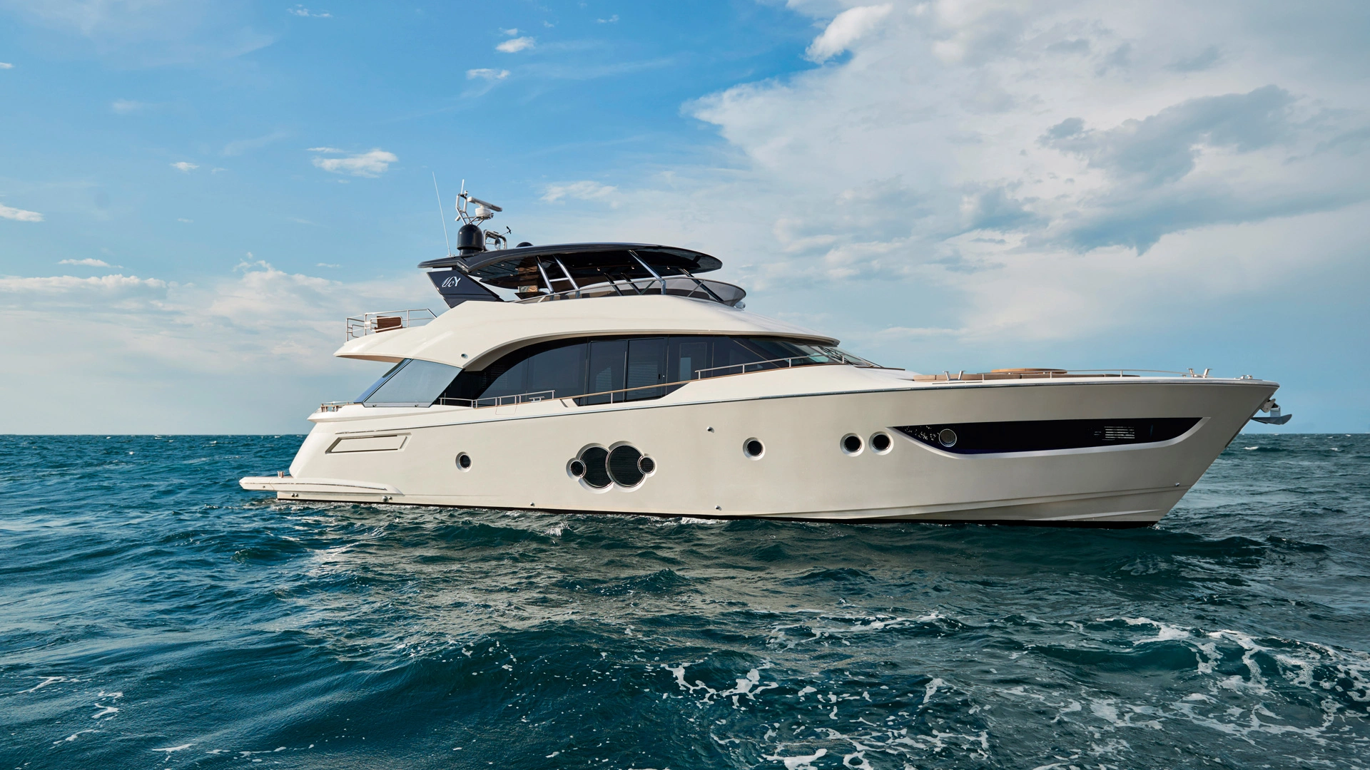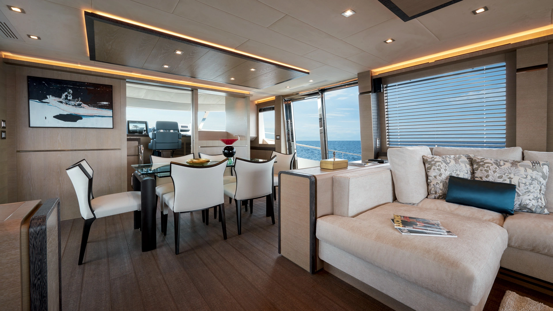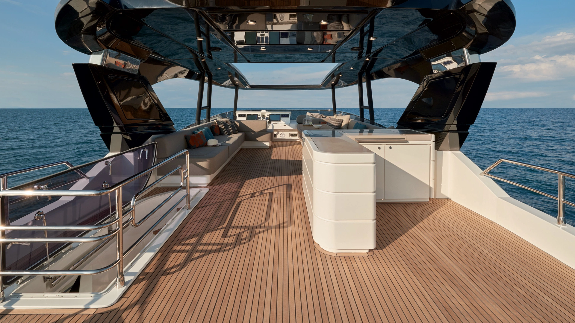 Agile and sleek, the MCY 80 was inspired by ideas of élan and finesse, which were translated into smooth exterior lines and shaped bulwarks that give it a curvy, modern look without being too sharp or minimalistic