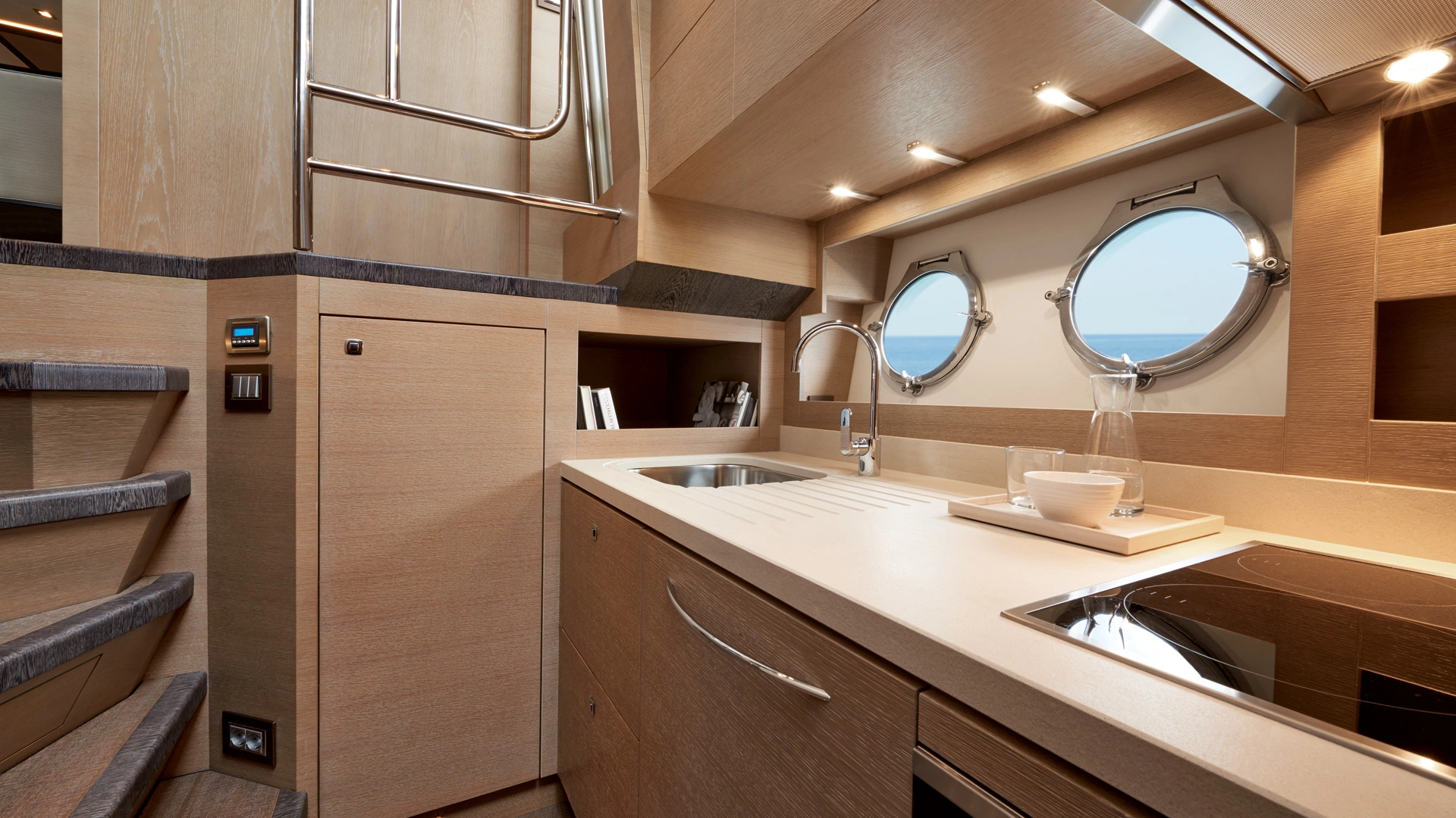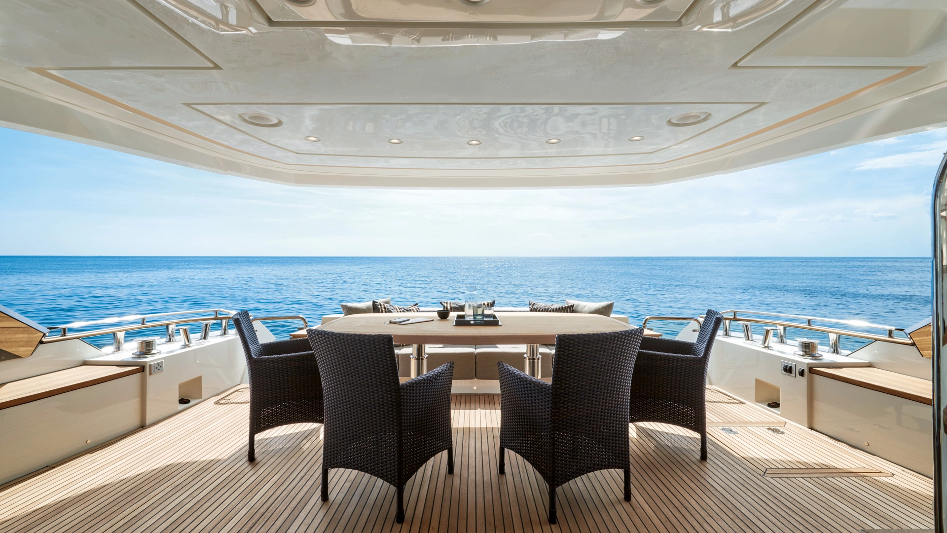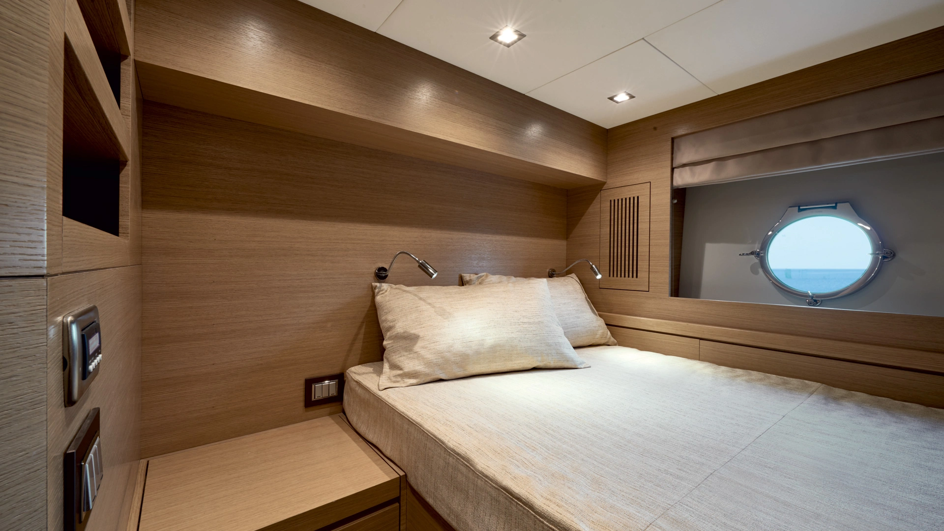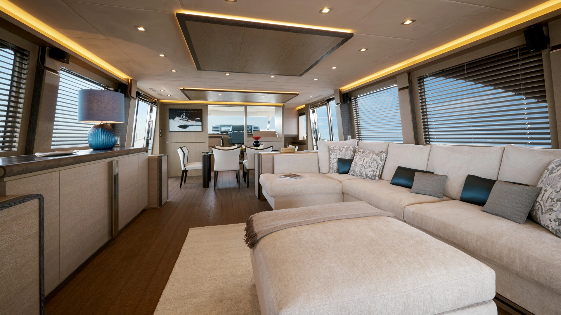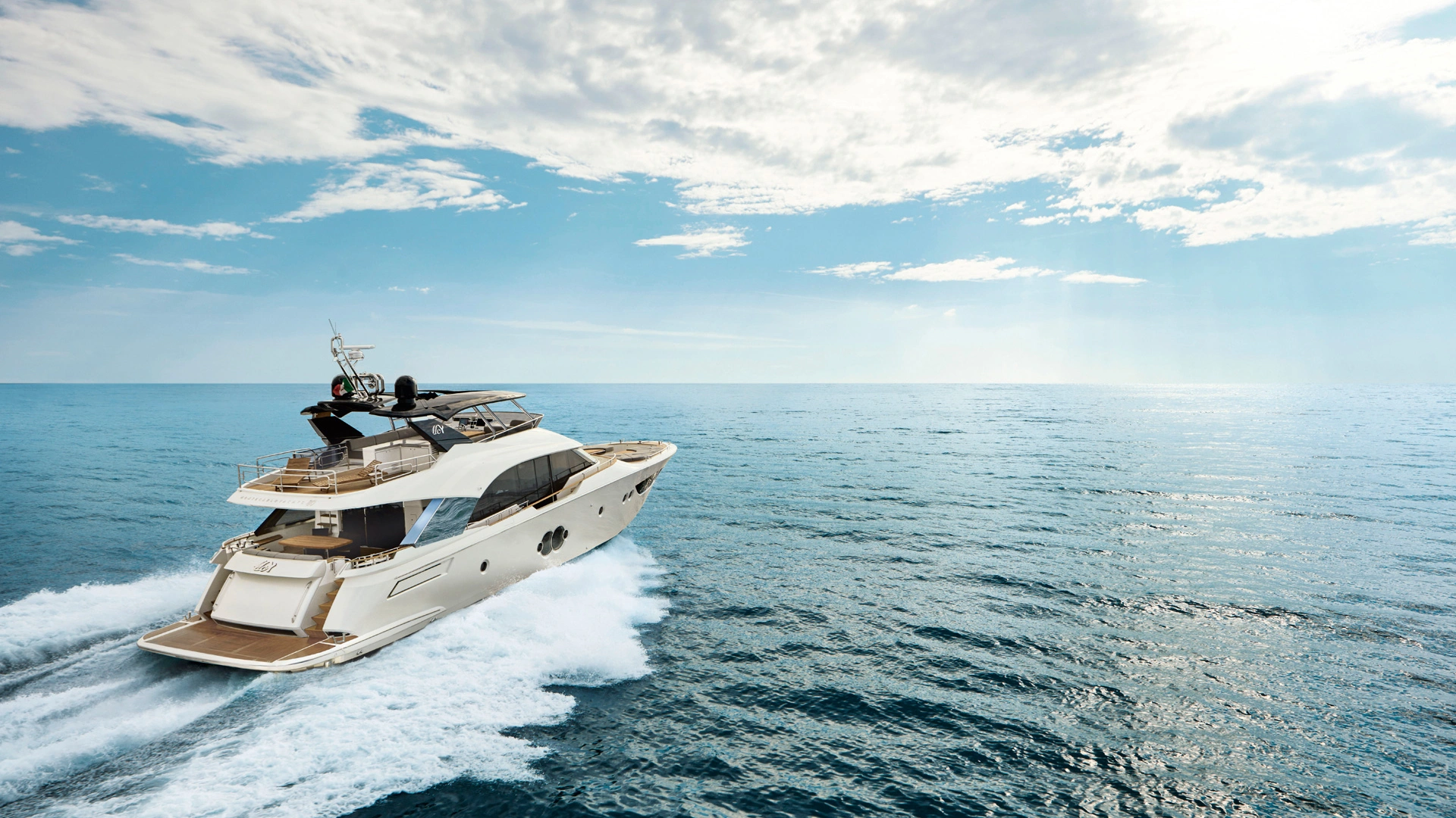 Agile and sleek, the MCY 80 was inspired by ideas of élan and finesse, which were translated into smooth exterior lines and shaped bulwarks that give it a curvy, modern look without being too sharp or minimalistic