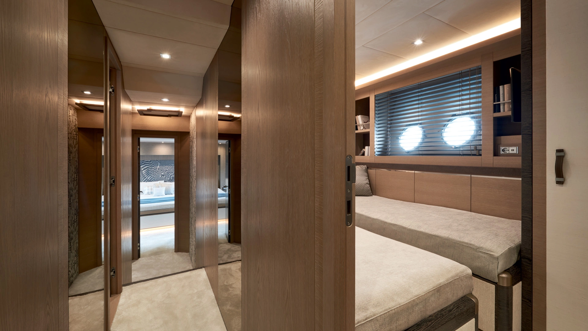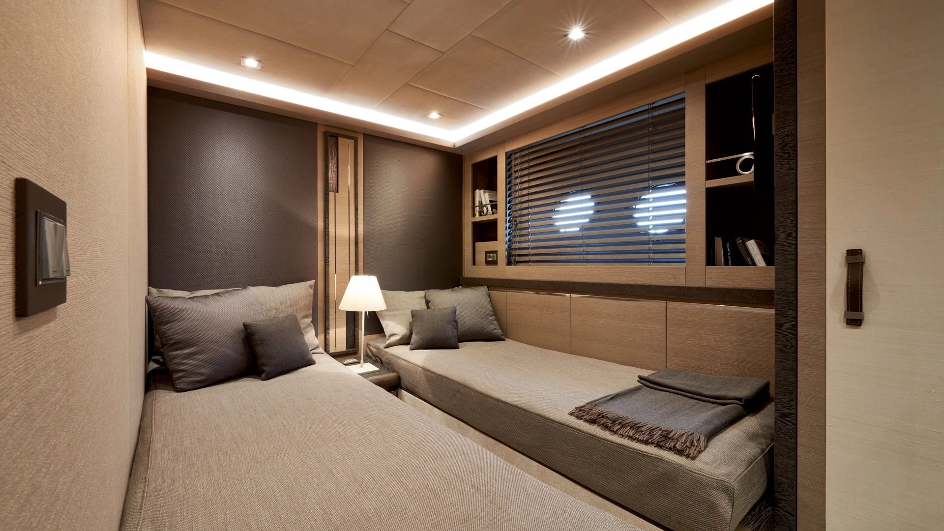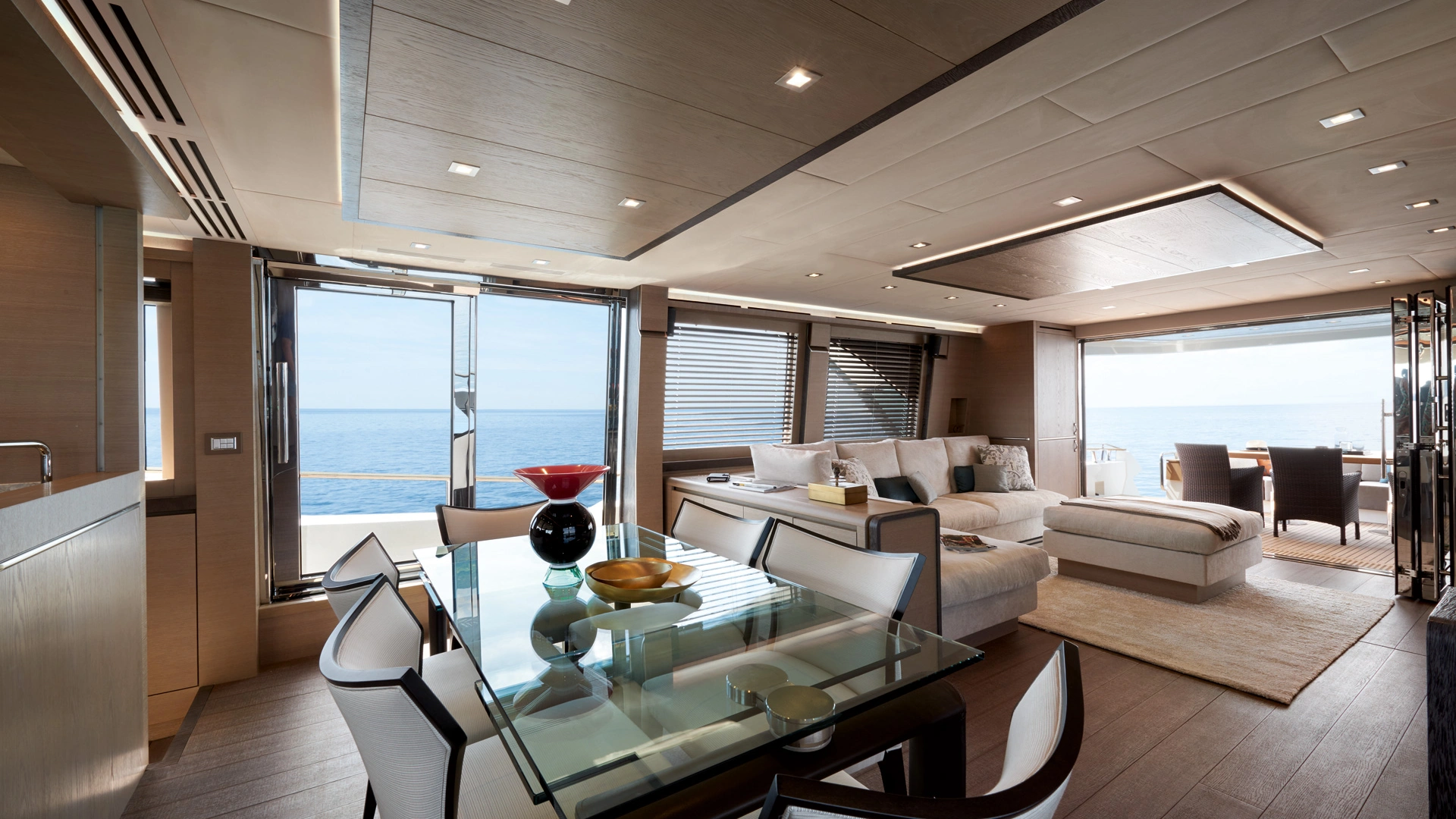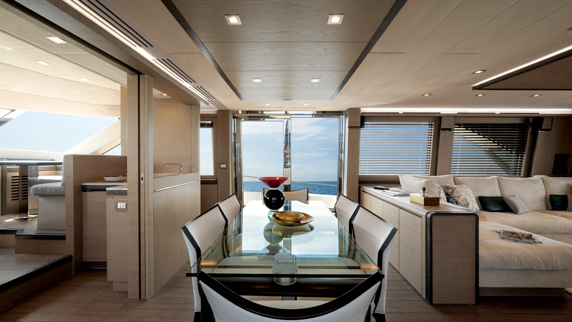Agile and sleek, the MCY 80 was inspired by ideas of élan and finesse, which were translated into smooth exterior lines and shaped bulwarks that give it a curvy, modern look without being too sharp or minimalistic