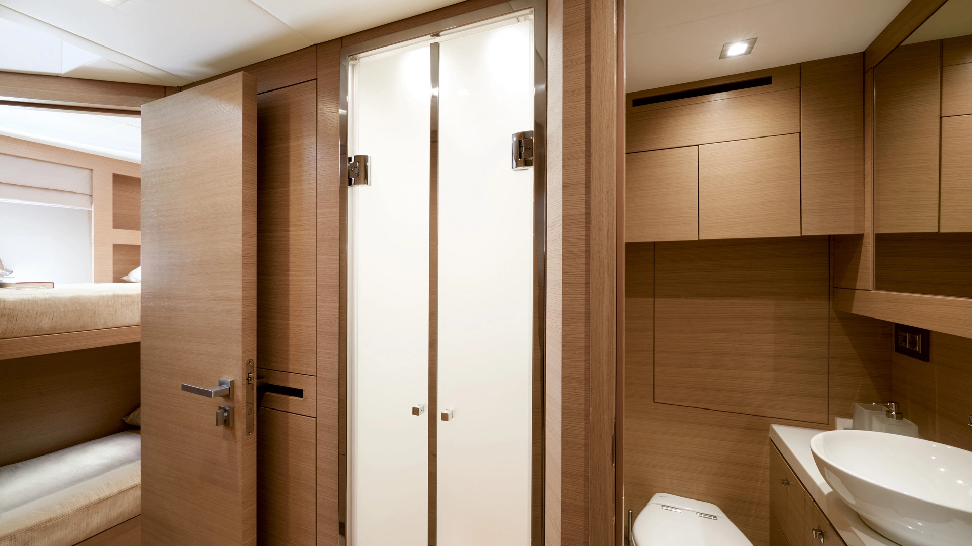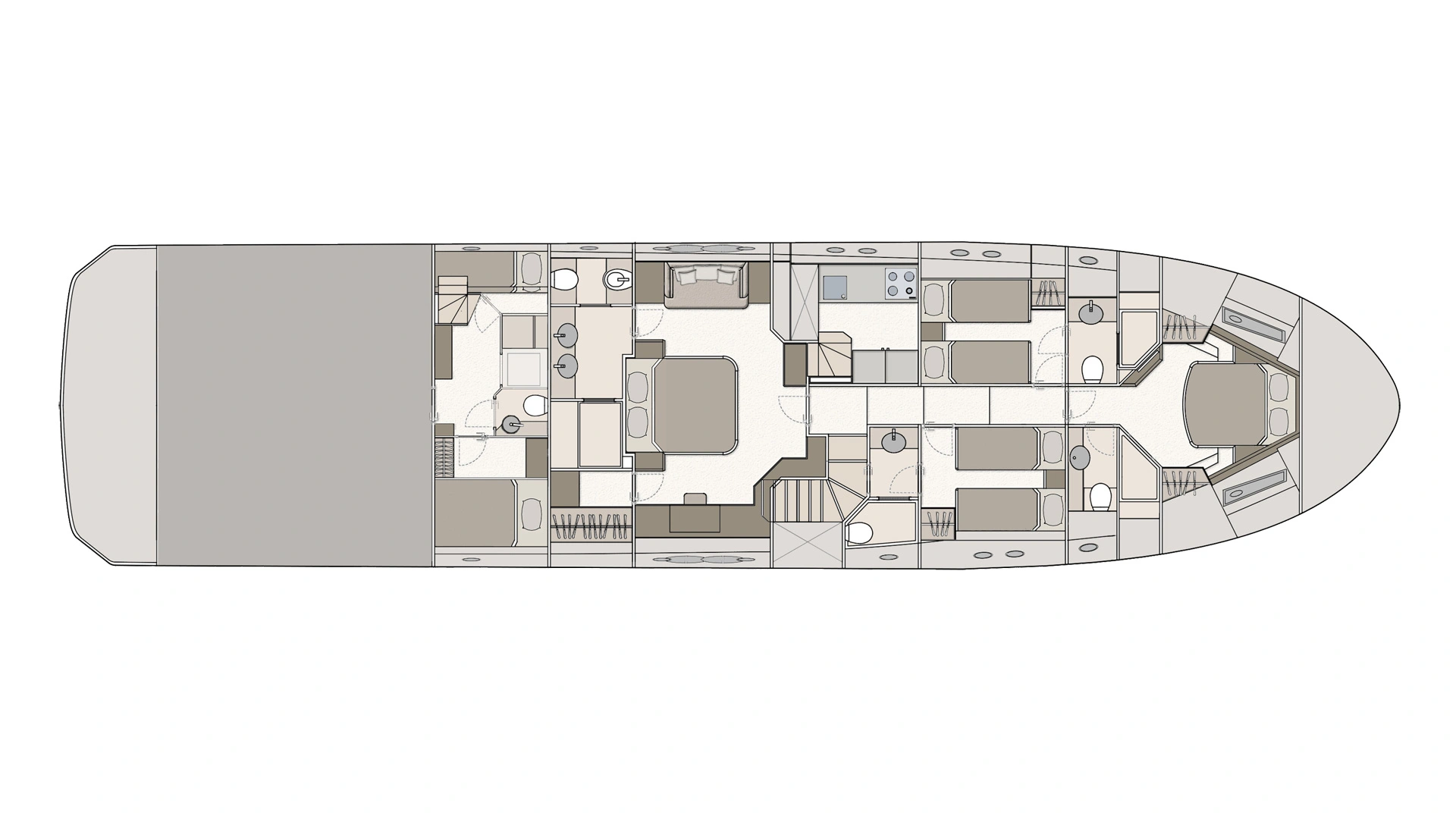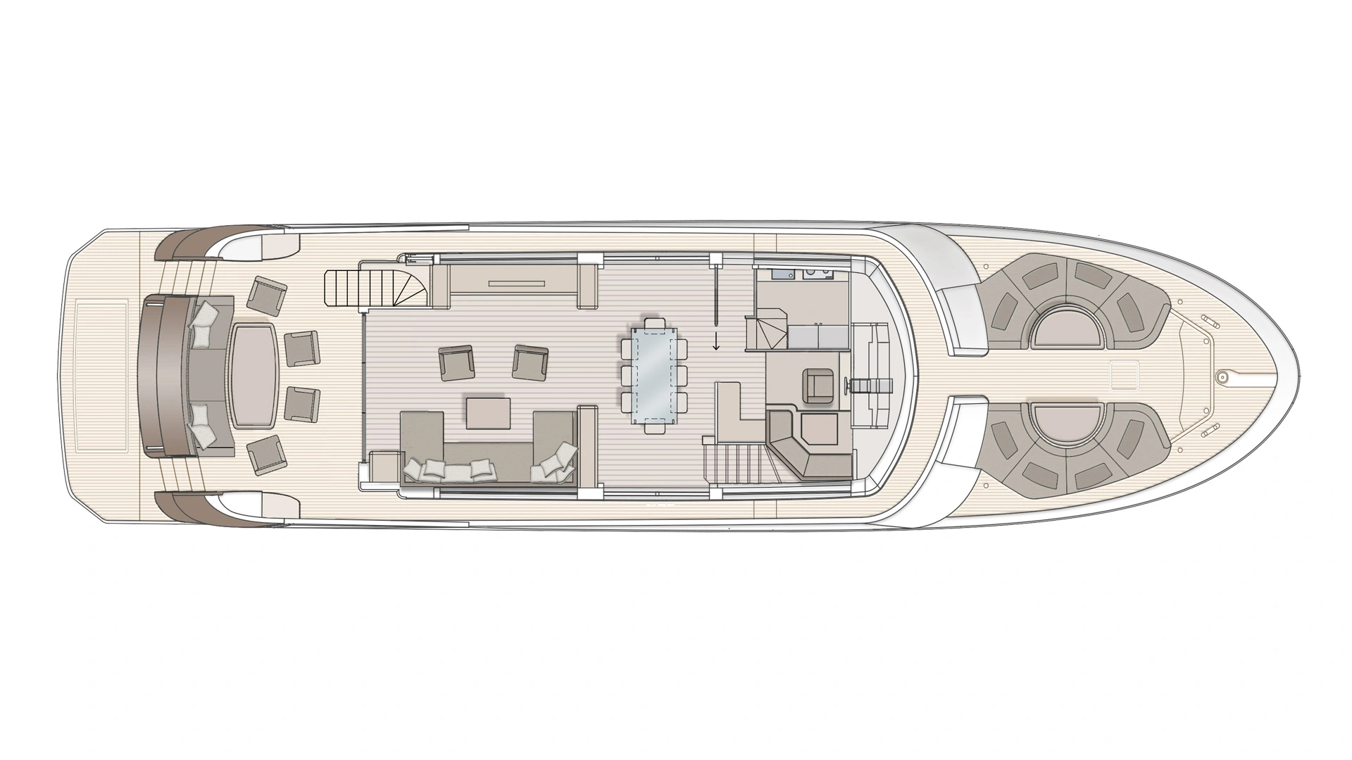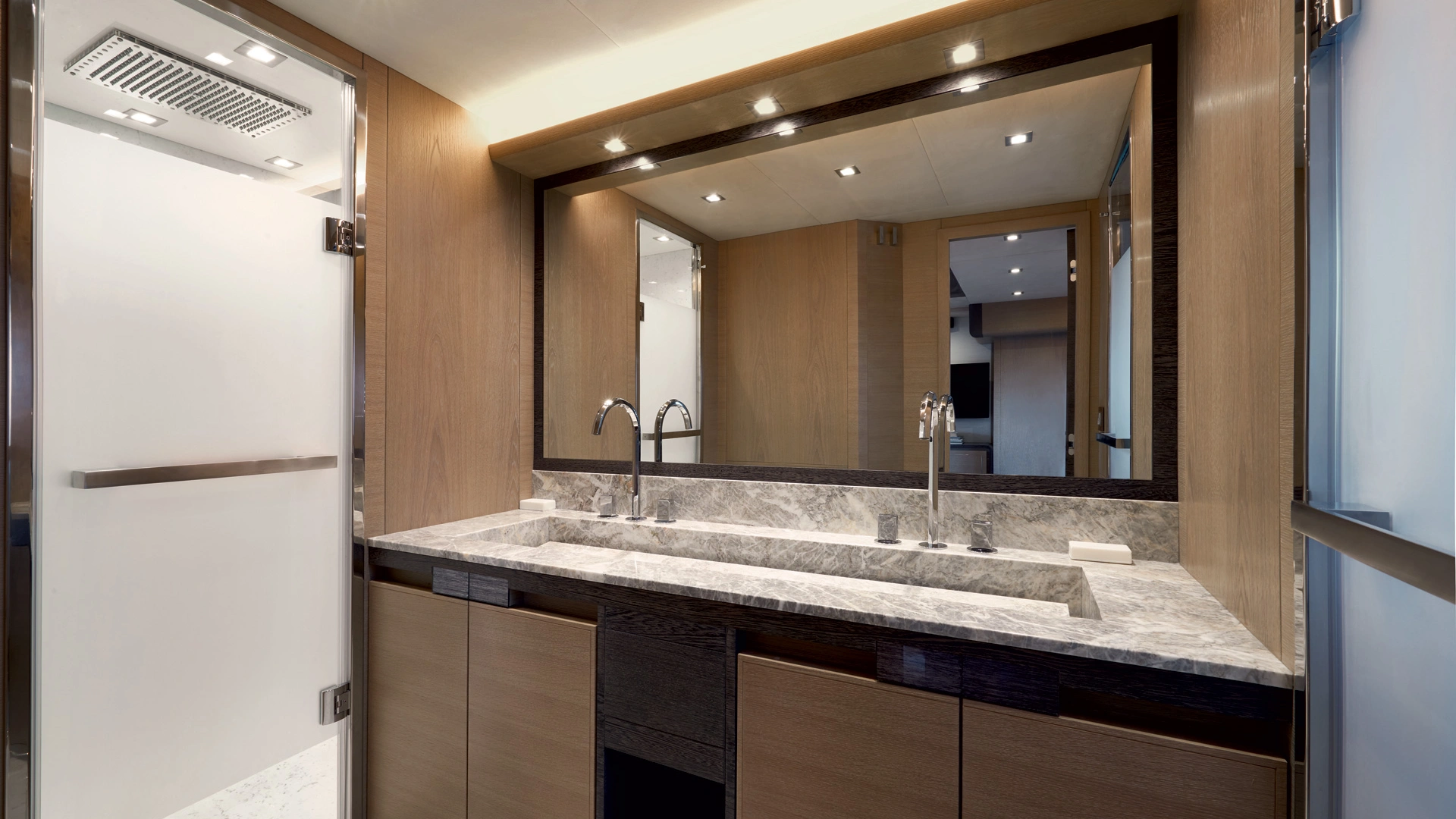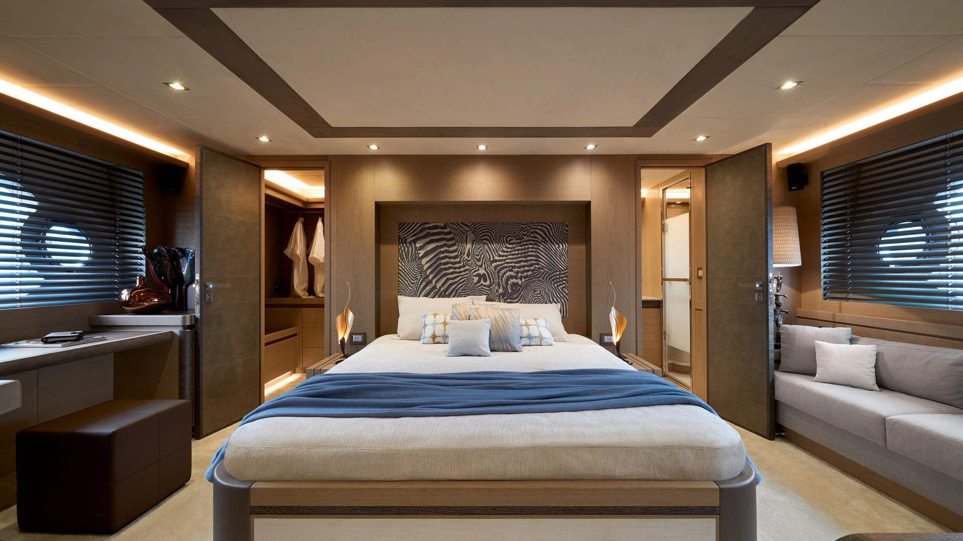 Agile and sleek, the MCY 80 was inspired by ideas of élan and finesse, which were translated into smooth exterior lines and shaped bulwarks that give it a curvy, modern look without being too sharp or minimalistic