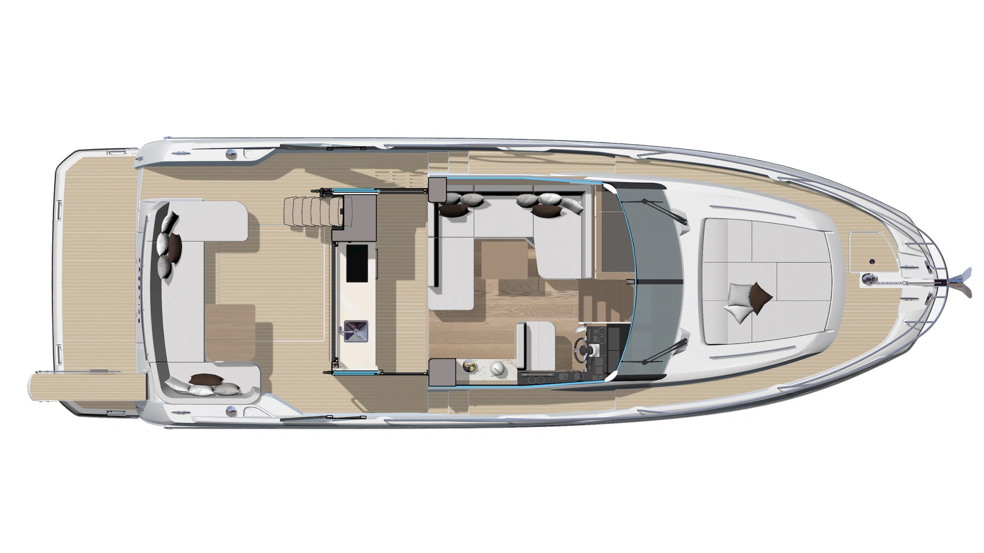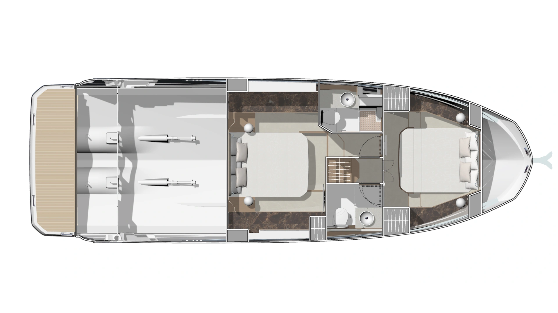 Shaped by bold decisions, this 43-foot model welcomes you aboard with the elegance and refinement distinctive of the new generation of the F-Line.