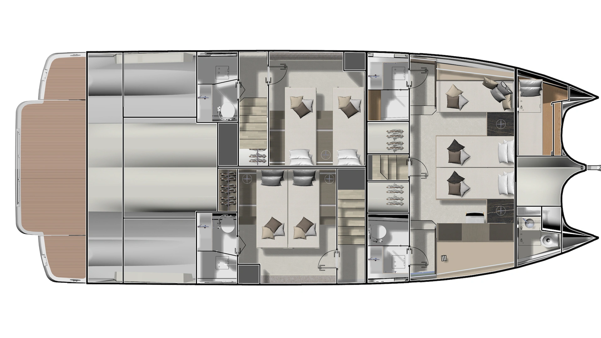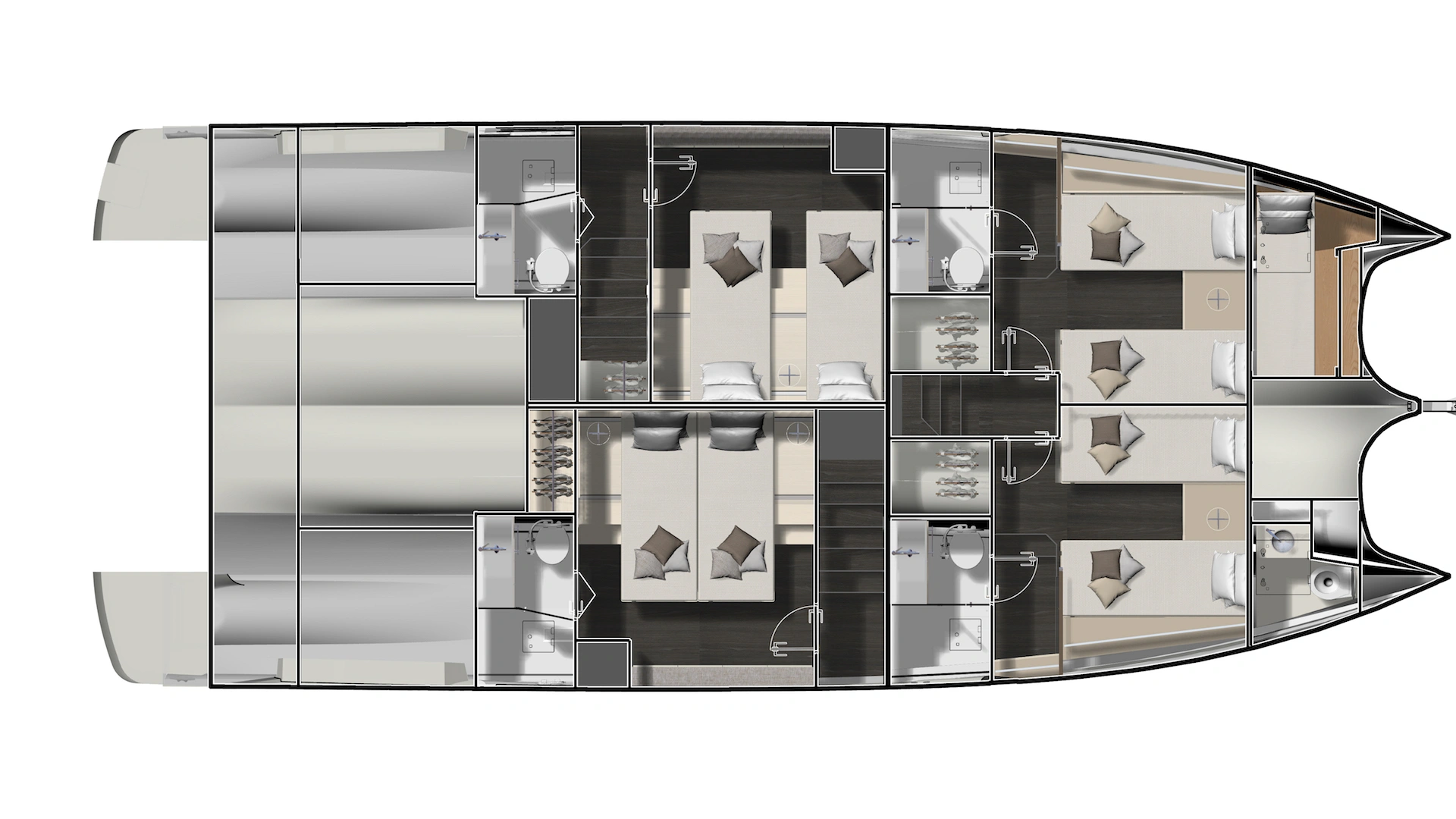 This multihull yacht reveals generous, brightly lit and refined living spaces, affording the ultimate in comfort. It promises life in harmony with the sea and at a gentle pace.