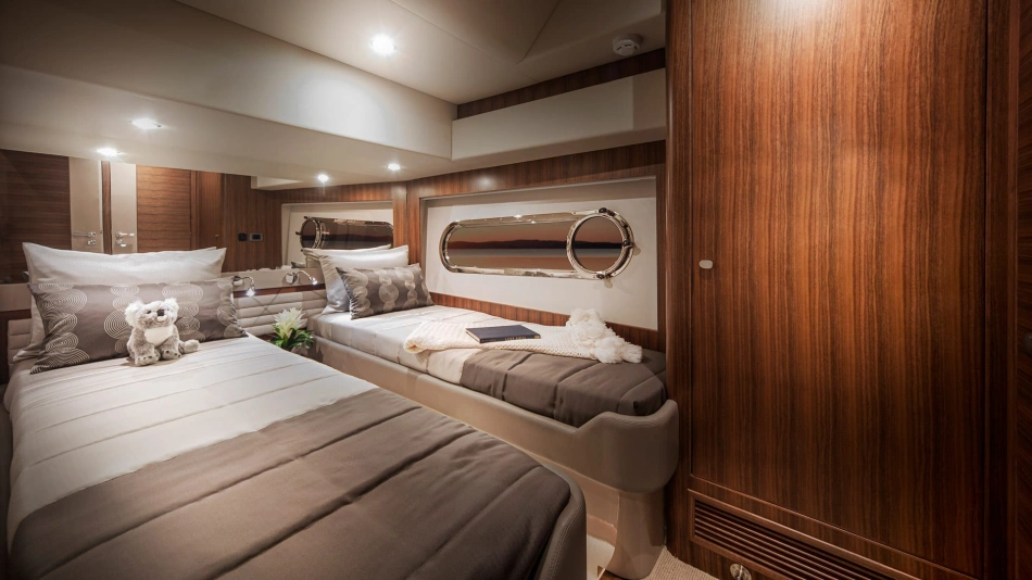 Discover the skipper’s helm forward. The lower helm and expansive helm in the Daybridge both feature state-of-the-art navigation aids, simple touchscreen operation and effortless joystick control. Volvo Penta Inboard Performance System (IPS) delivers exhilarating performance and impressive economy.