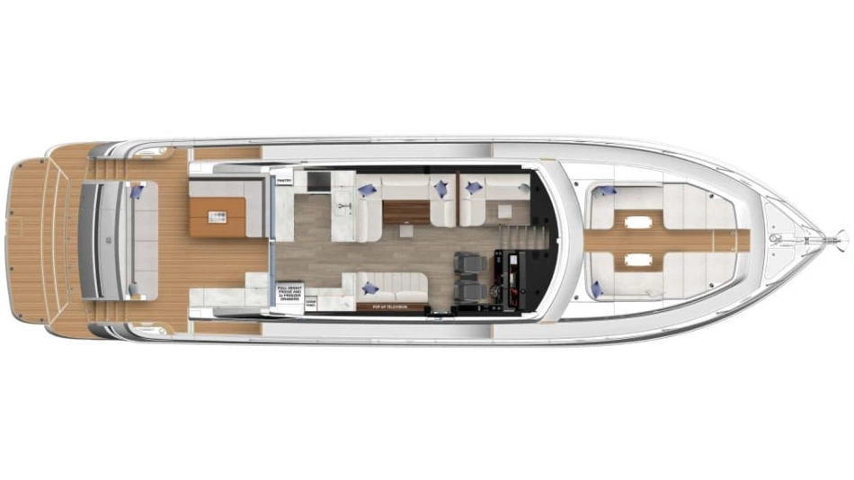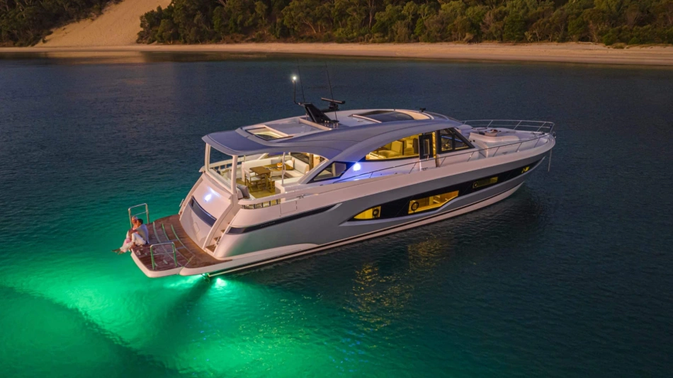 Riviera’s 6800 Sport Yacht has so many separate entertaining areas that family groups, friends and couples can all find their own space to enjoy the world around them. Enjoy the sunshine on the forward deck, or entertain on the all-weather aft deck with a sunroof to invite the sunshine or stars. Relax on one of three lounges in the saloon, also with the luxury of a sunroof.