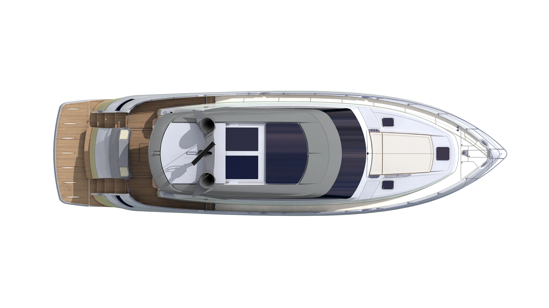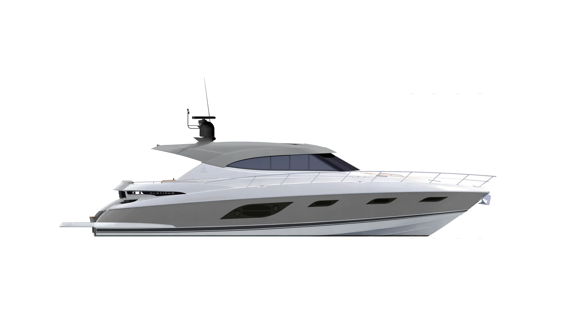 The black and silver command station inspires with luxurious new alcantara and leather Recaro helm chairs and state-of-the-art instrumentation. She’s powered by the advanced Volvo Penta 950 Inboard Performance System. In the palatial accommodation deck, you have a choice of three staterooms or four with three designer bathrooms, as well as a utility room or crew cabin.