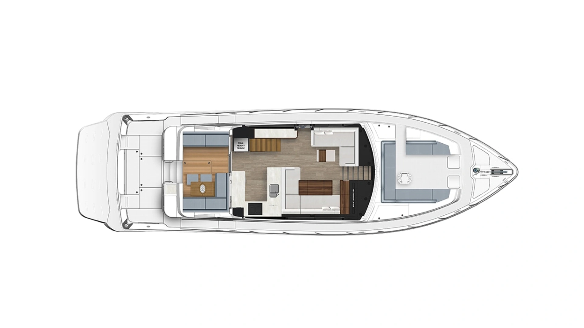 The new 58 offers all the SMY essentials including a wide and uncluttered all water sports cockpit, walk around side decks, foredeck lounge and entertaining zone, all weather alfresco deck entertaining and spacious, luxurious saloon with internal staircase to a fully-enclosed air-conditioned flybridge and state-of-the-art helm. The three stateroom, three bathroom accommodation deck features a luxurious full-beam master suite, and versatile utility room or crew cabin. Engineering excellence matches her sports performance with a very smooth, and efficient ride.