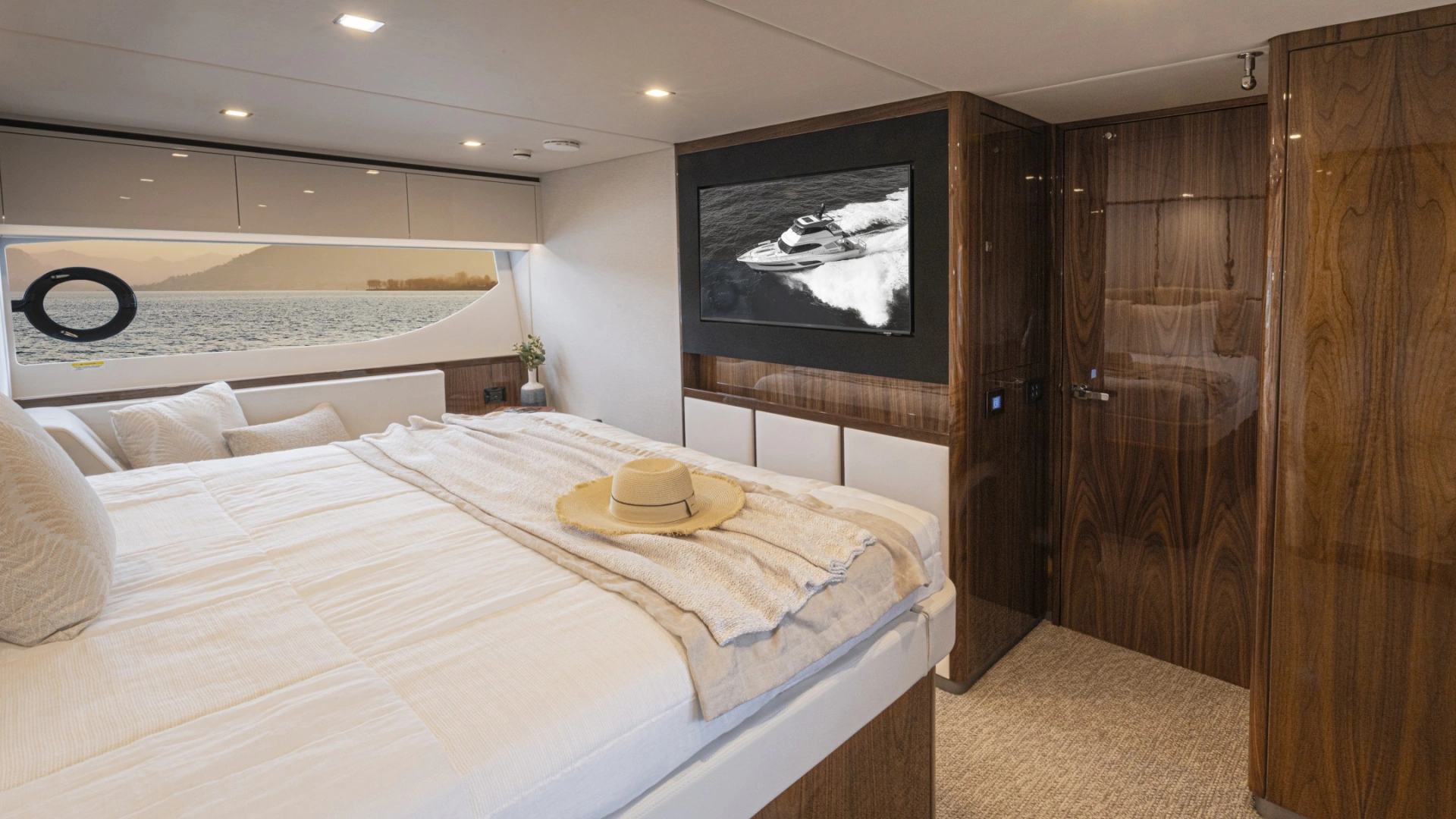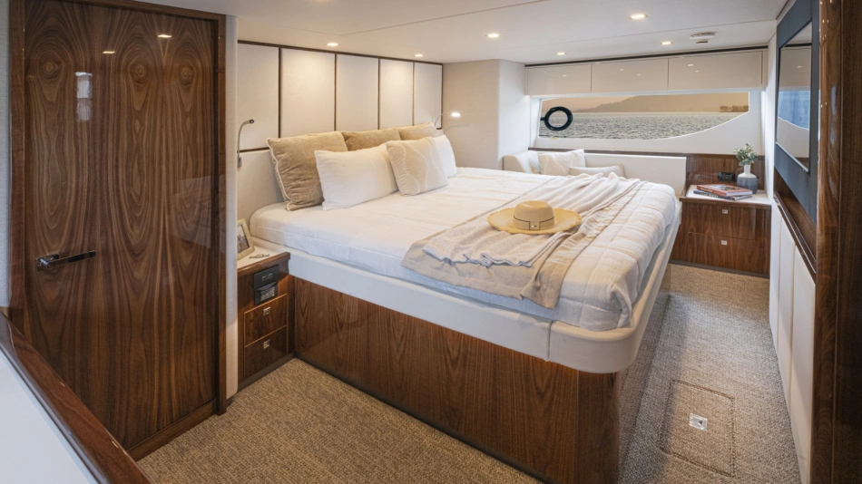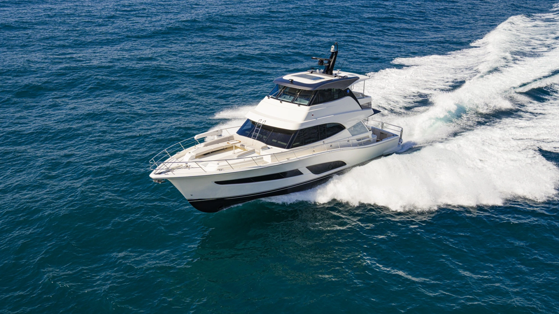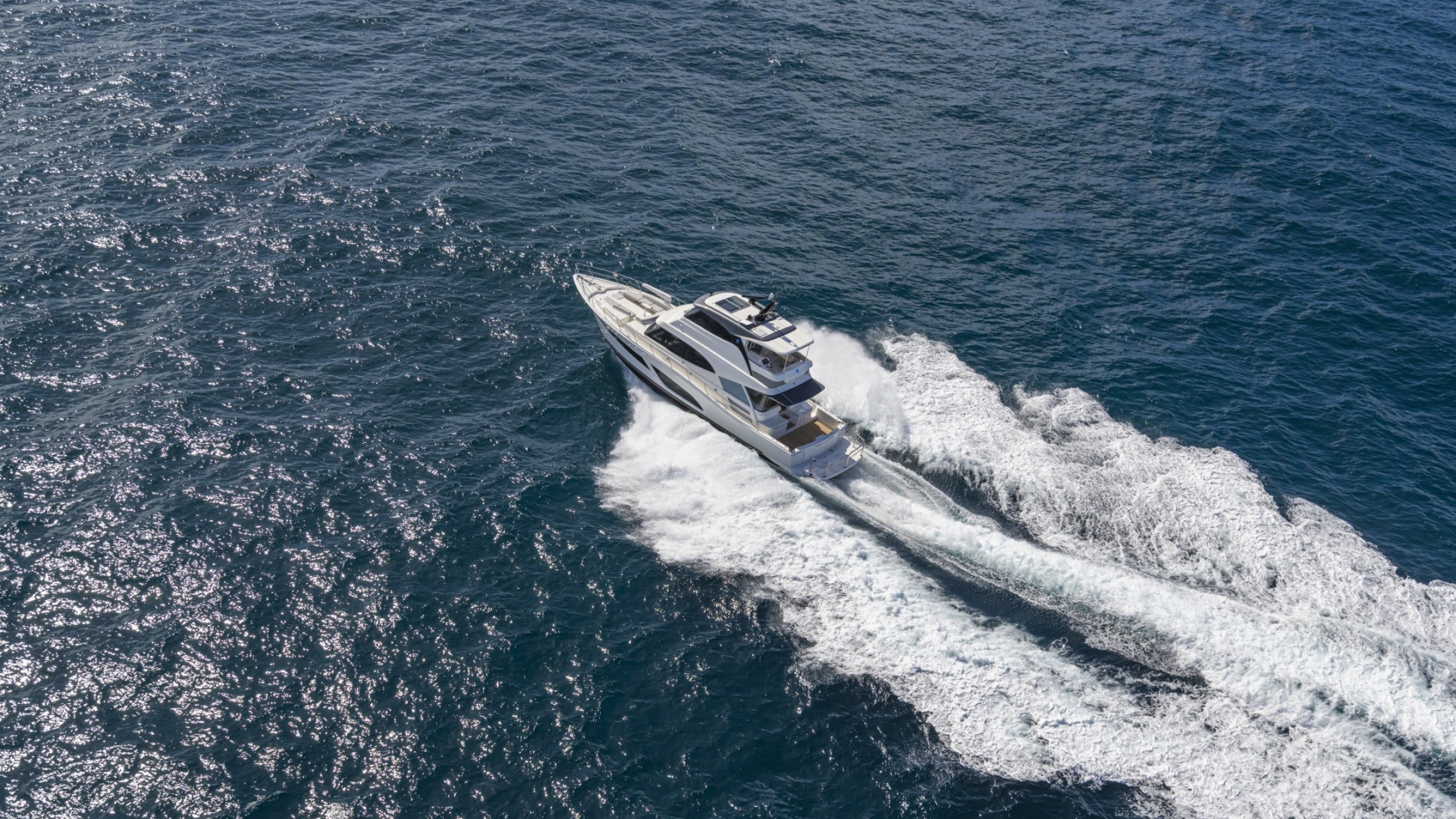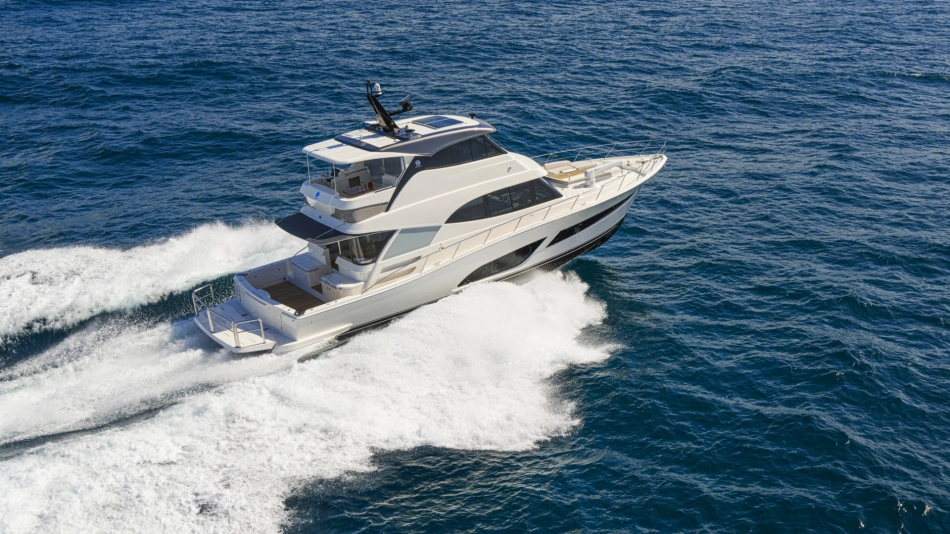 First launched in 2020, Riviera’s 64 Sports Motor Yacht set the benchmark for a 64-foot blue-water yacht that has it all; walk-around side decks, foredeck lounge and entertaining, all-weather alfresco deck, luxurious saloon with internal staircase to a fully enclosed air-conditioned flybridge and state-of-the-art helm. Magnificent accommodation included a choice of three or four staterooms, three bathrooms, an opulent full-beam master suite and versatile utility room or crew cabin. Engineering excellence matched her sports performance to ensure a smooth, quiet and efficient ride across varying speeds and a range of offshore conditions. And of course, a wide, open cockpit to allow enjoyment of all manner of water sports.